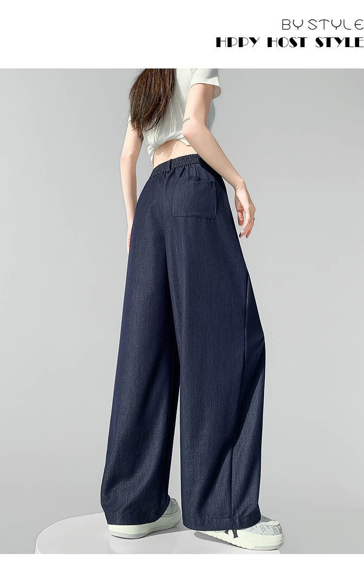 실사 디자인 센스 페이크 레이어드 주간 실크 데님 와이드 레깅스 바지 2026 봄 여름 하이웨이스트 슬림해 보이는 캐주얼 바닥 청소 바지