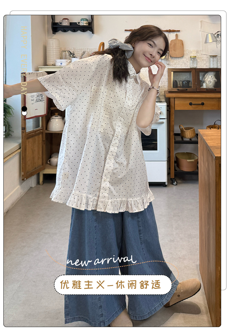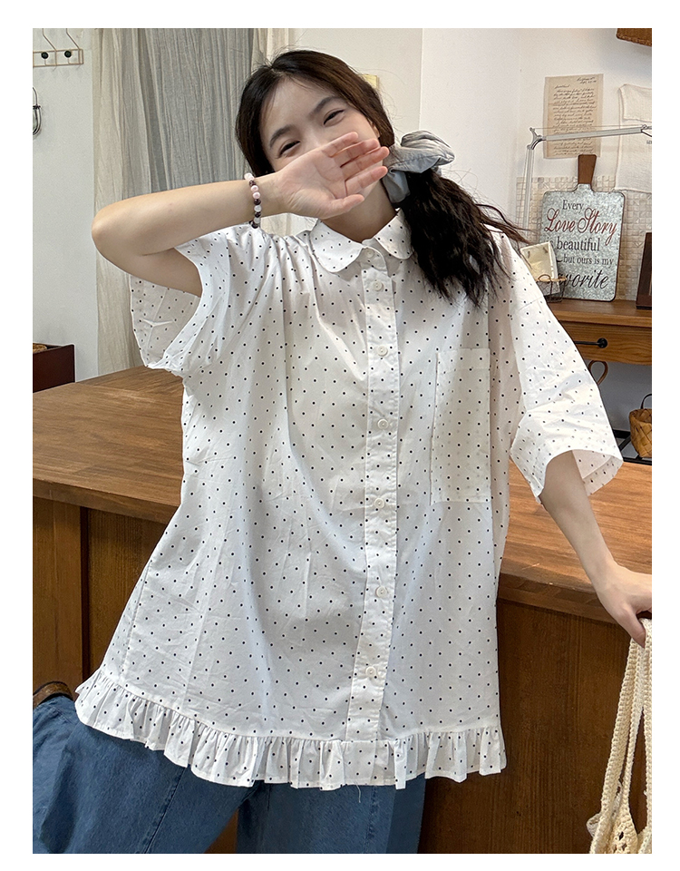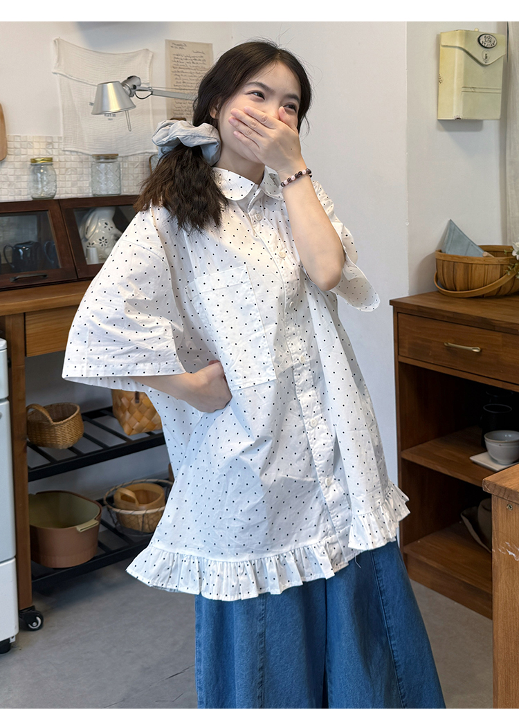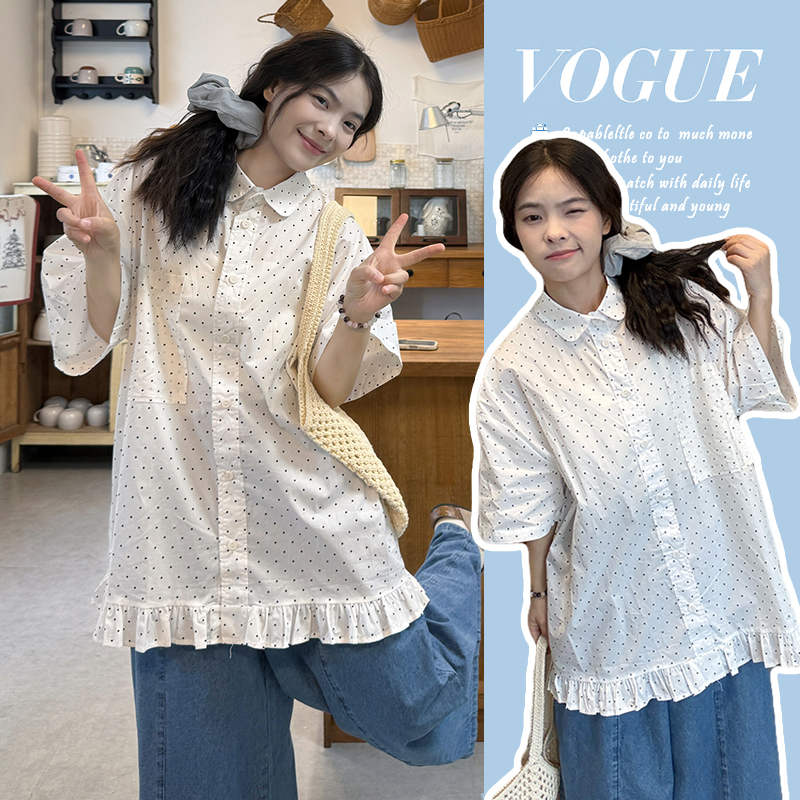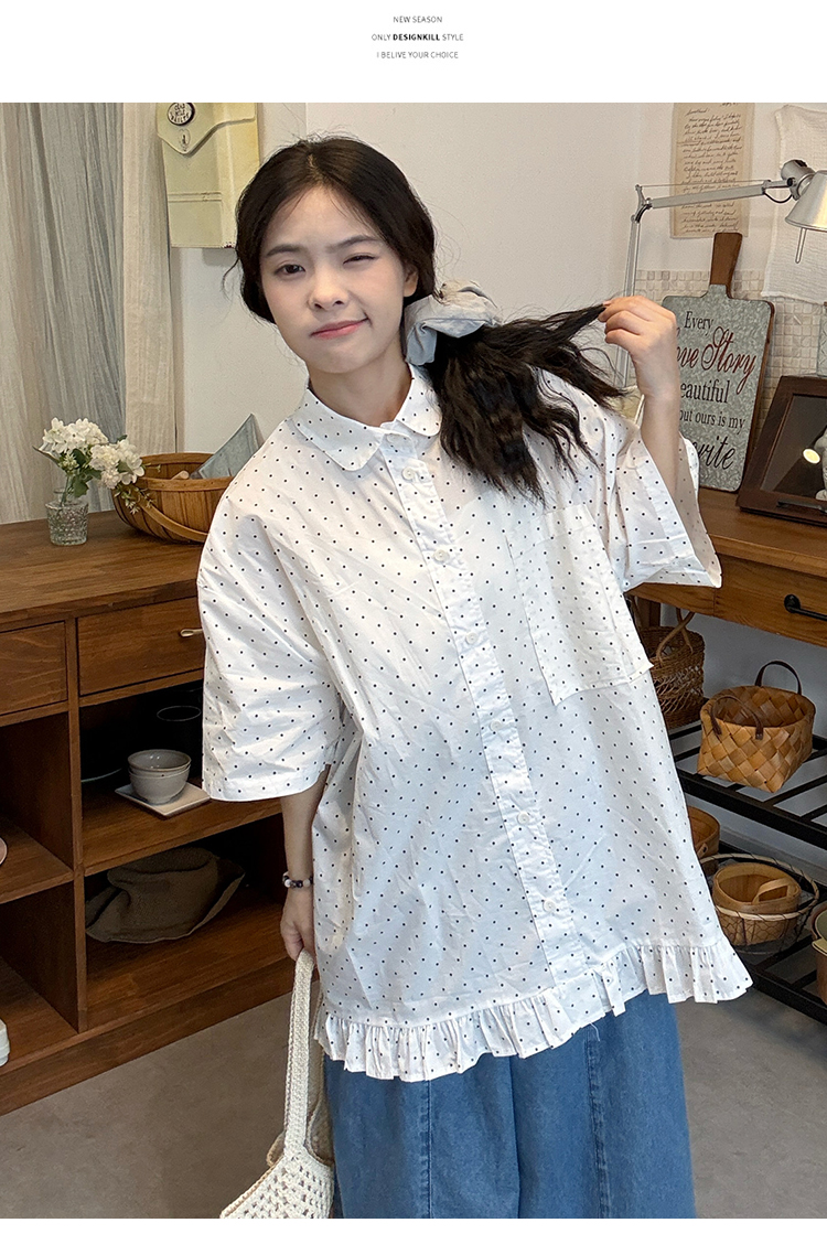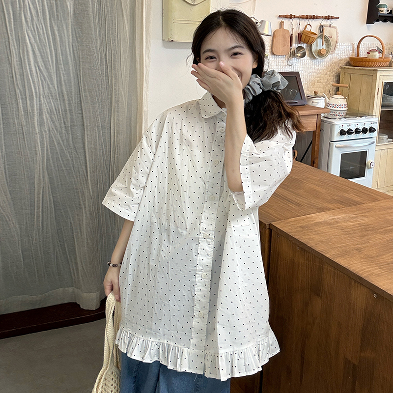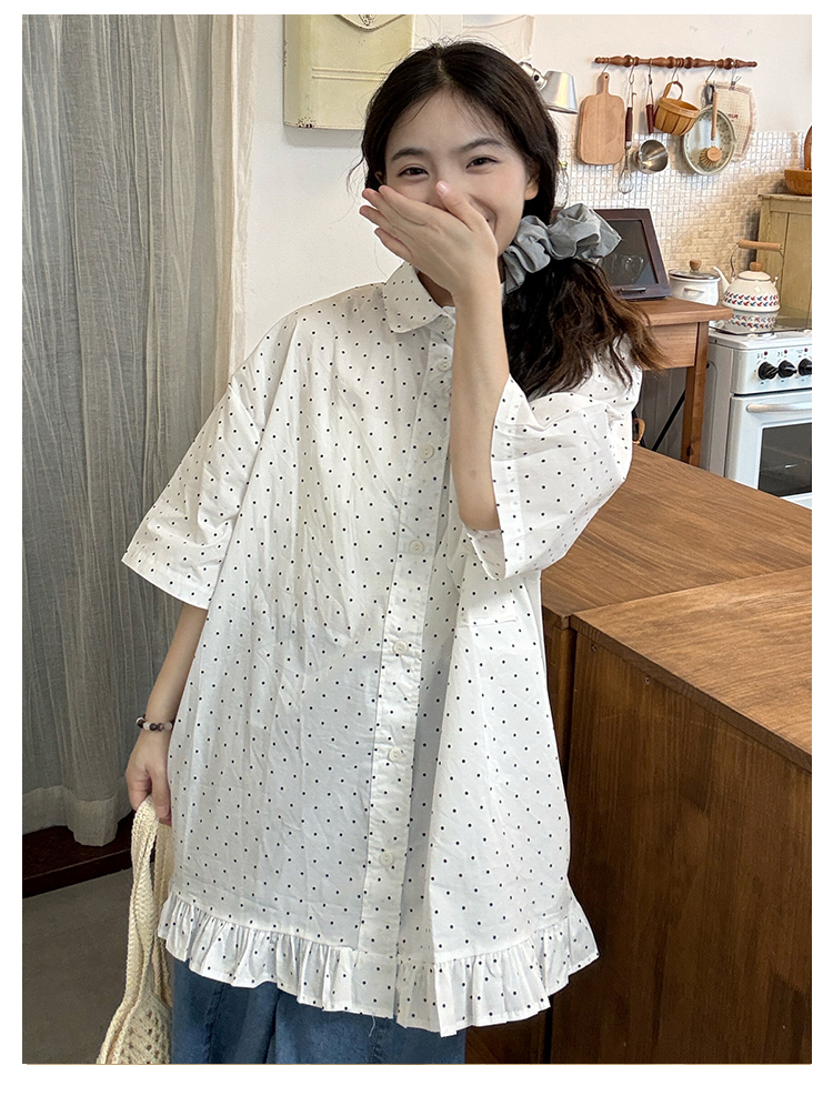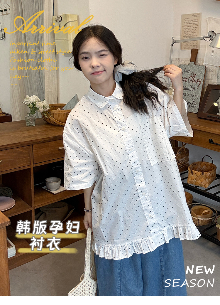 실사 2026 새로운 임산부 롱 코트 루즈핏 도트 셔츠