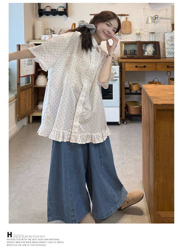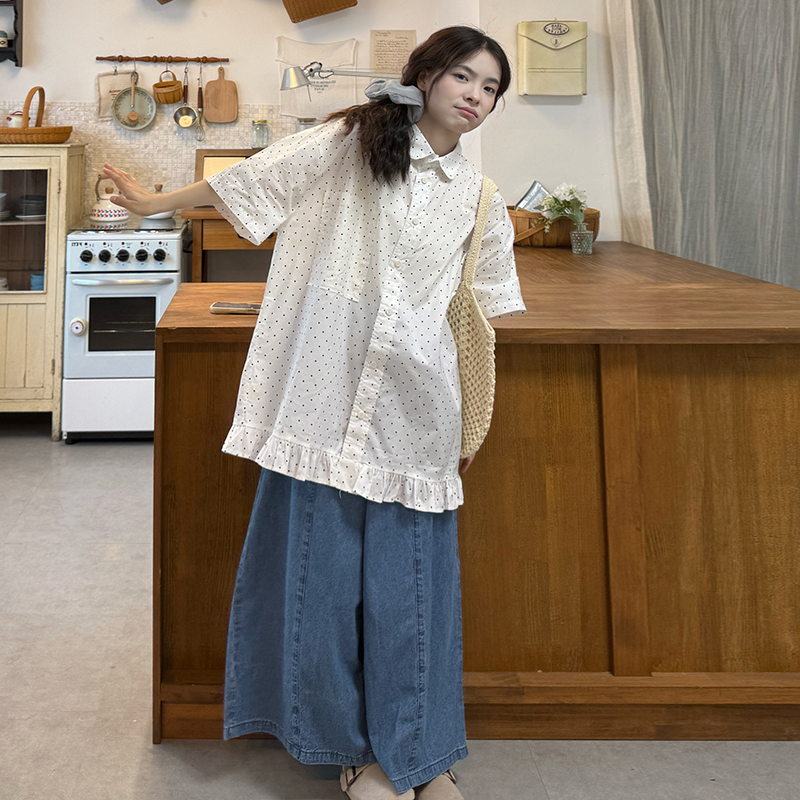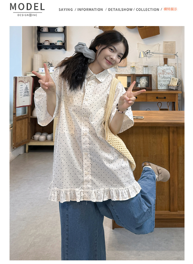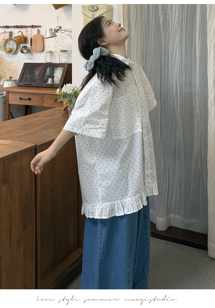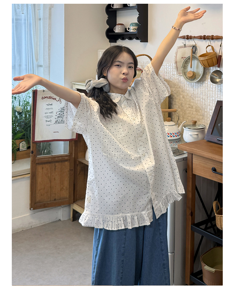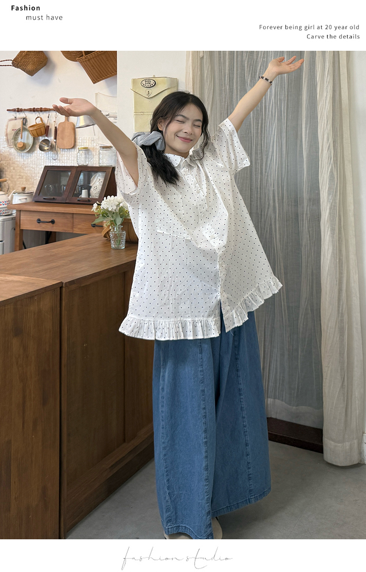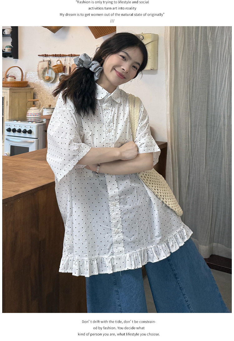 실사 2026 새로운 임산부 롱 코트 루즈핏 도트 셔츠