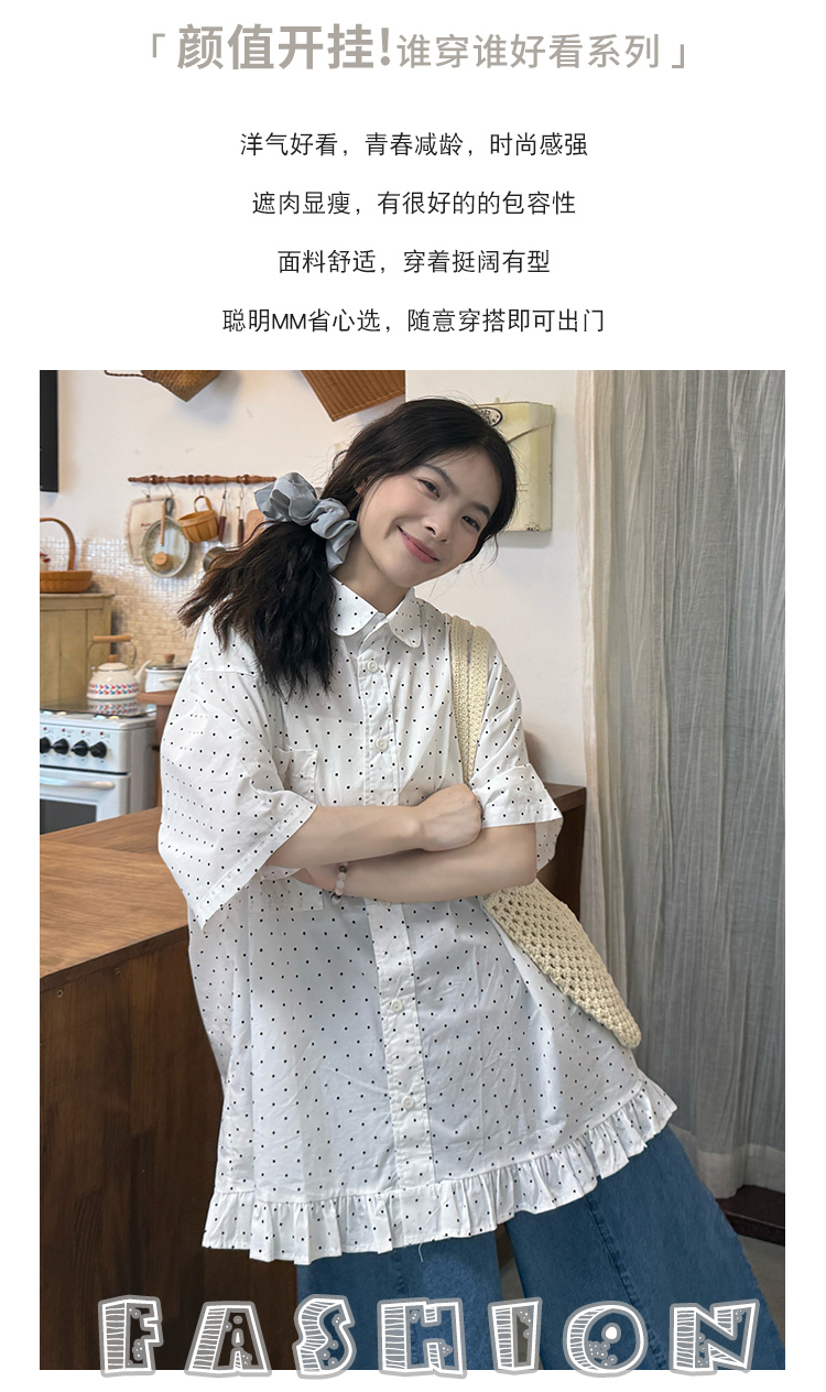 여름 프릴 도트 무늬 반신 스커트 빅 사이즈 여성 의류 도루 센스 하이웨이스트 슬림해 보이는 불규칙 쉬폰 한 마디 중 치마