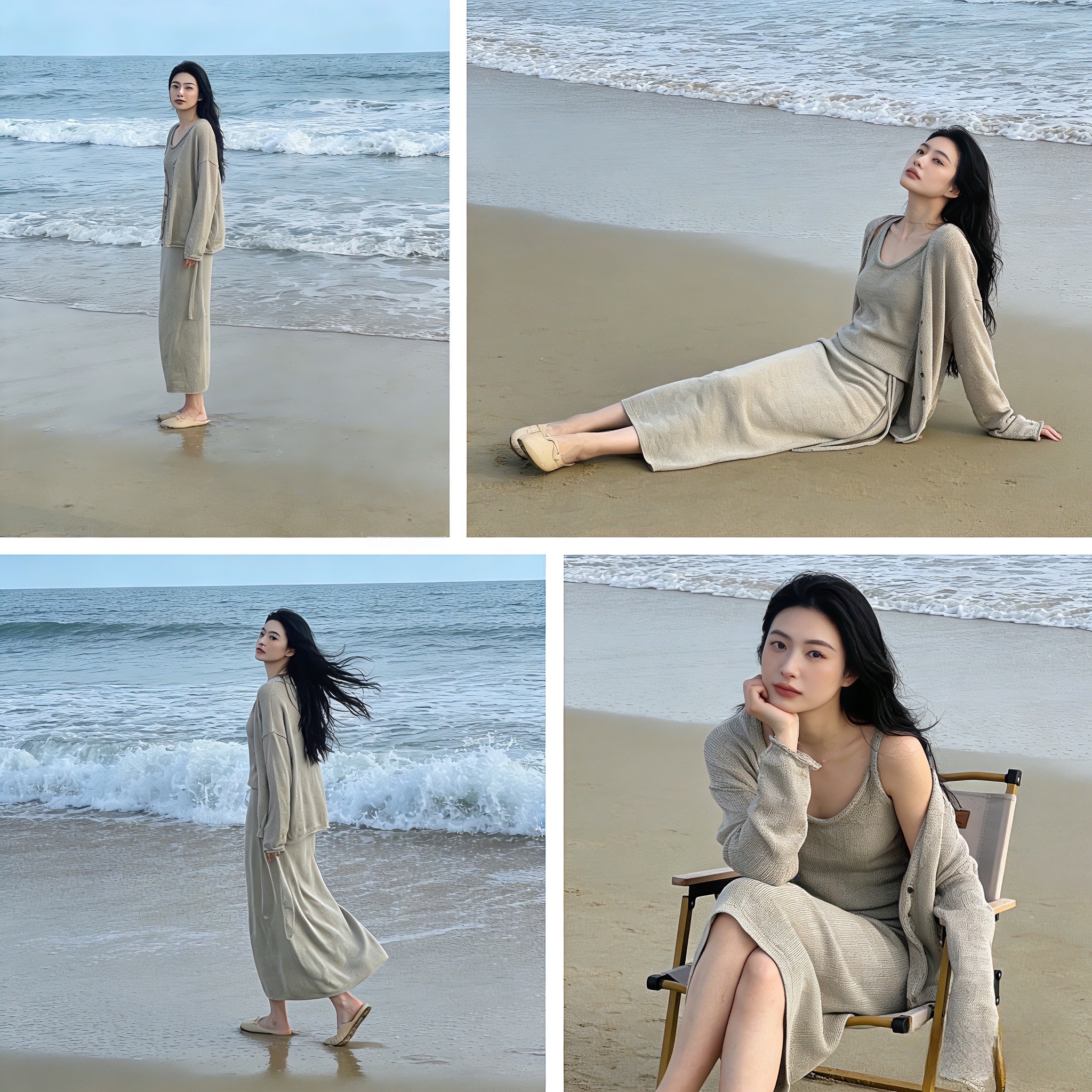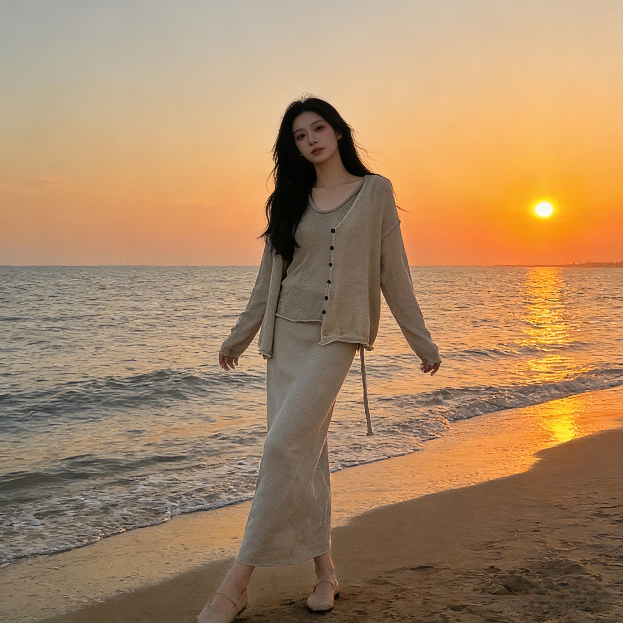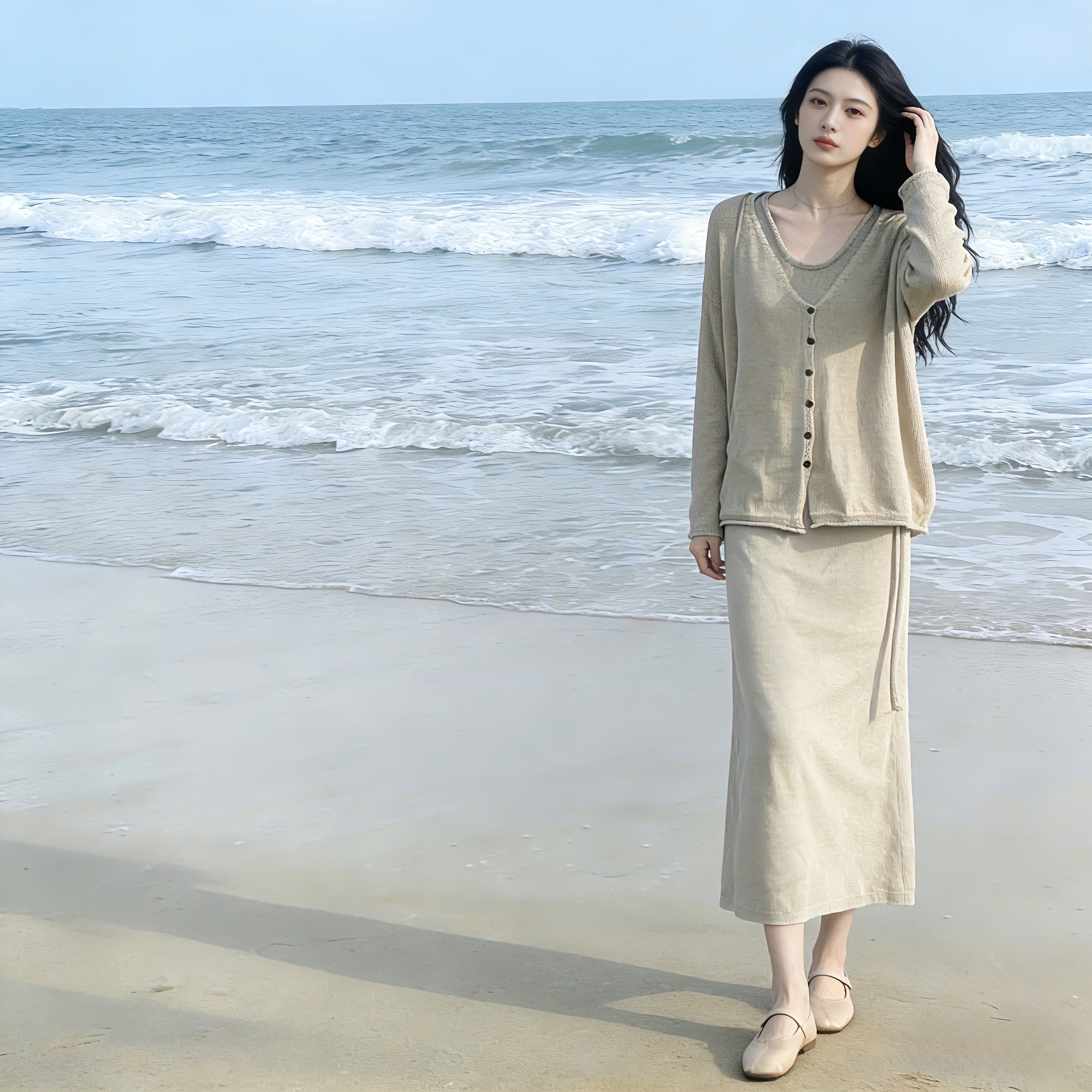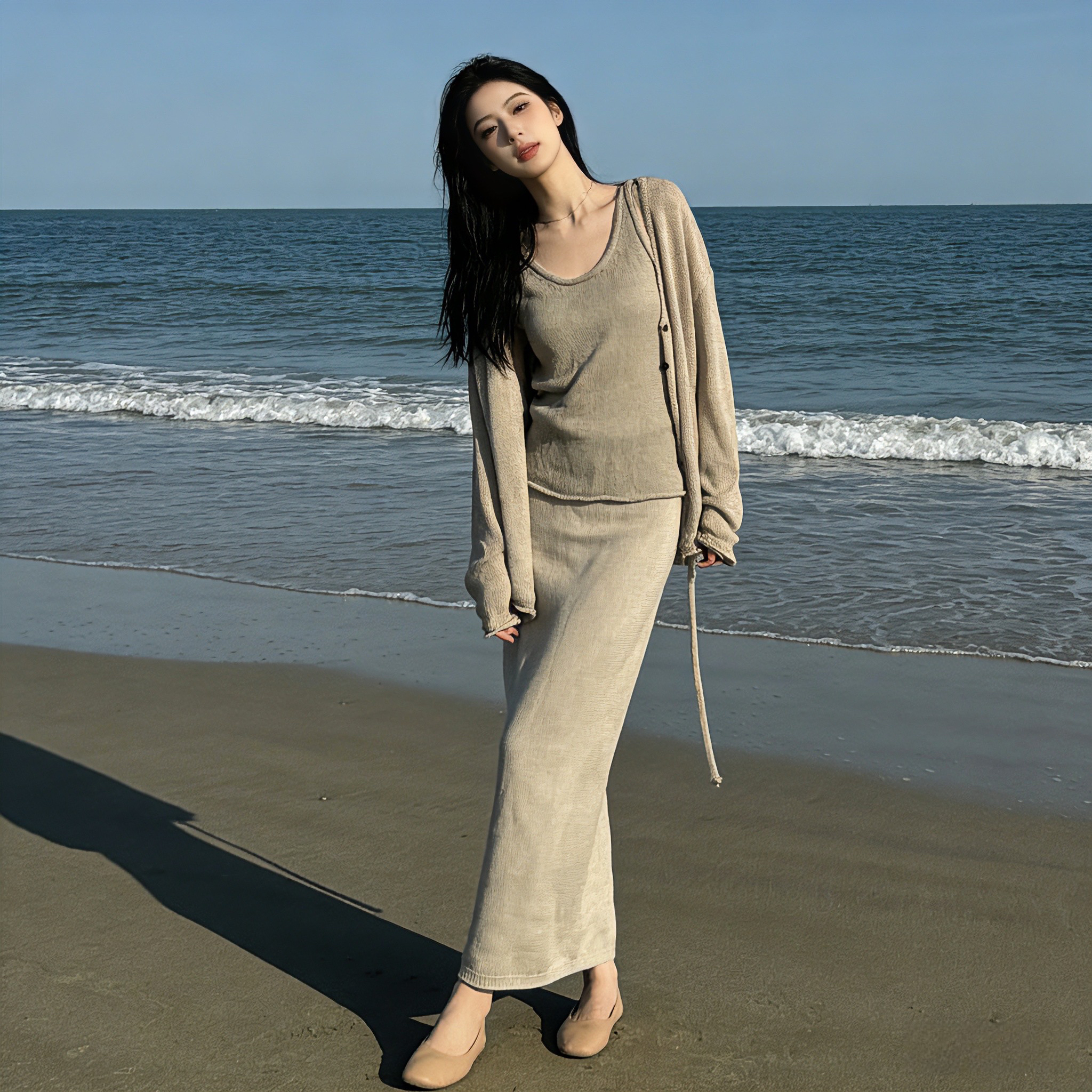 실사 정가 2026 새로운 니트 세트 3종 세트 느긋한 품격 와 성별 캐주얼 여성 의류 디자인 센스