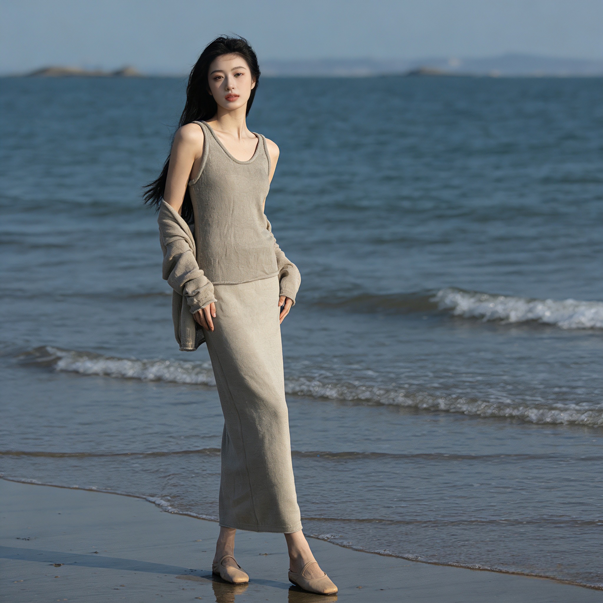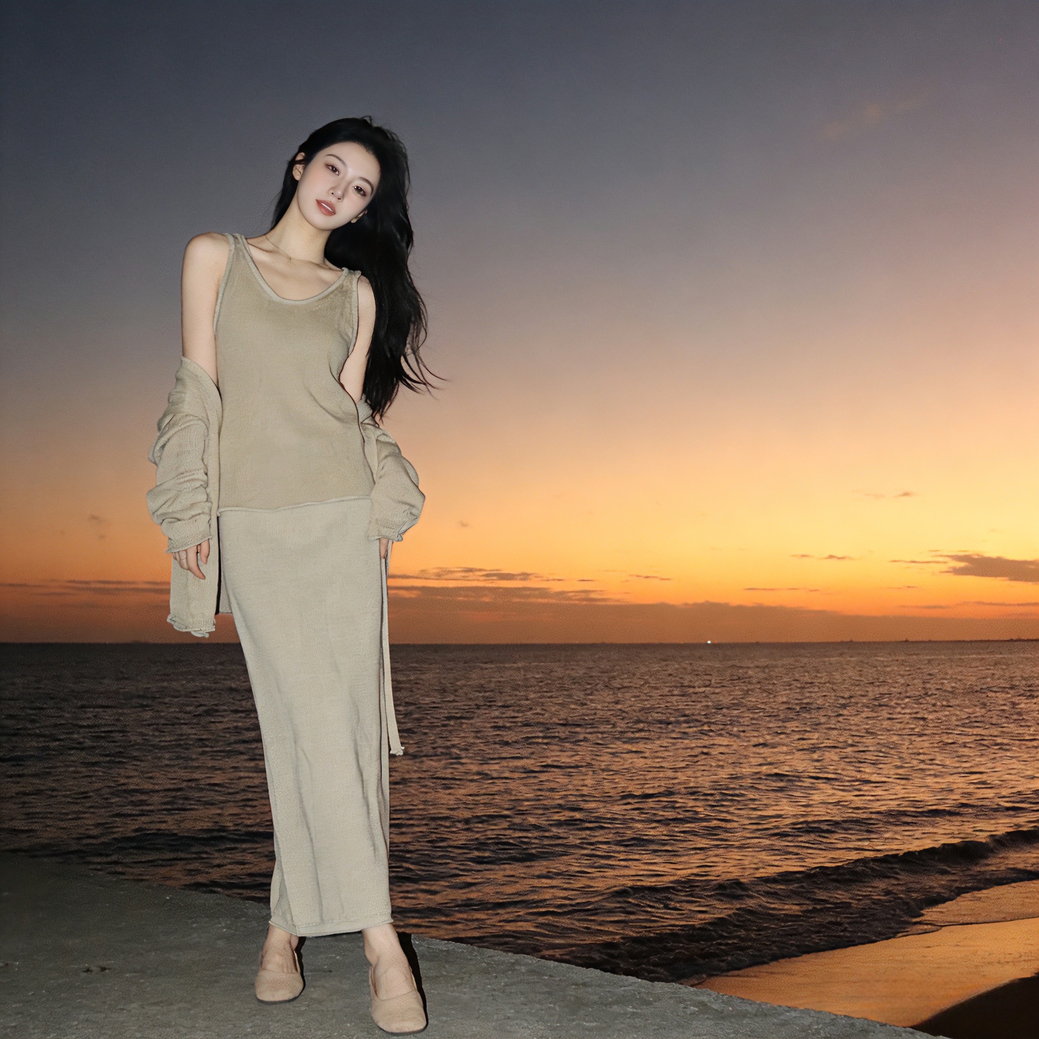 아마 민소매 베스트 반신 치마 세트 여성 2026 슈퍼 화재 열린 봄 착용 가져 가라. 자이언트 잘 생긴 캐주얼 고유 한 디자인 센스