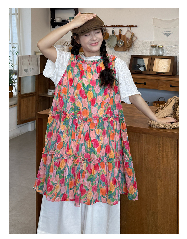 실사 2026 여름 섹션 임산부 민소매 꽃 조끼 스커트 짧은 티셔츠 와이드 레그 팬츠 3종 세트