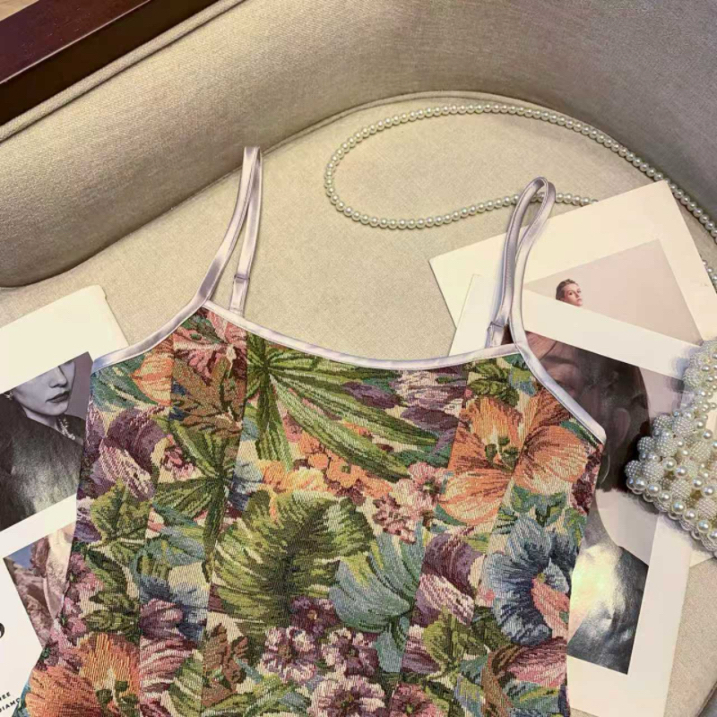 2026 여름 새로운 프랑스식 레트로 꽃무늬 유화 캐미솔 여성 인사이드 가져 가라. 외출용 태국 아름다운 맨위