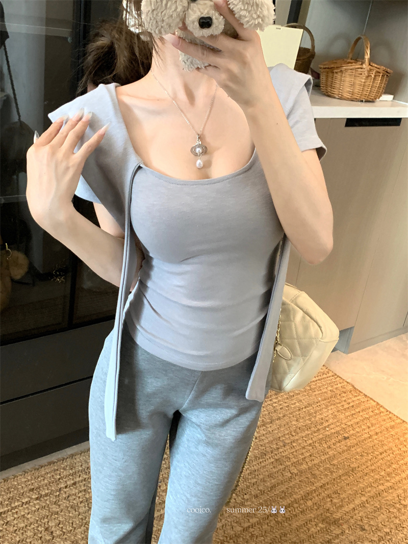 실사 정가 조끼 여성 여름 외출용 2026 새로운 니트 반하이넥 디자인 센스 몸매 가꾸기 민소매 맨위 여성