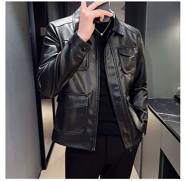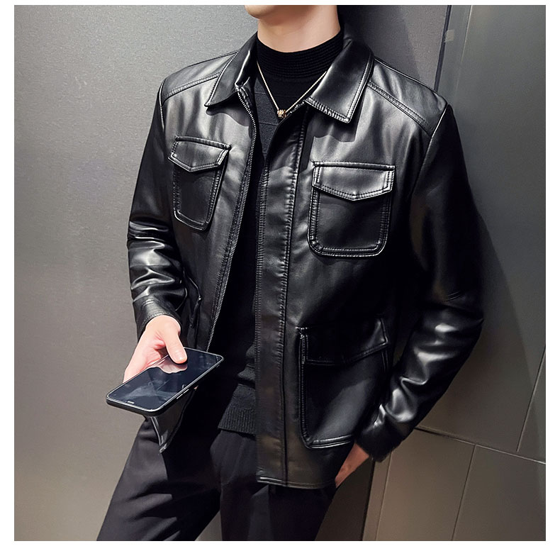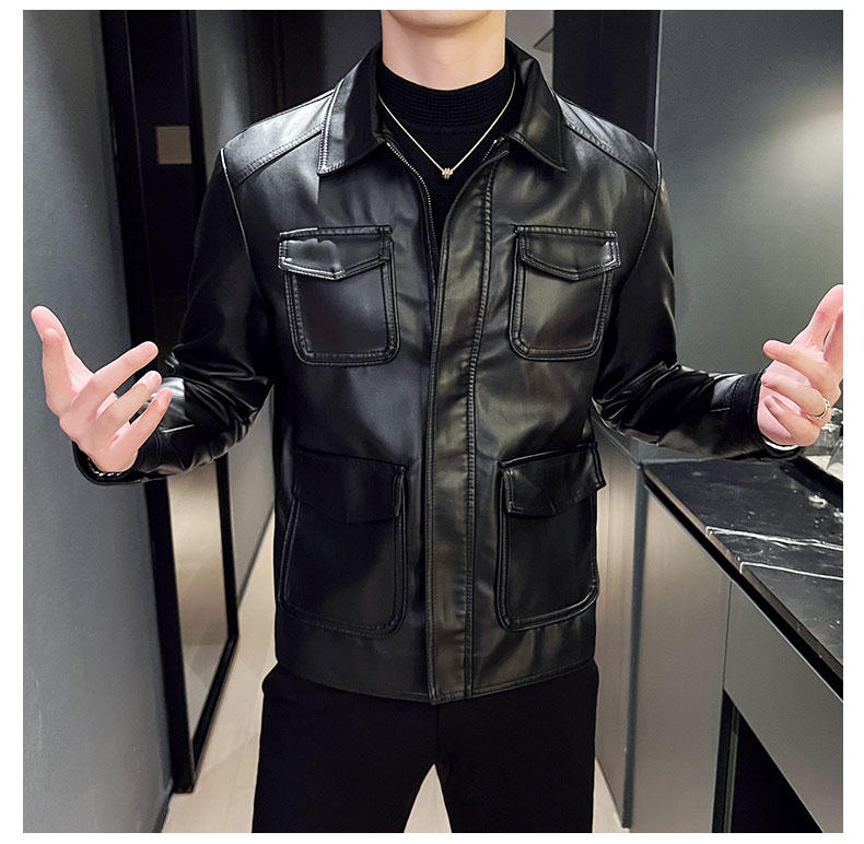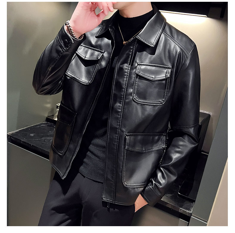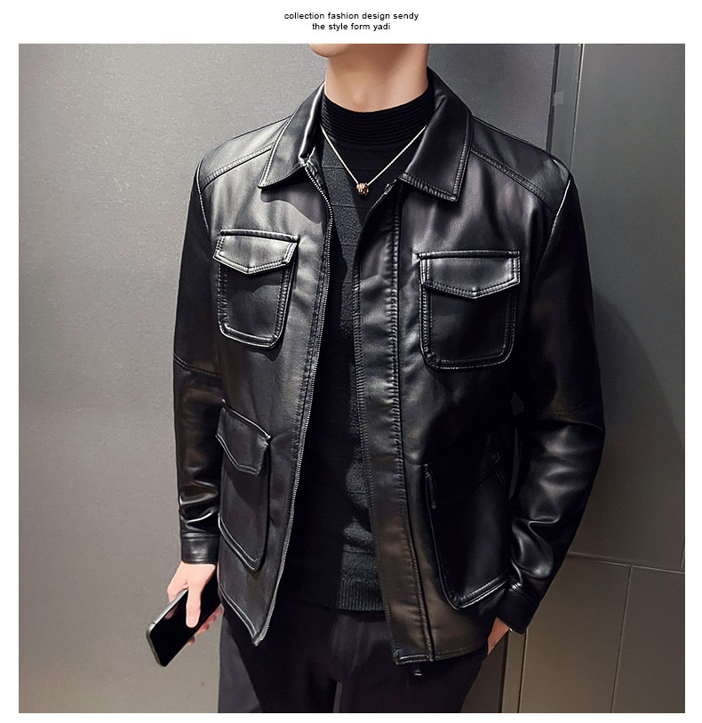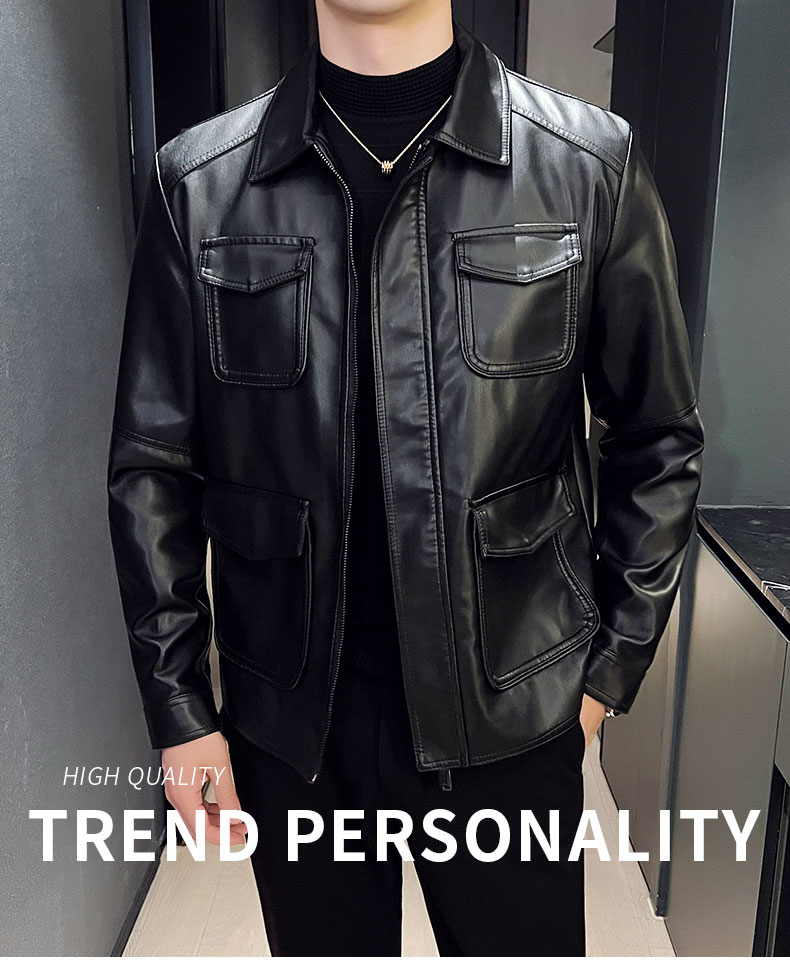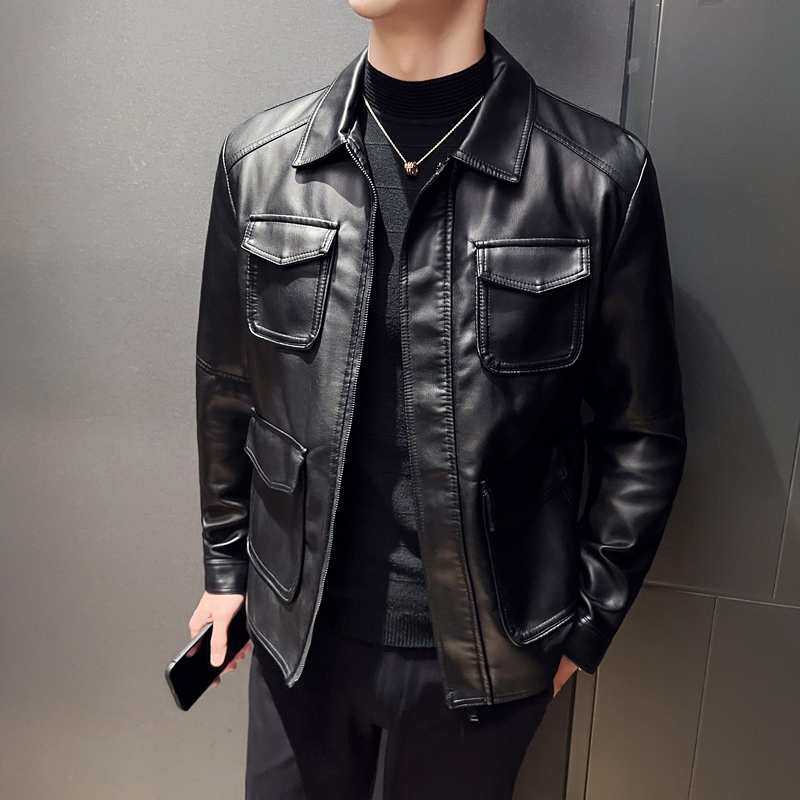 국경 간 가죽 재킷 남성 재킷 가을 겨울 조수 브랜드 스탠드 칼라 오토바이 서비스 방풍 잘 생긴 몸매 가꾸기 악당 잘 생긴 PU 가죽 남자 재킷