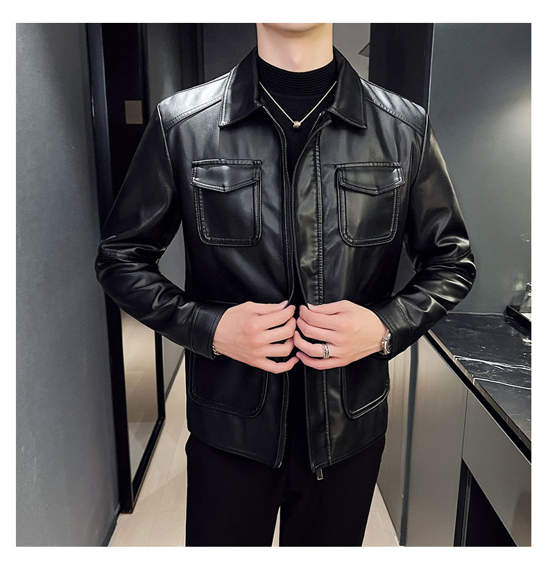 국경 간 폭발 남성 오토바이 pu 가죽 재킷 봄 가을 새로운 얇은 코트 단색 스탠드 칼라 몸매 가꾸기 잘 생긴 가죽 자켓