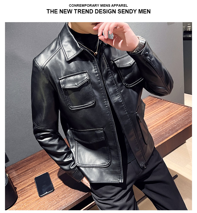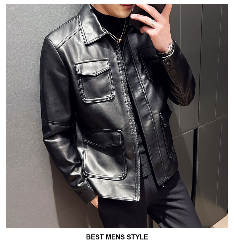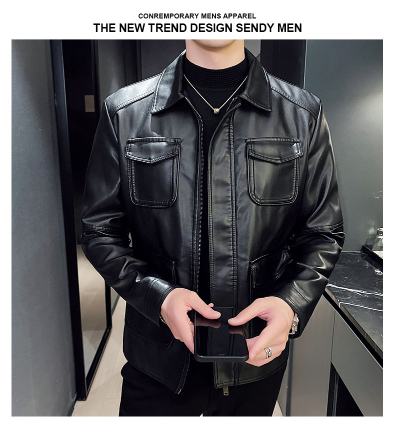 국경 간 폭발 새로운 유럽 코드 캐주얼 남성 가죽 재킷 패션 오토바이 빅 사이즈 남성 의류 가죽 재킷 미니멀리즘 스타일 맨위