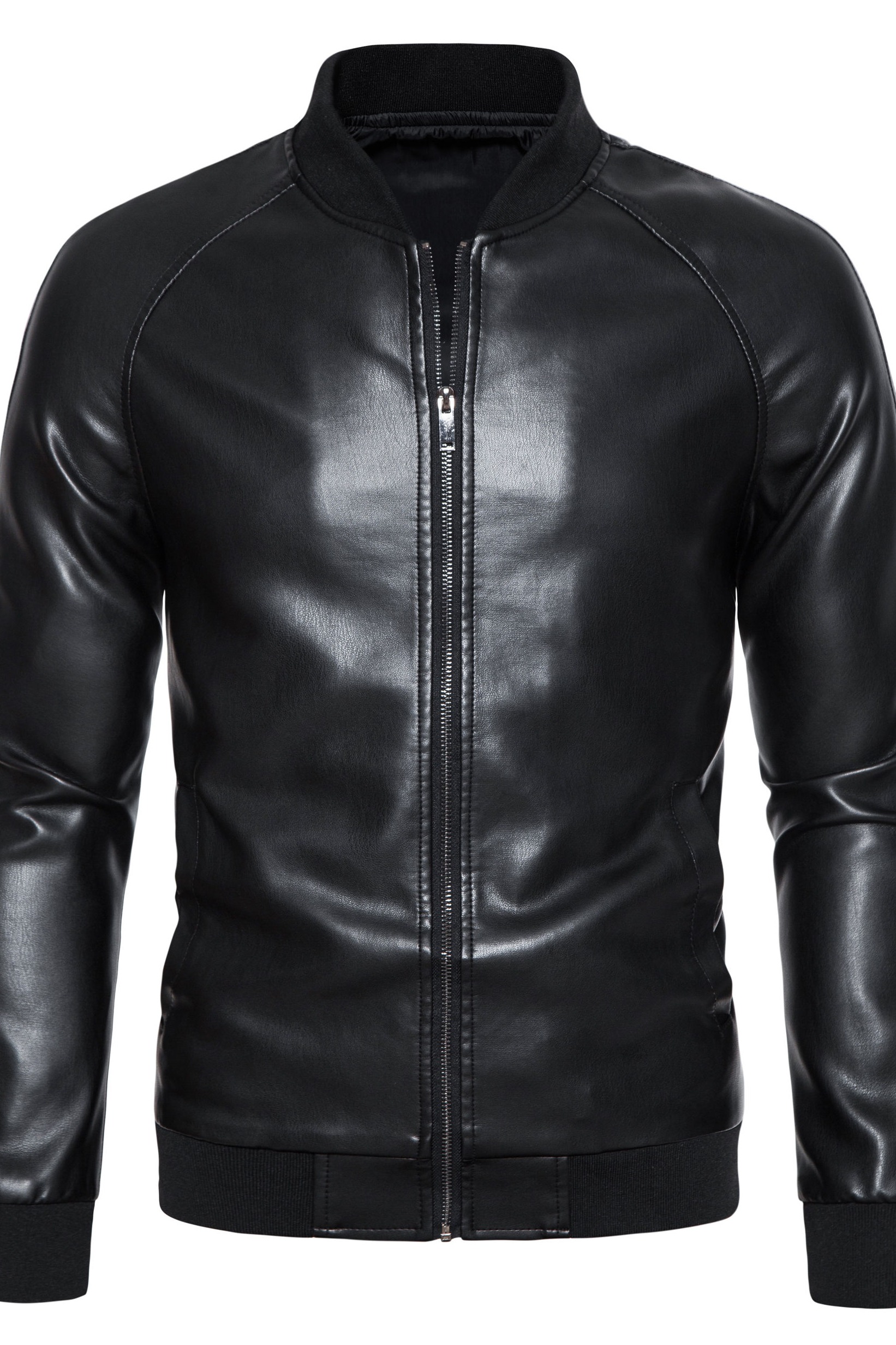 국경 간 폭발 남성 오토바이 pu 가죽 재킷 봄 가을 새로운 얇은 코트 단색 스탠드 칼라 몸매 가꾸기 잘 생긴 가죽 자켓