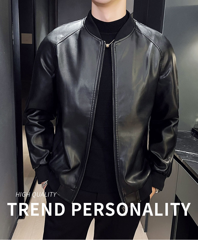 국경 간 봄과 가을 옷 가죽 재킷 남자 새로운 한국 스타일 트렌드 패션 스탠드 칼라 몸매 가꾸기 pu 가죽 자켓 잘 생긴 청년 재킷