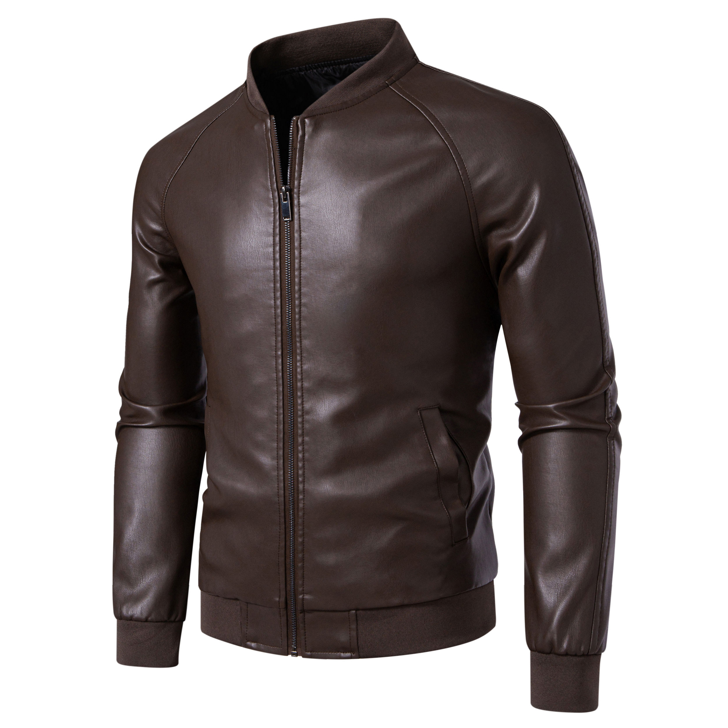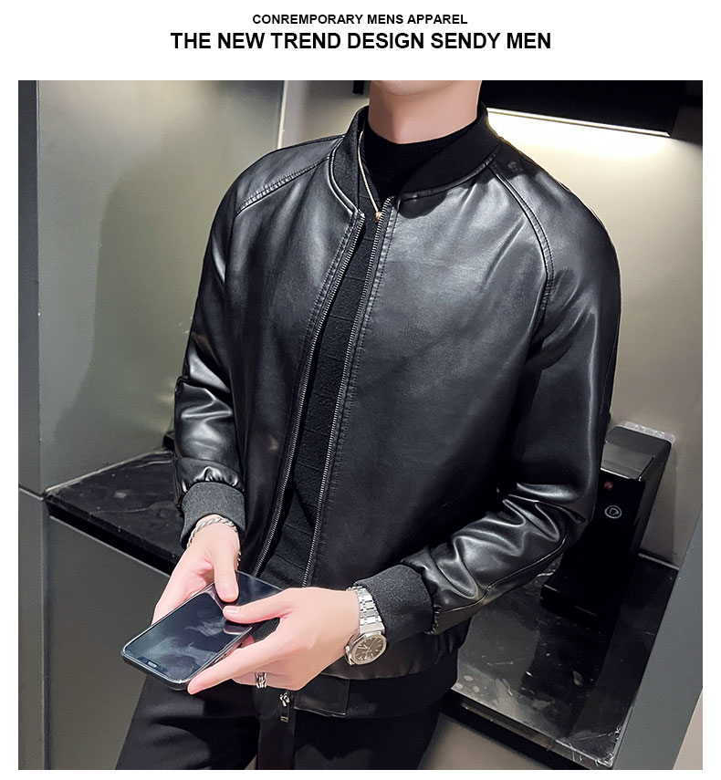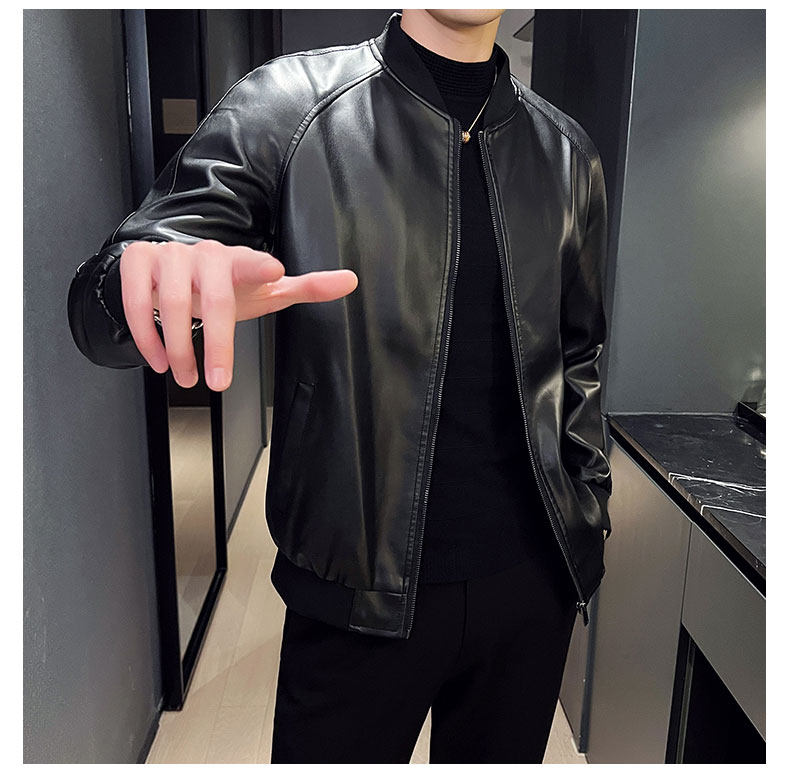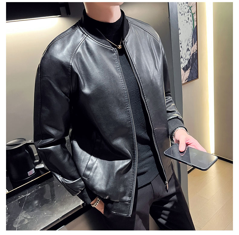 국경 간 봄 가을 오토바이 재킷 청소년 남성 스탠드 칼라 pu 재킷 캐주얼 스탠드 칼라 가죽 재킷 방풍 보온 재킷