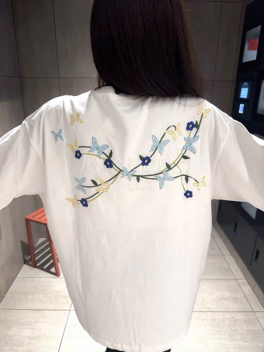 정가 전후 자수 순면 220 그램 빗질하다 닫기 반팔 티셔츠 여성