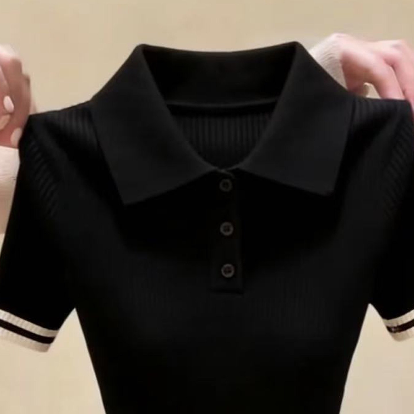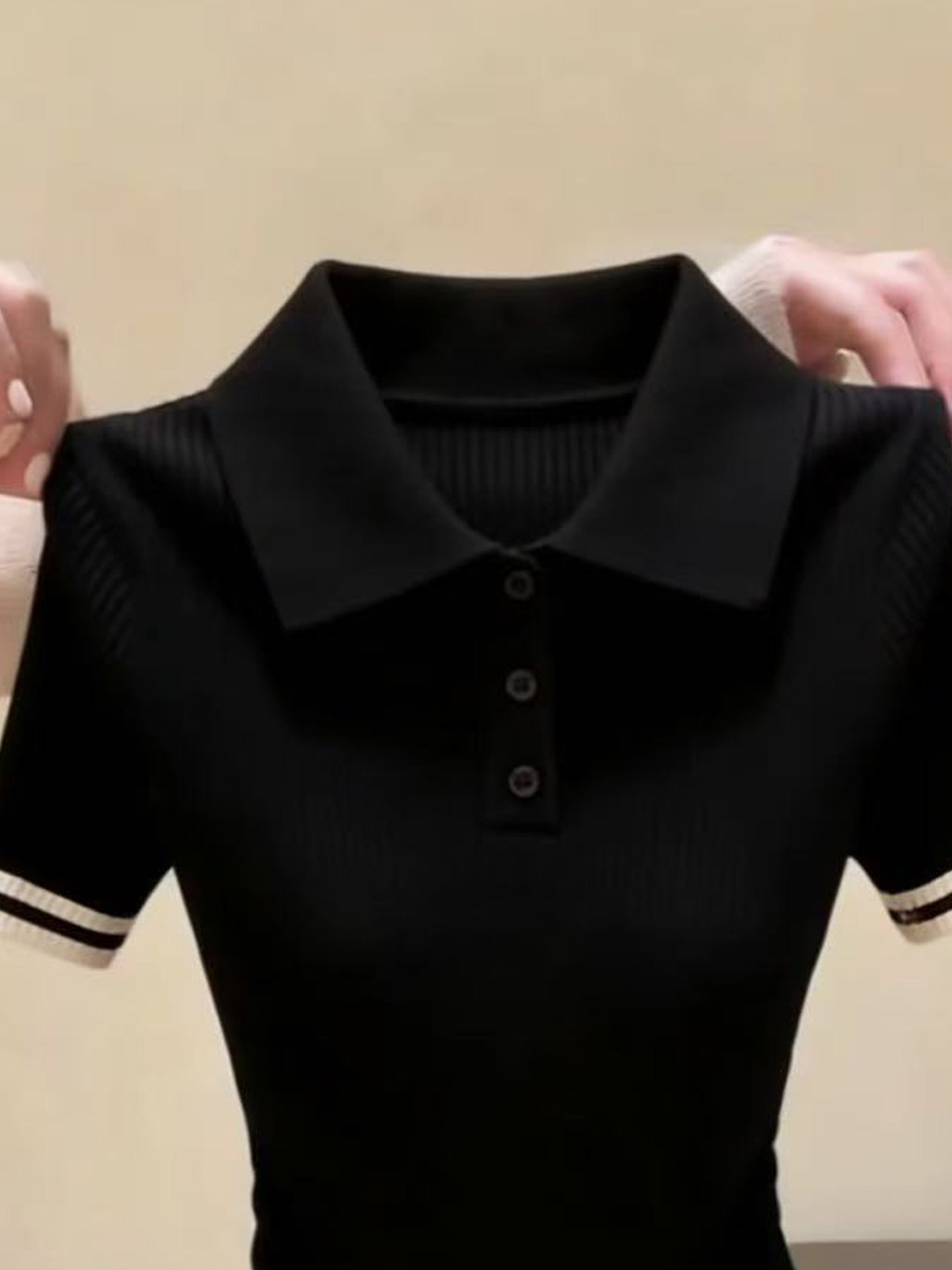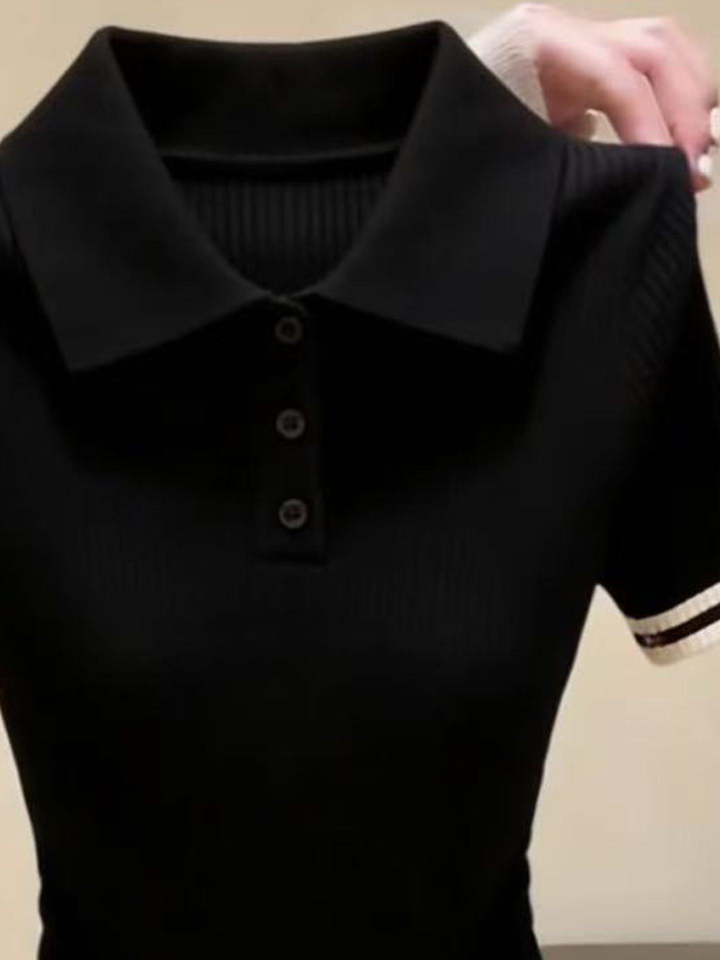 톰 글 래 원인 블루 배색 하프 지퍼 반팔 니트 스웨터 여성 여름 출퇴근 몸매 가꾸기 슬림해 보이는 쇼트 스타일 얼음 실크 맨위