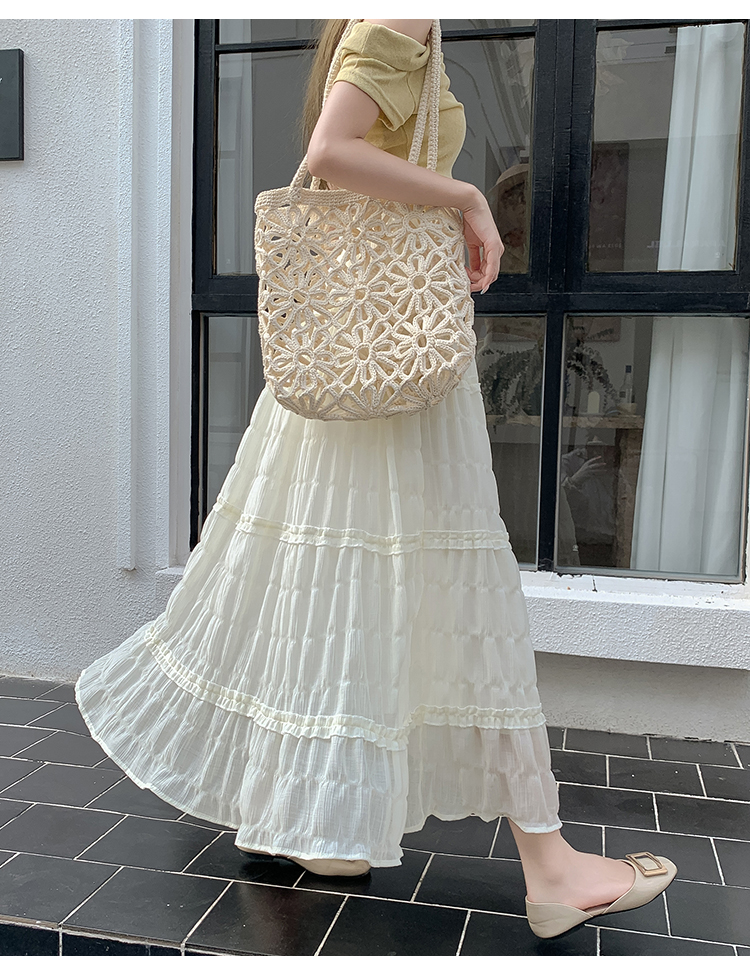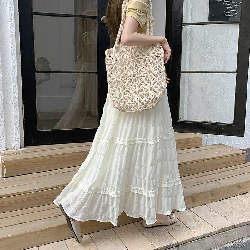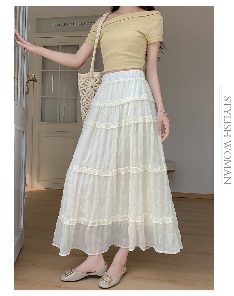 2026 여름 새로운 거즈 스커트 화이트 망사 반신 스커트 여성 도루 가을 센스 한 마디 하이웨이스트 롱 스커트 큰 진자 퍼프 스커트