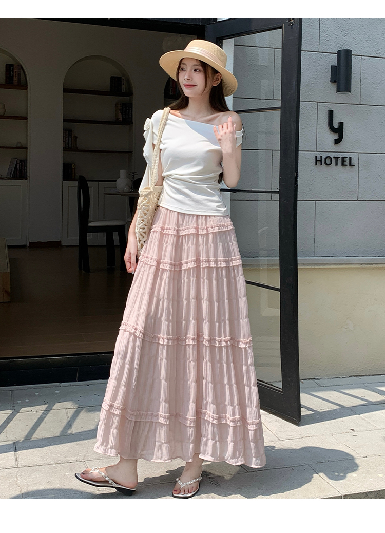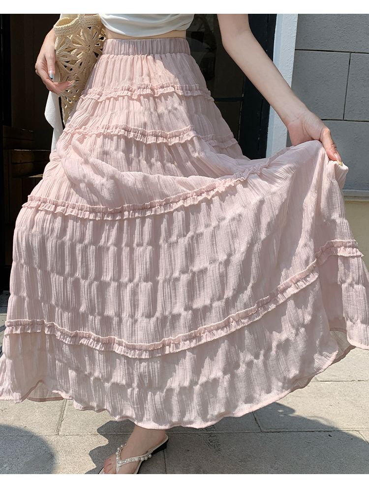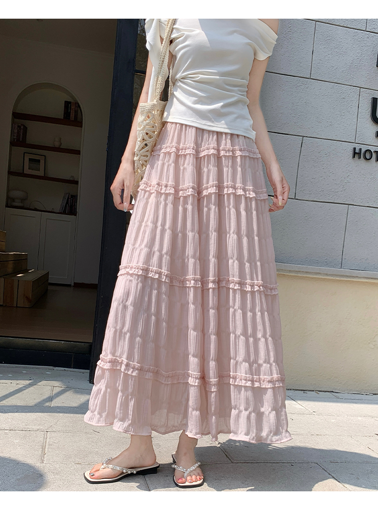 2026 새로운 한 마디 대 치마 부드러운 바람 슈퍼 요정 중간 길이 거즈 스커트 패션 슬림해 보이는 반신 스커트 롱 스커트 여성