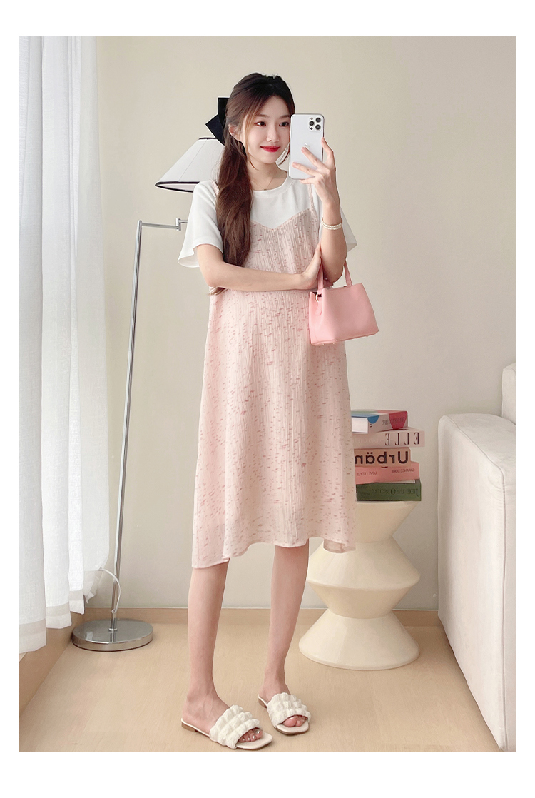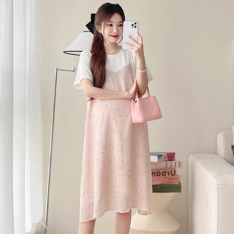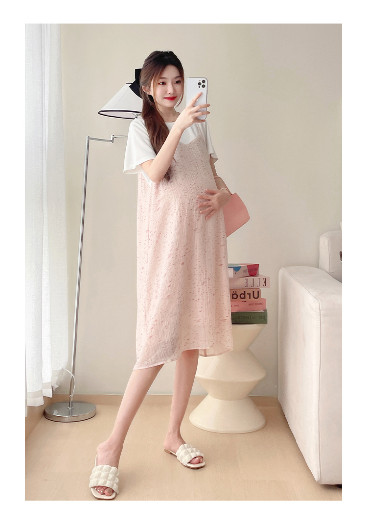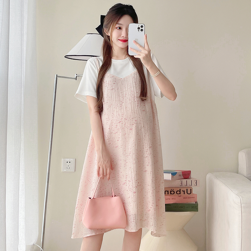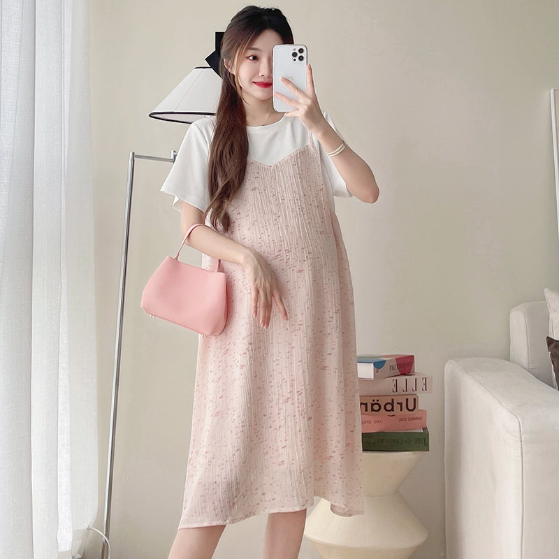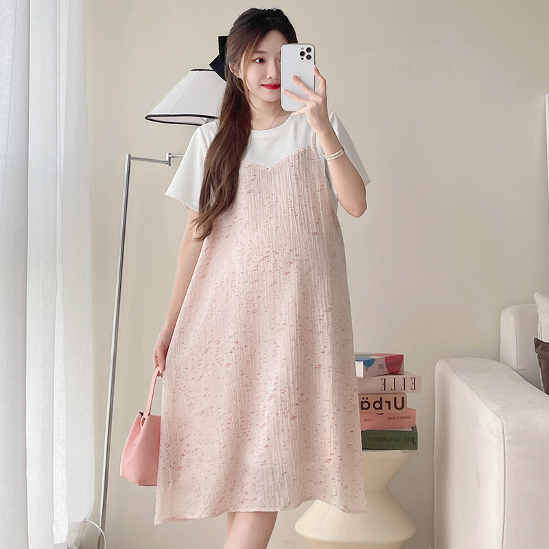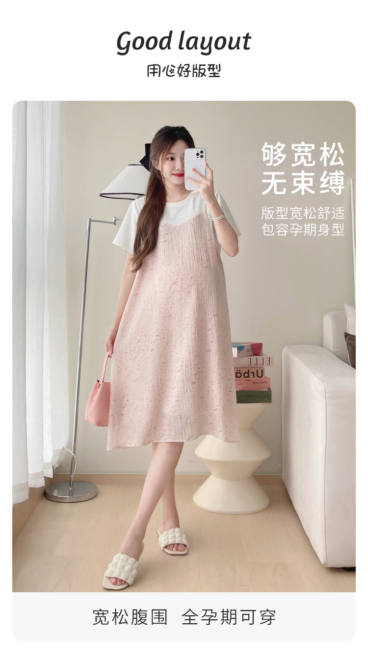 실사 임산부 여름 신제품 다용도 페이크 레이어드 패치워크 슬림해 보이는 드레스