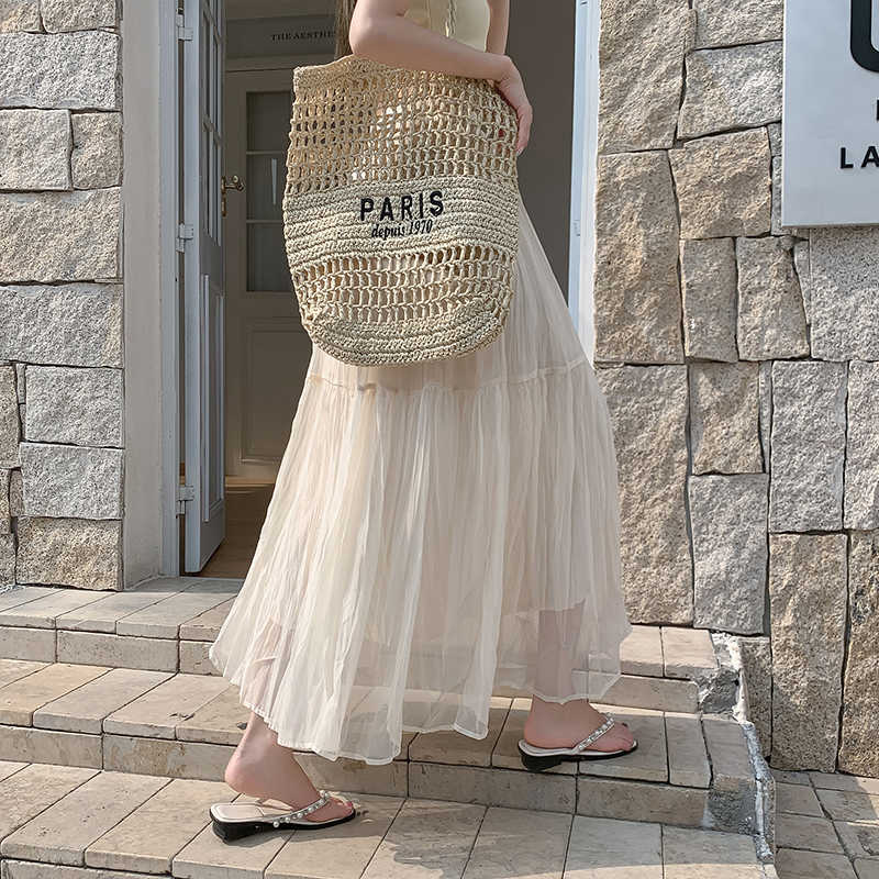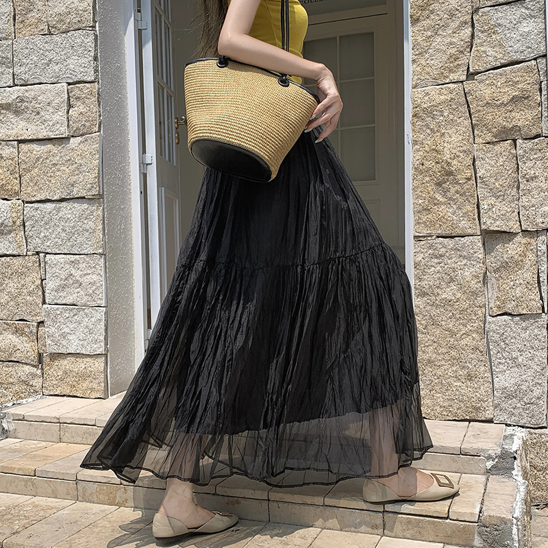 고급 센스 스팽글 망사 반신 스커트 여성 봄 여름 섹션 도루 센스 슈퍼 요정 거즈 스커트 표지 십자가 큰 진자 a 단어 길이 치마