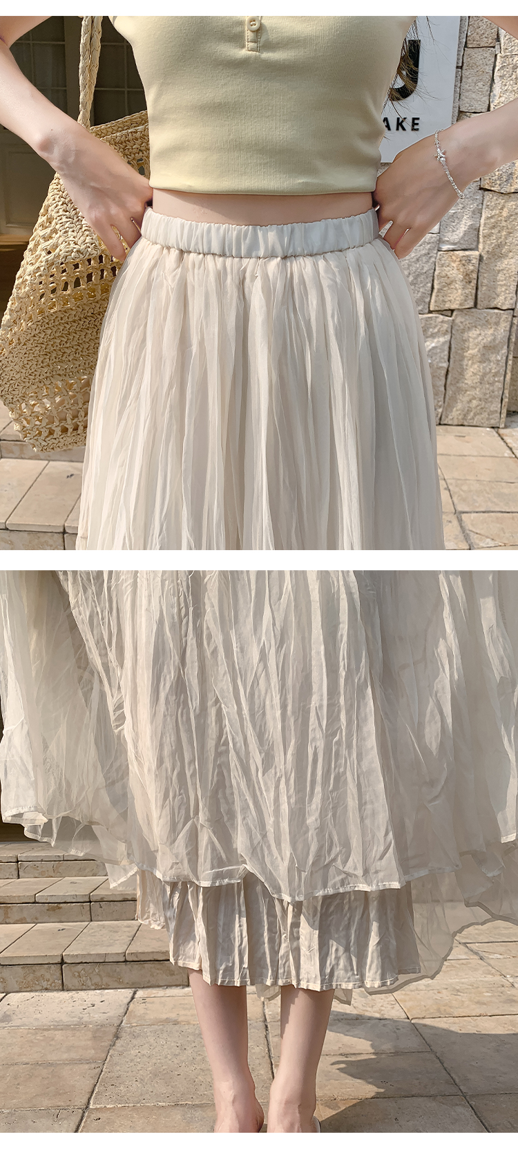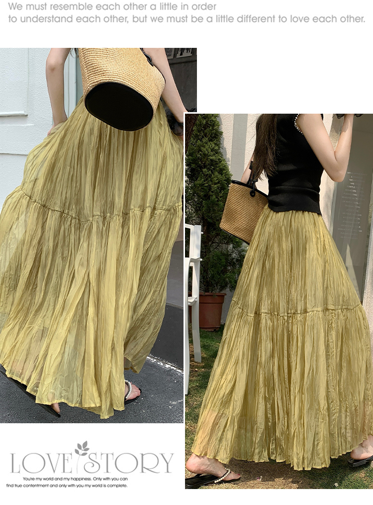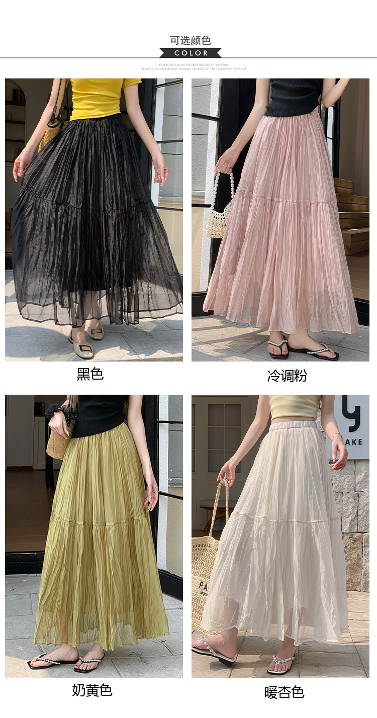 2026 새로운 한 마디 대 치마 부드러운 바람 슈퍼 요정 중간 길이 거즈 스커트 패션 슬림해 보이는 반신 스커트 롱 스커트 여성