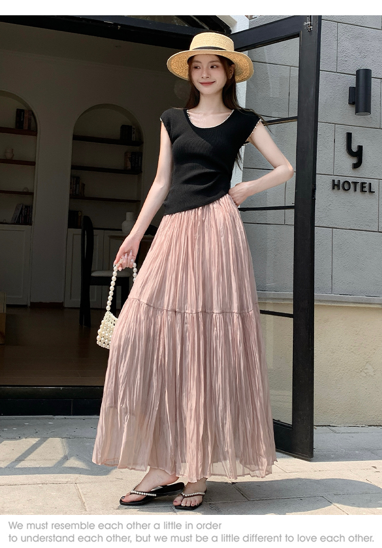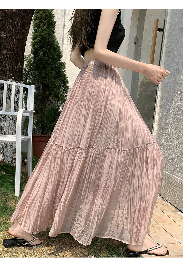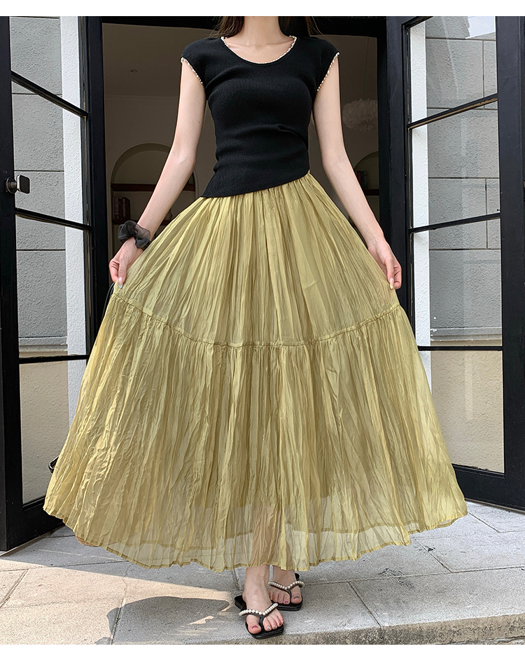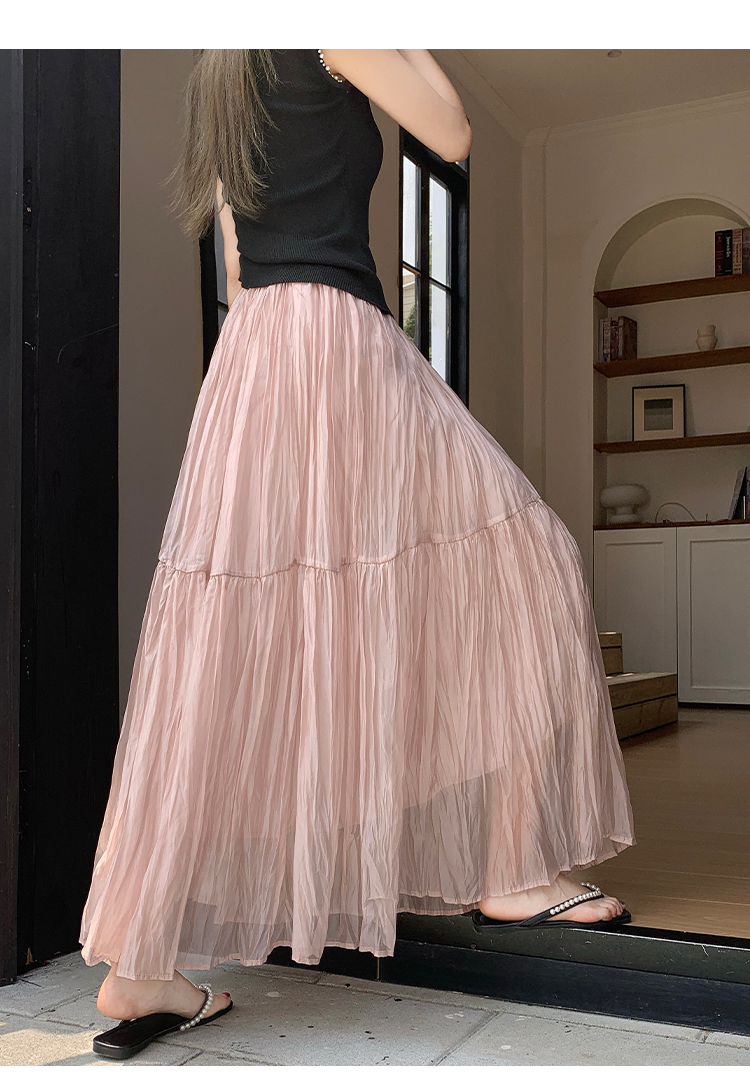 깃발 거즈 스커트 반신 스커트 빛 럭셔리 고급 센스 여성 2026 새로운 하이웨이스트 슬림해 보이는 A라인 스커트 우아한 큰 진자 롱 스커트