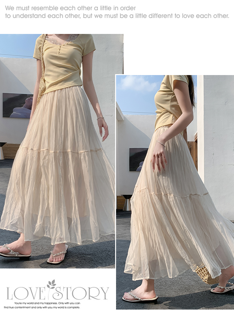 2026 여름 새로운 거즈 스커트 화이트 망사 반신 스커트 여성 도루 가을 센스 한 마디 하이웨이스트 롱 스커트 큰 진자 퍼프 스커트