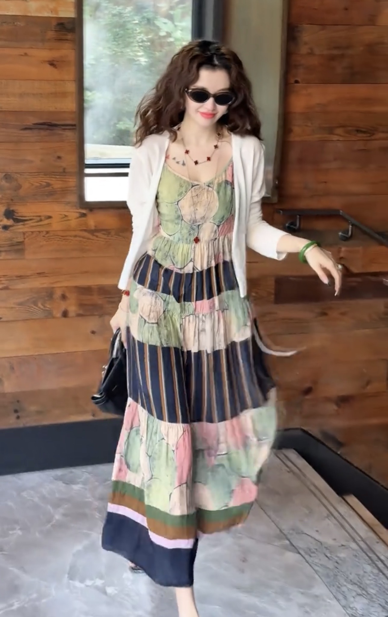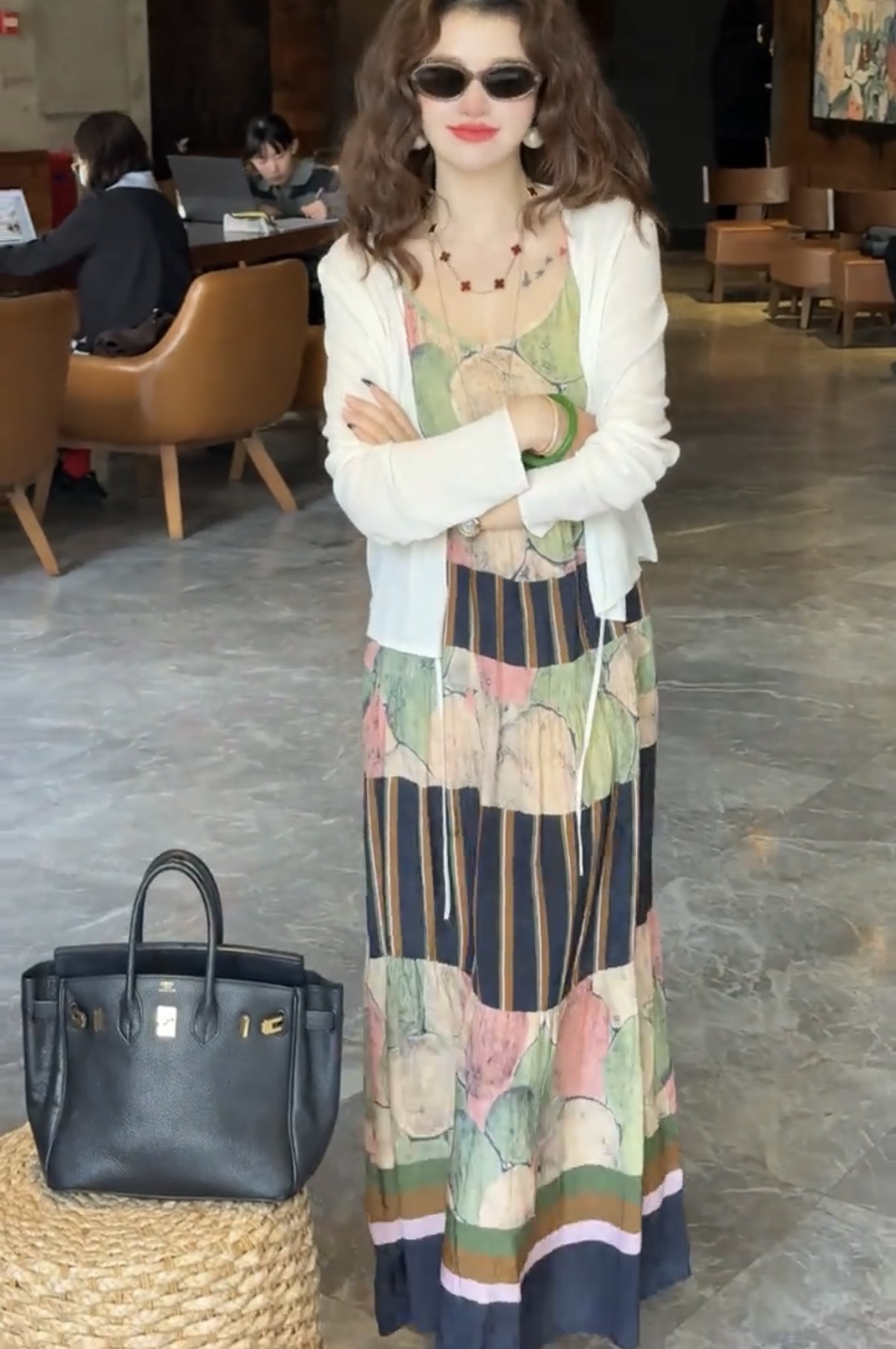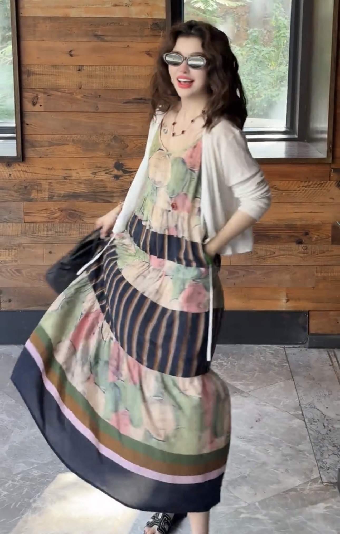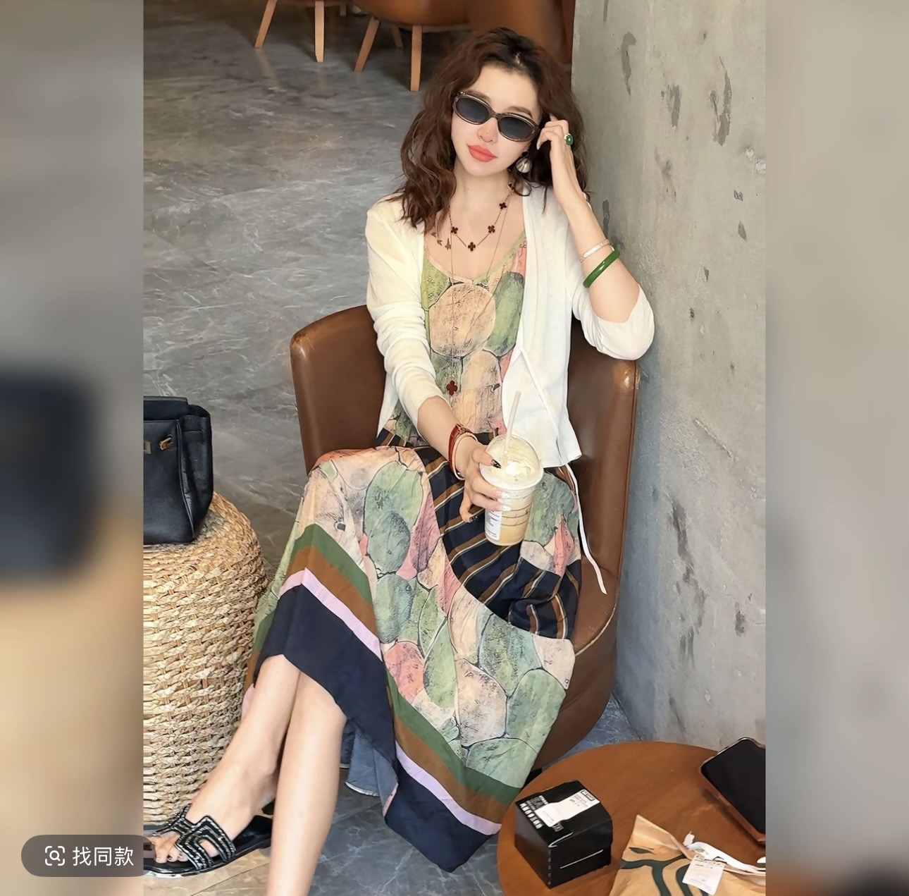 있음 선적 여름 새로운 패션 품격 루즈핏 슬립 드레스 드레스 오픈 가디건 또한있다 5449