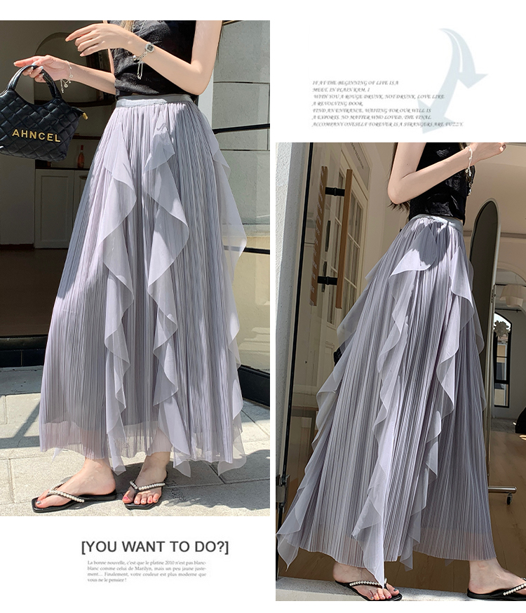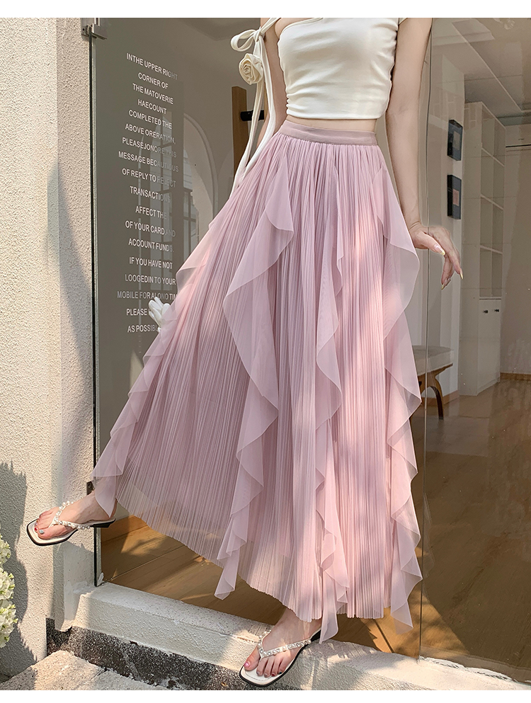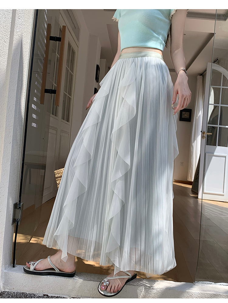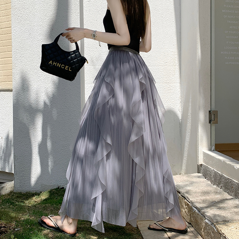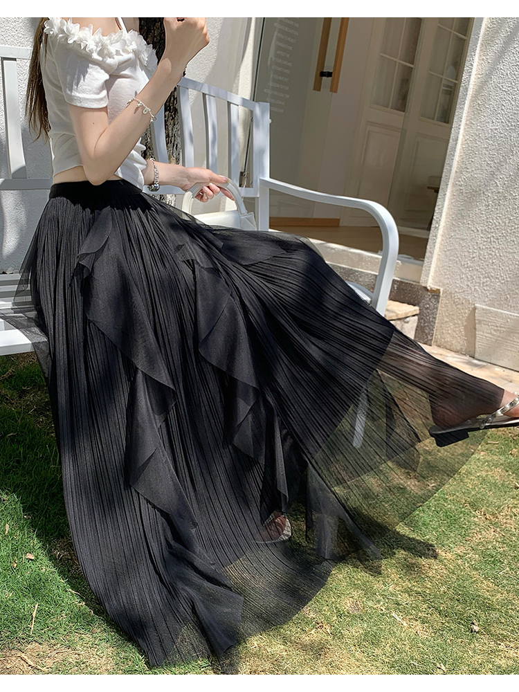 고급 센스 스팽글 망사 반신 스커트 여성 봄 여름 섹션 도루 센스 슈퍼 요정 거즈 스커트 표지 십자가 큰 진자 a 단어 길이 치마