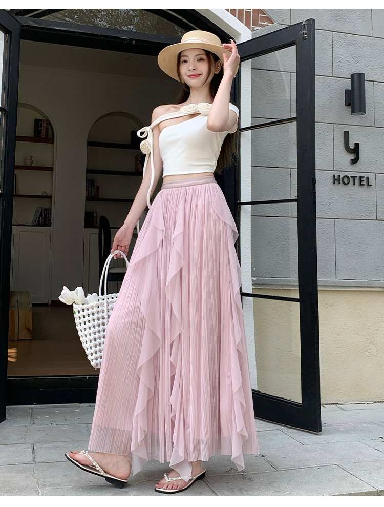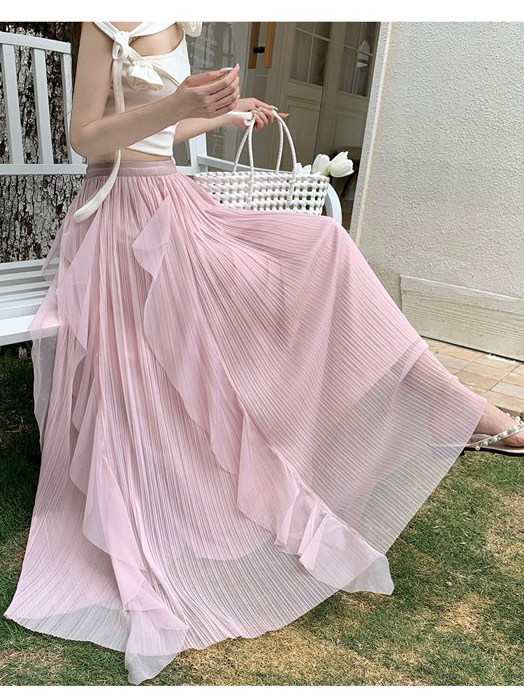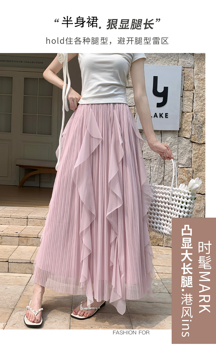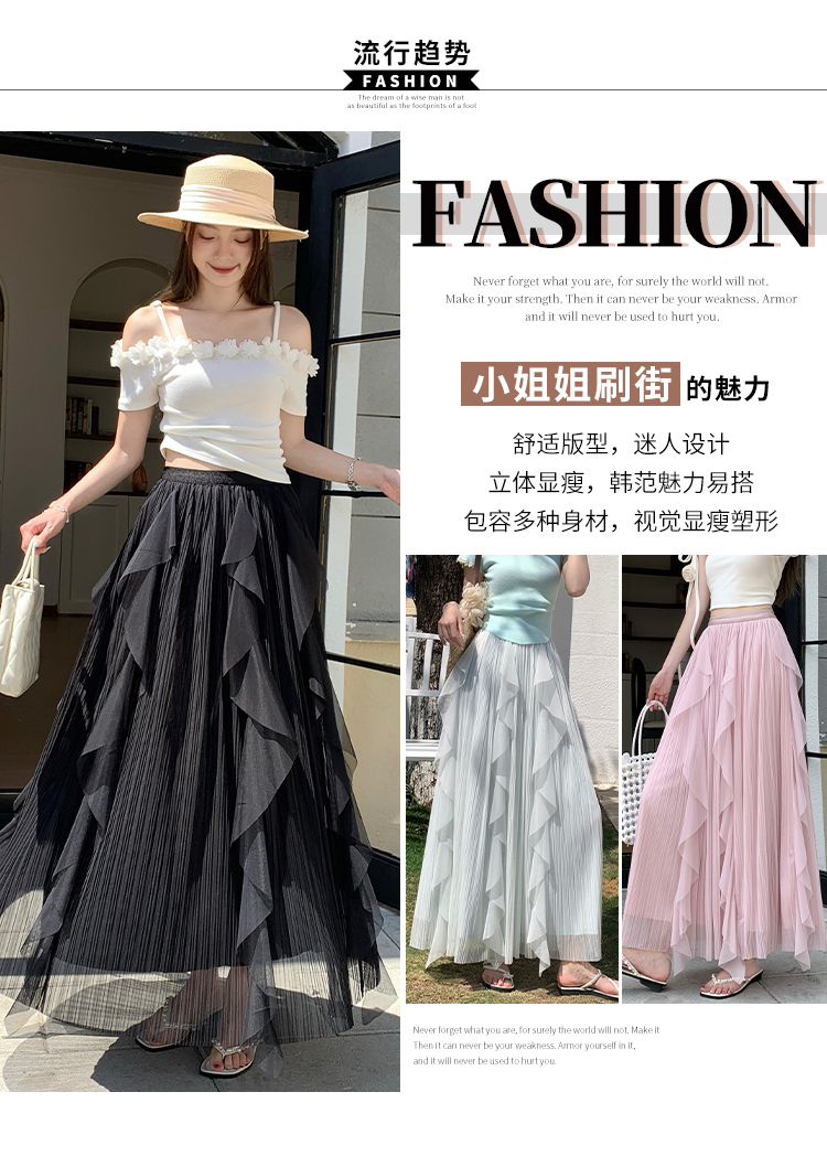 고급 센스 스팽글 망사 반신 스커트 여성 봄 여름 섹션 도루 센스 슈퍼 요정 거즈 스커트 표지 십자가 큰 진자 a 단어 길이 치마