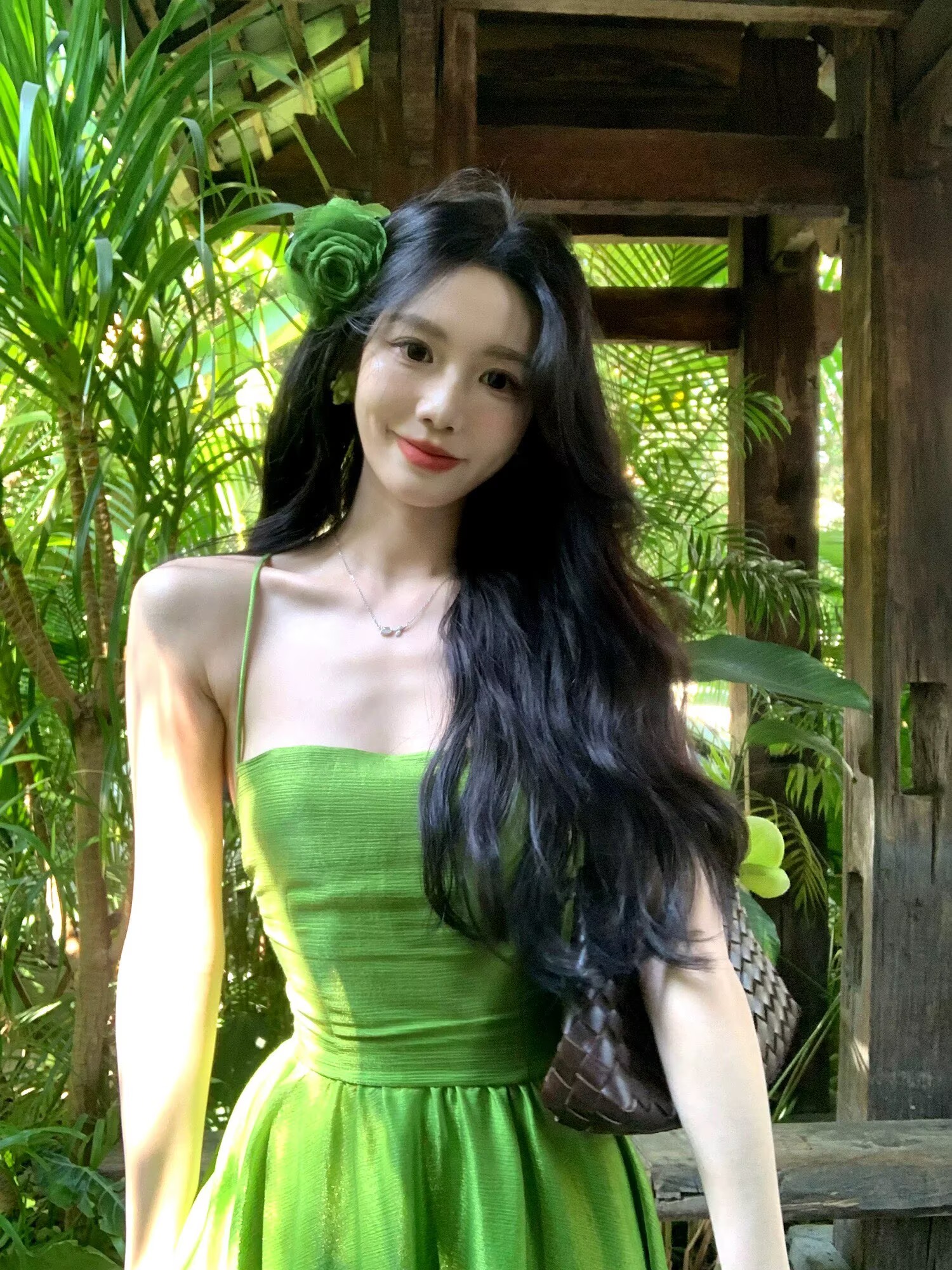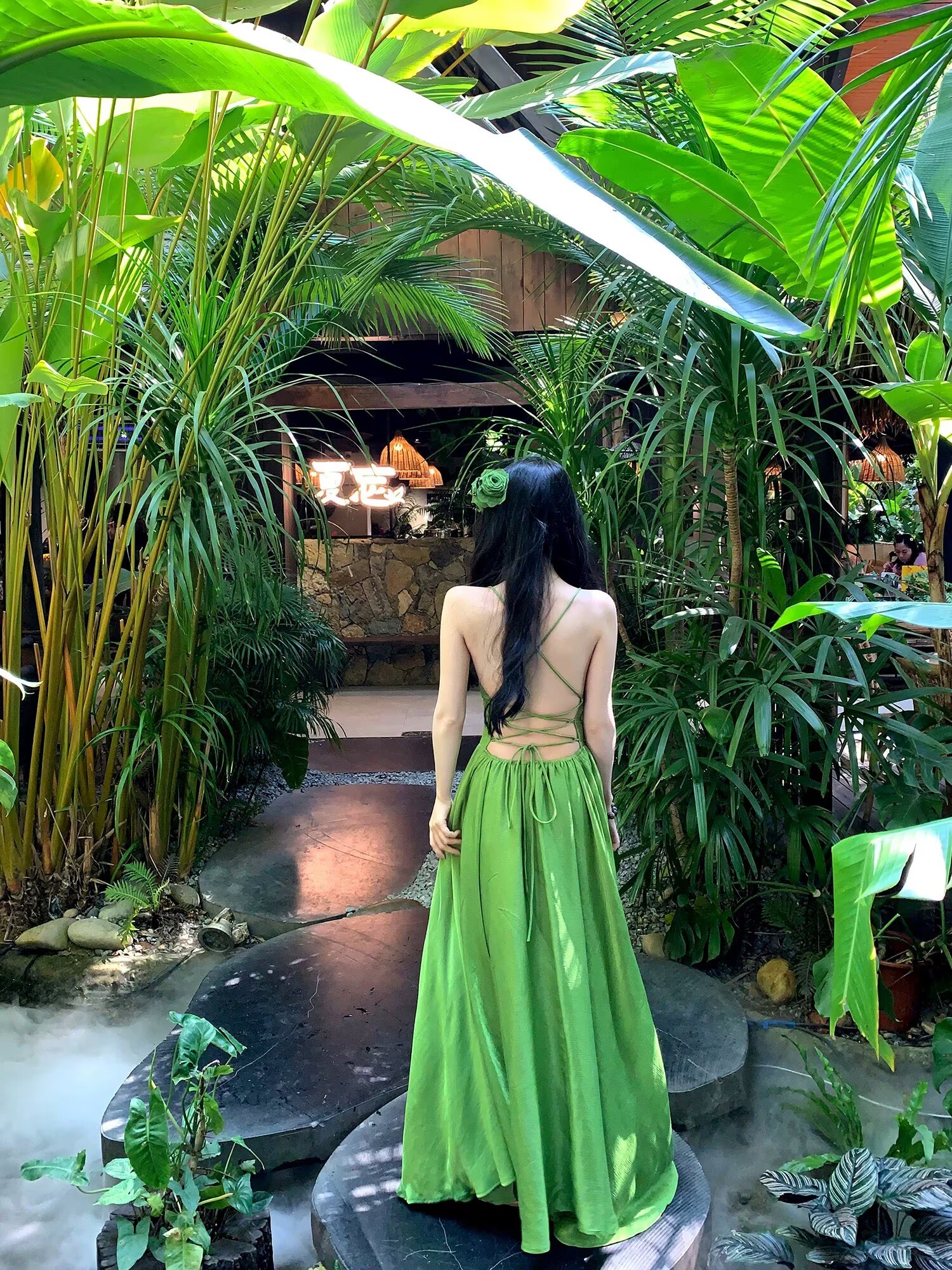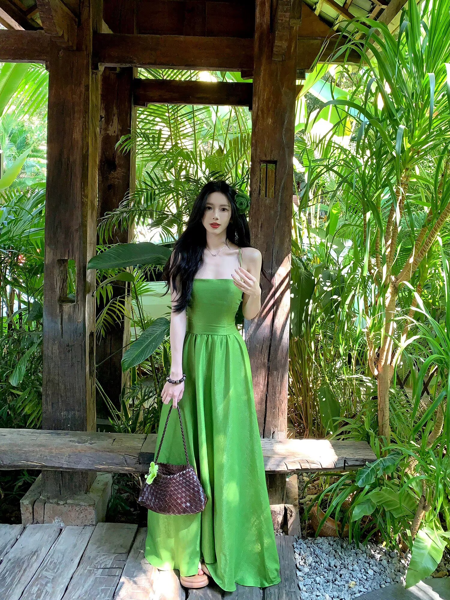 하나 달콤한 복숭아 yikett 인간 그린 필드 여름 휴가 백리스 슬립 여성 드레스 품격 롱 스커트