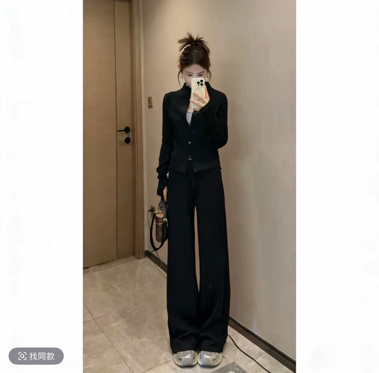 노래 송 봄 여름 새로운 느긋한 슬림해 보이는 느슨함 센스 오픈 가디건 슬립 하이웨이스트 긴 바지 3종 세트 세트