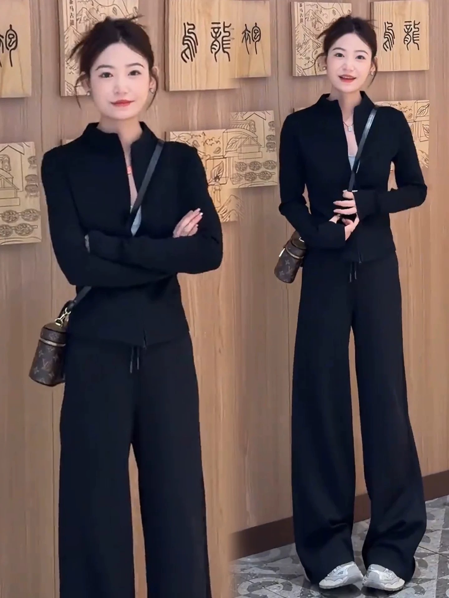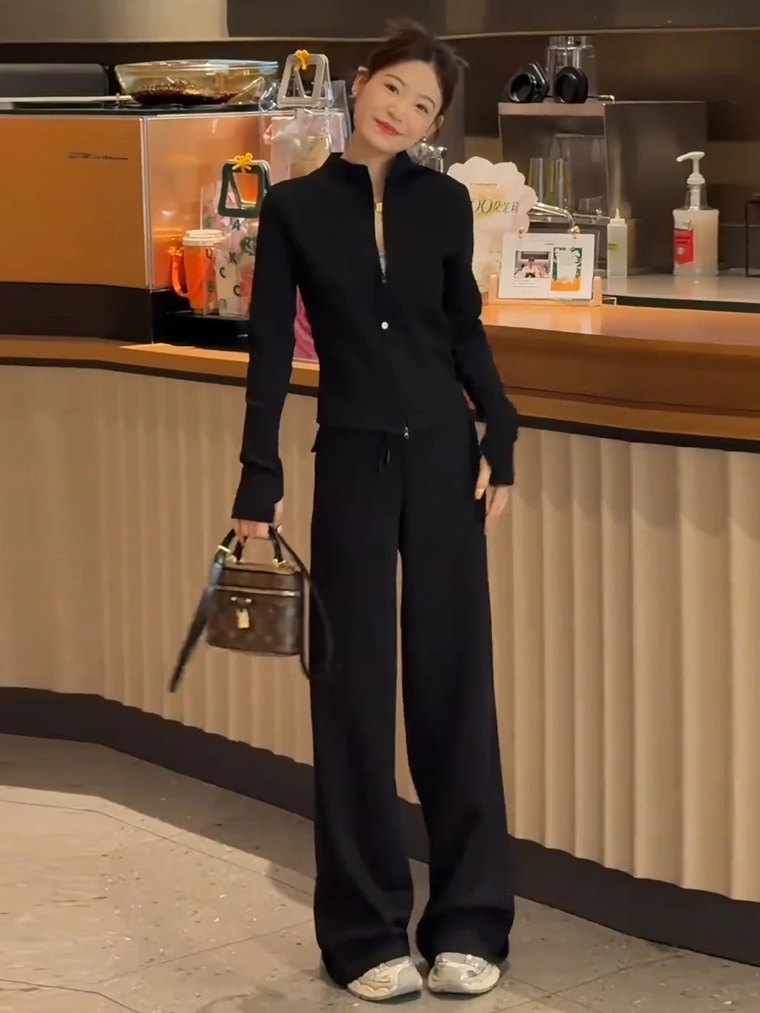 오래된 돈 바람 품격 패션 루즈핏 검정색 맨위 하이웨이스트 반신 스커트 여성 의류 2026 봄 새로운 캐주얼 세트