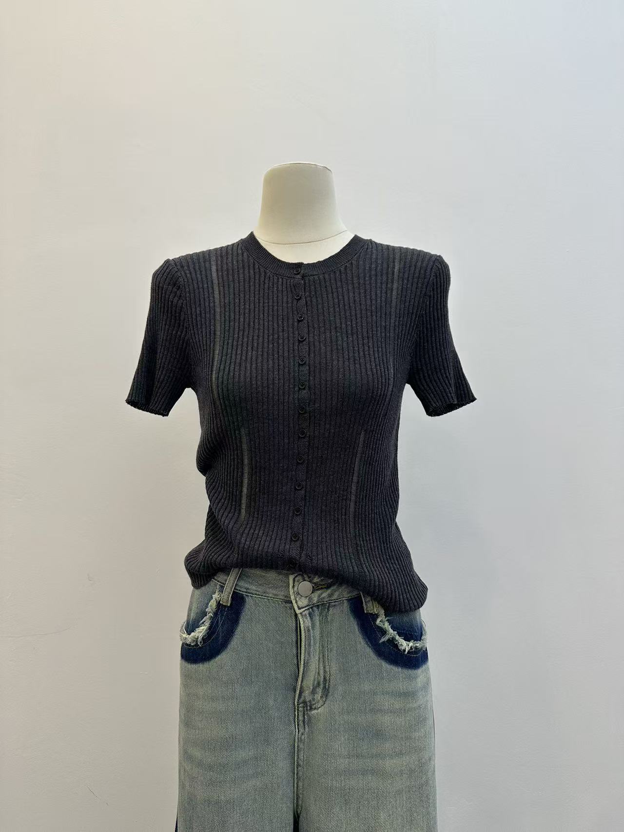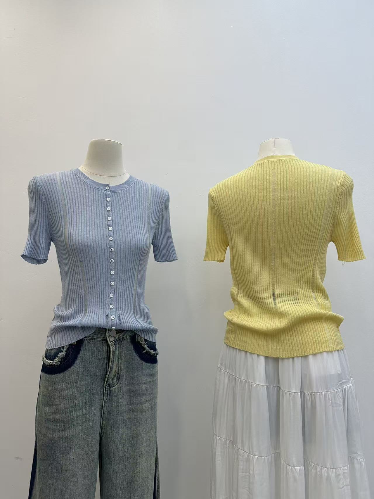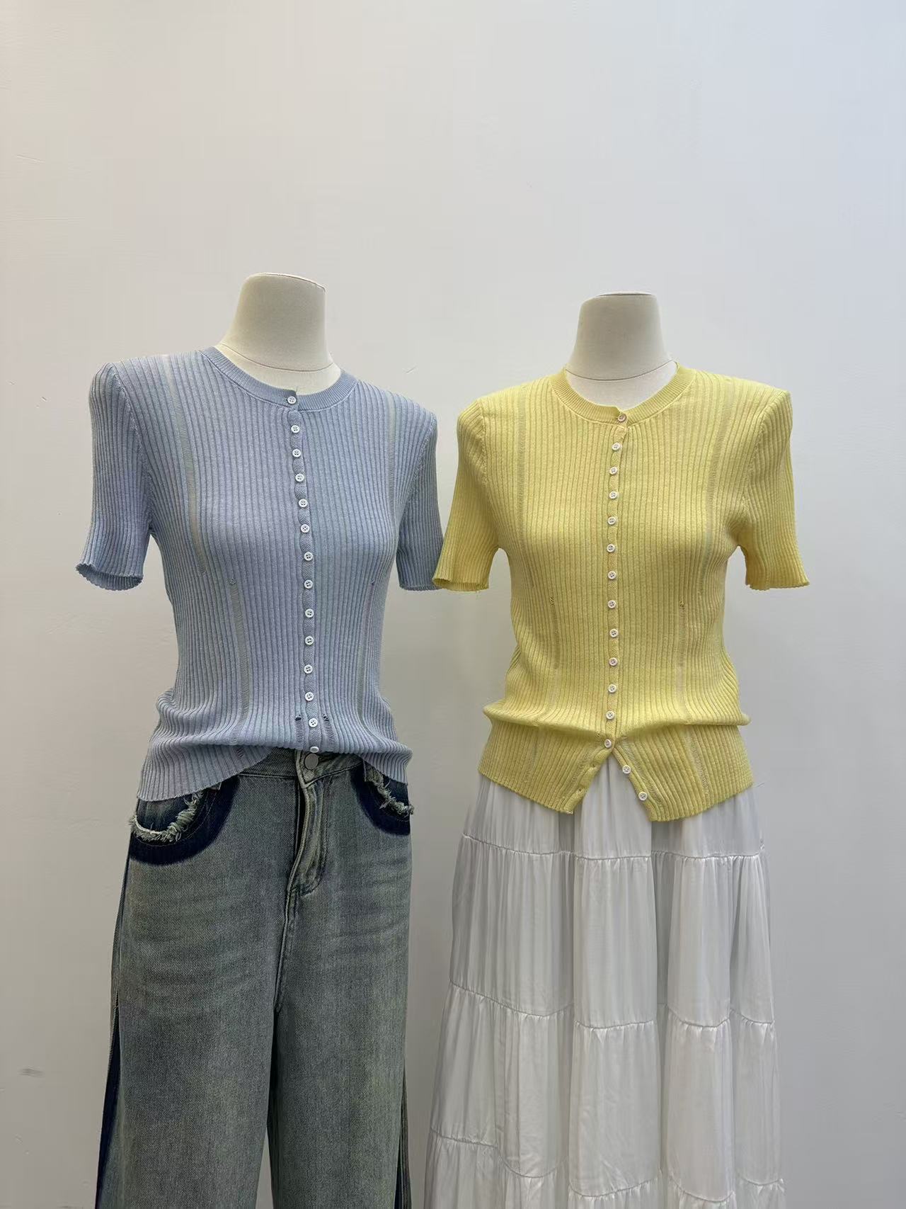 jill 대 자매 여름 뭐라구? 뭐라구? 차 물 용해 양모 니트 세트 물 용해 양모 얇은 스타일 니트 스웨터 세트