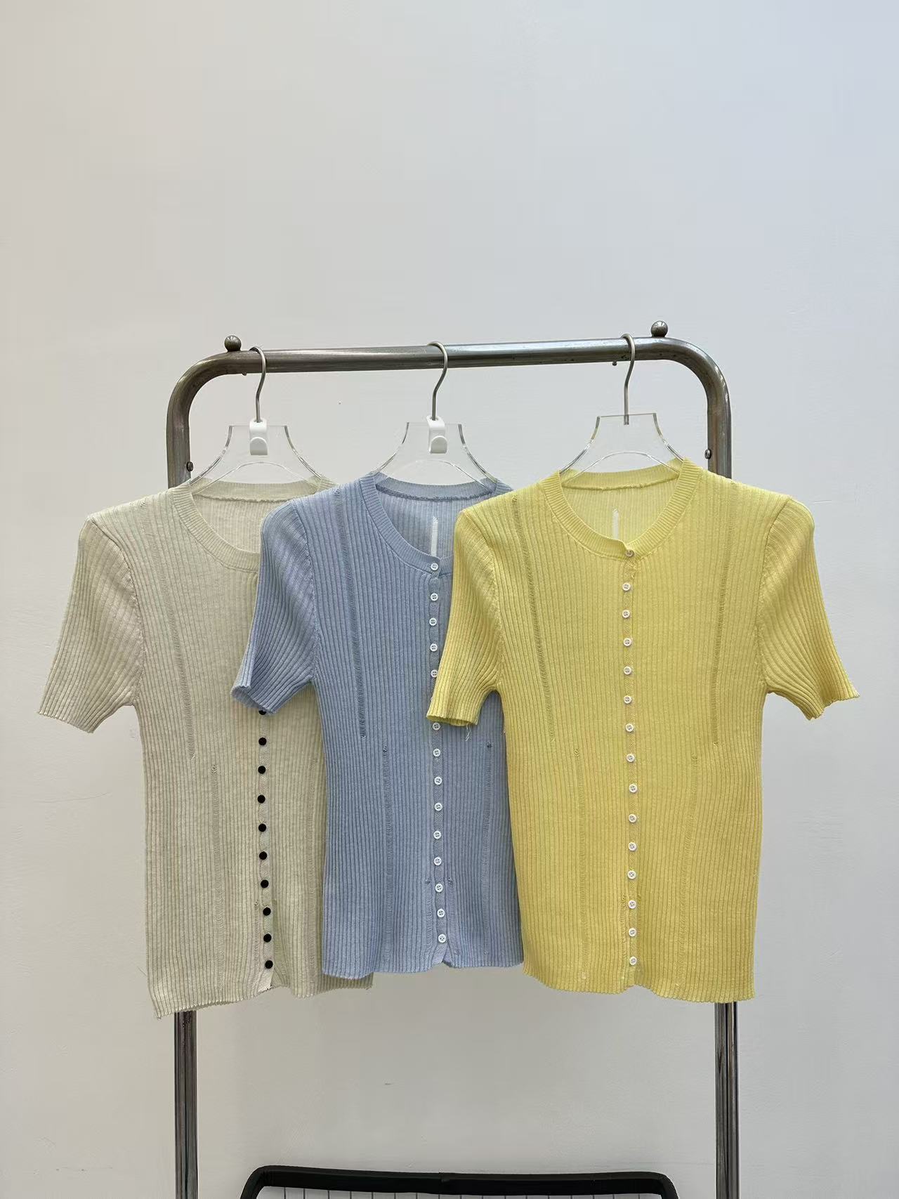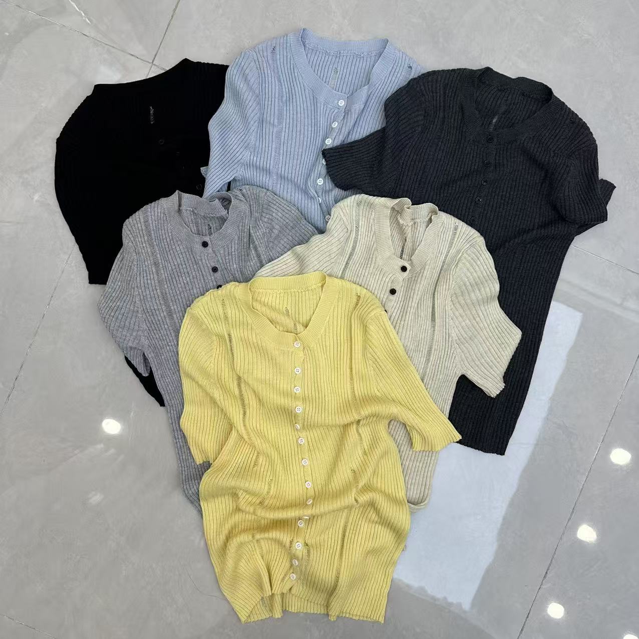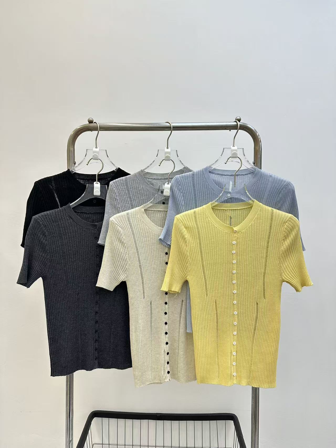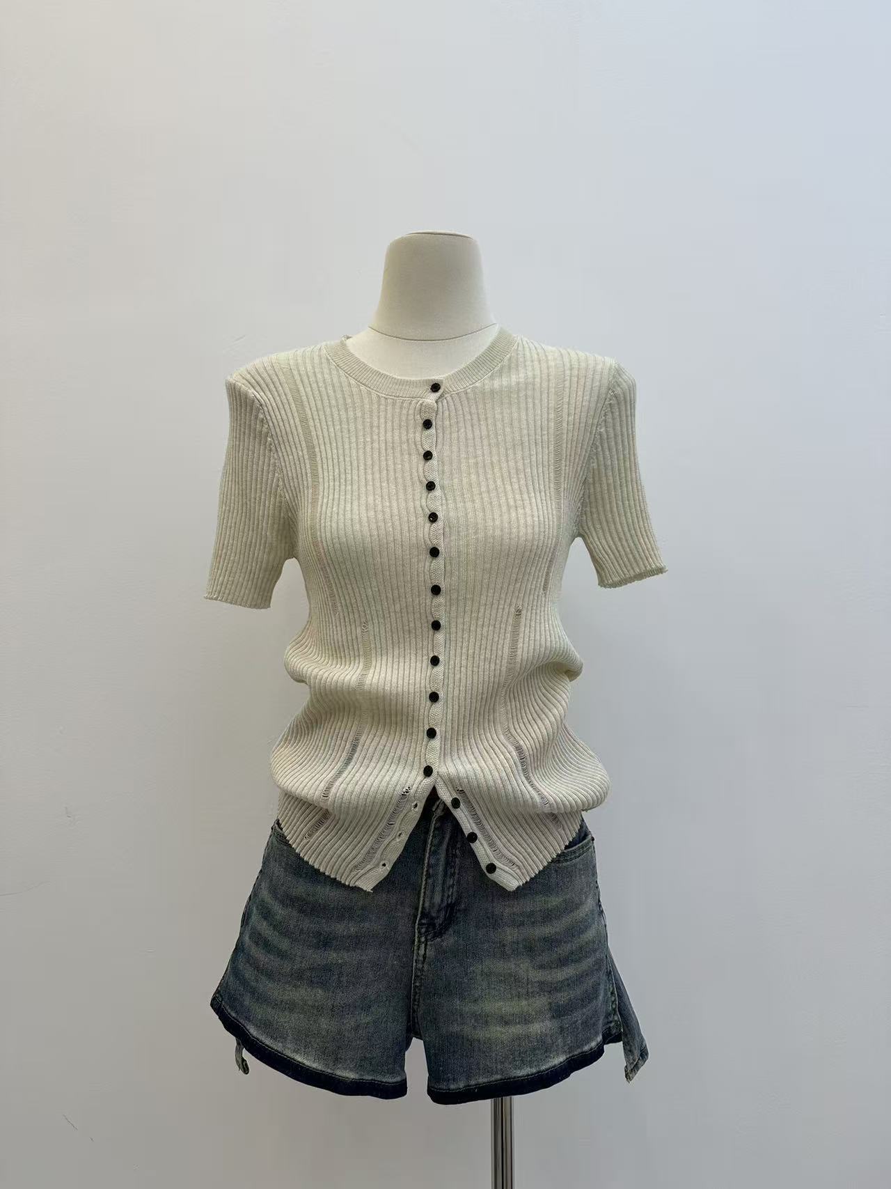 2026 여름 새로운 레트로 배색 홀로우 아웃 몸매 가꾸기 슬림해 보이는 다용도 품격 반팔 니트 오픈 가디건 맨위 트렌디