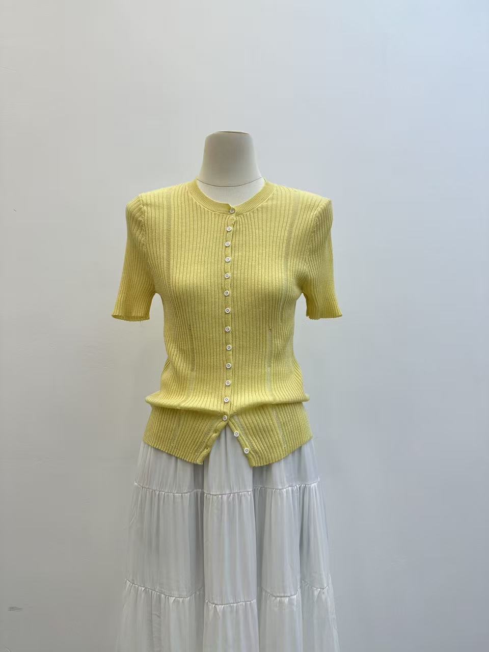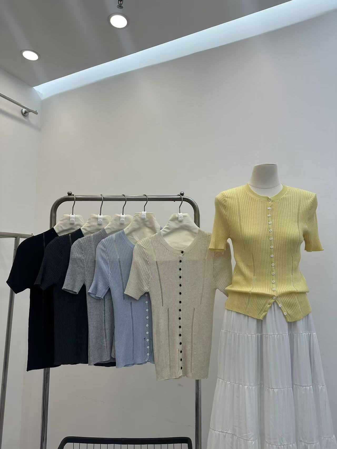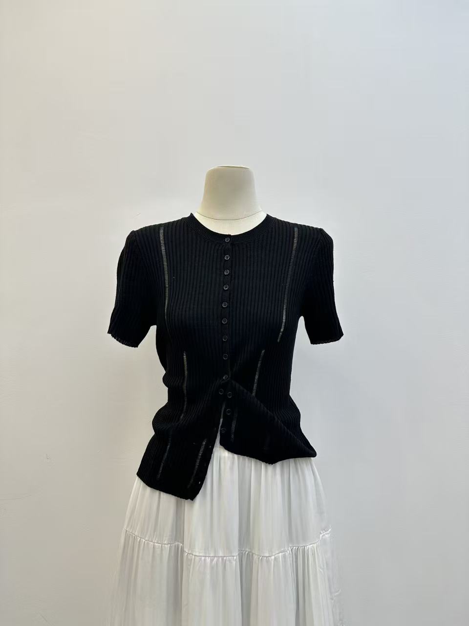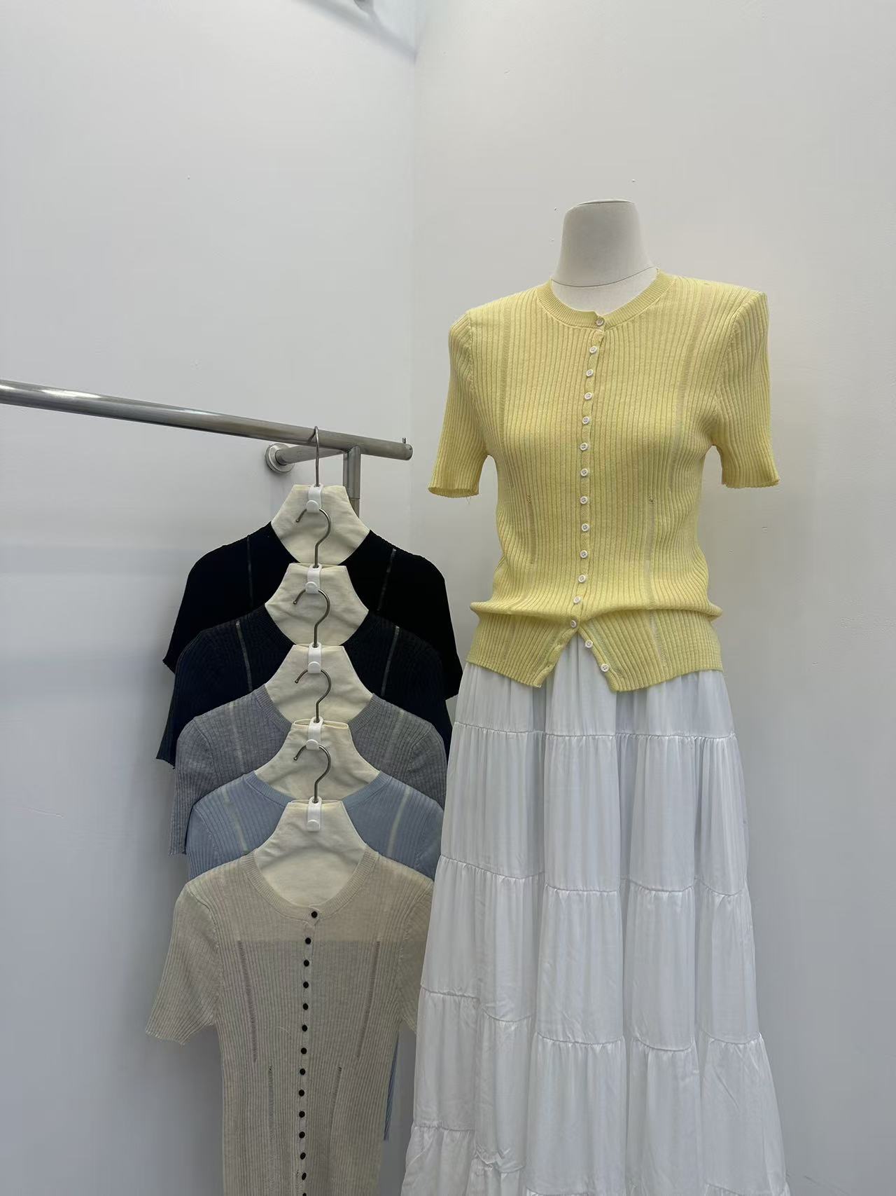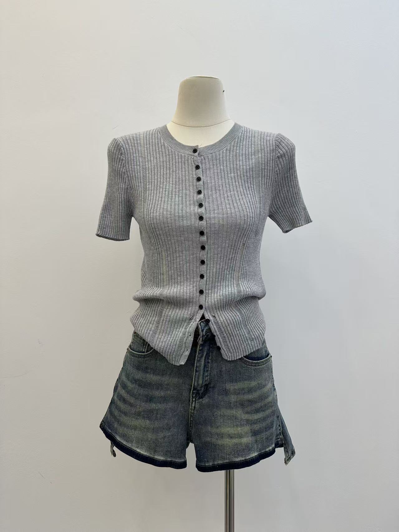 2026 여름 새로운 레트로 배색 홀로우 아웃 몸매 가꾸기 슬림해 보이는 다용도 품격 반팔 니트 오픈 가디건 맨위 트렌디