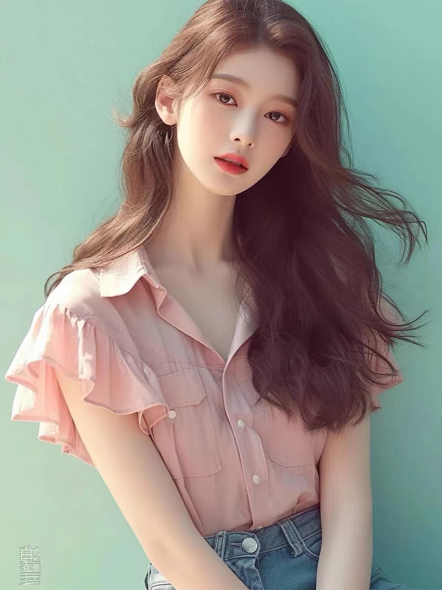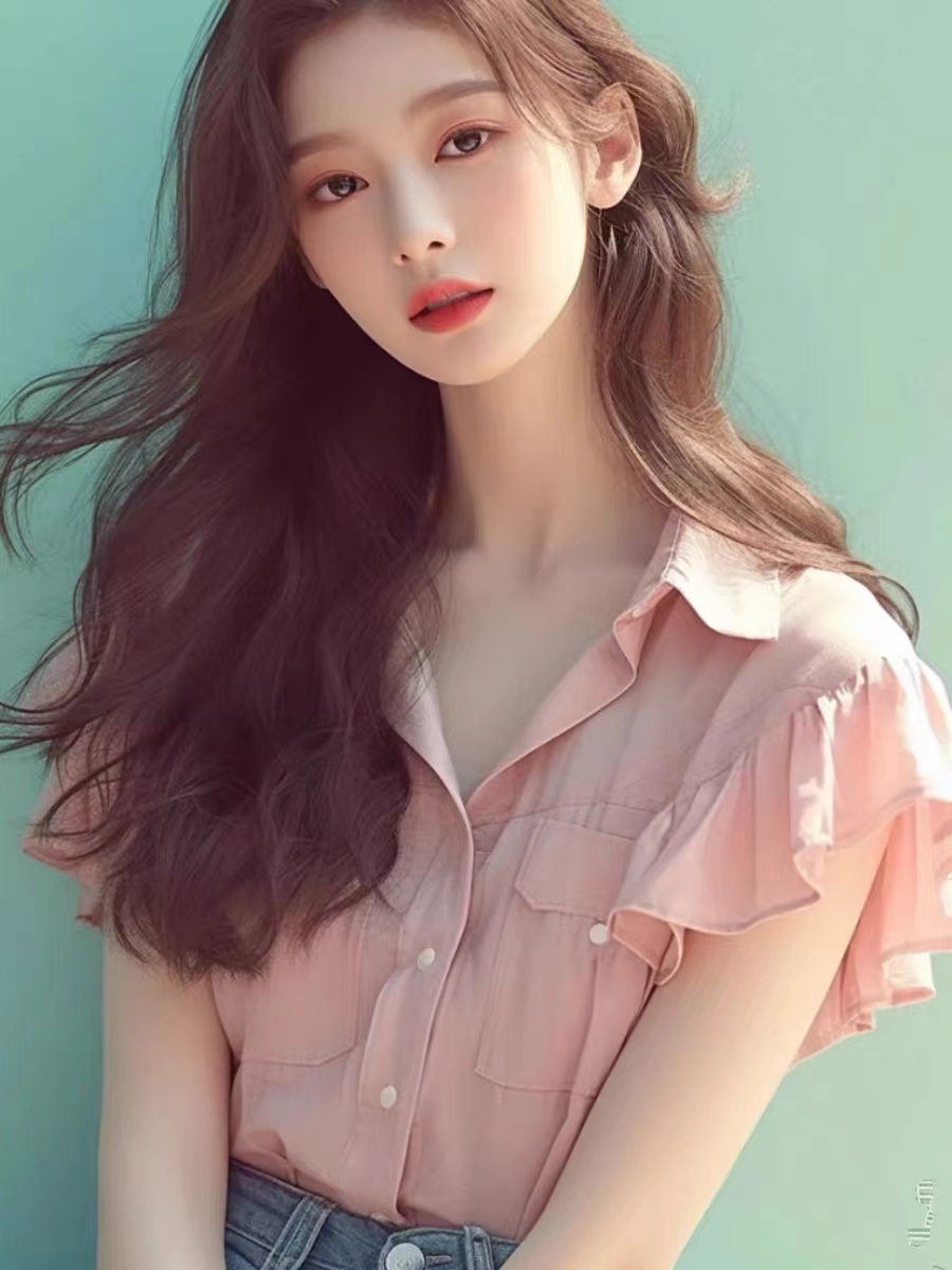 작은 키 외국 가스 연령 감소 고급 센스 슈퍼 잘 생긴 맨위 작은 샤넬 스타일 품격 핑크색 프릴 여성 셔츠 여름