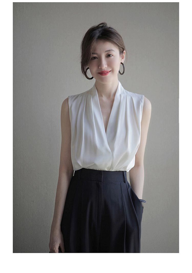 셔츠 여성 디자인 센스 작은 대중 2026 여름 루즈핏 슬림해 보이는 외국 가스 새틴 민소매 맨위 여성 여름 새틴 셔츠