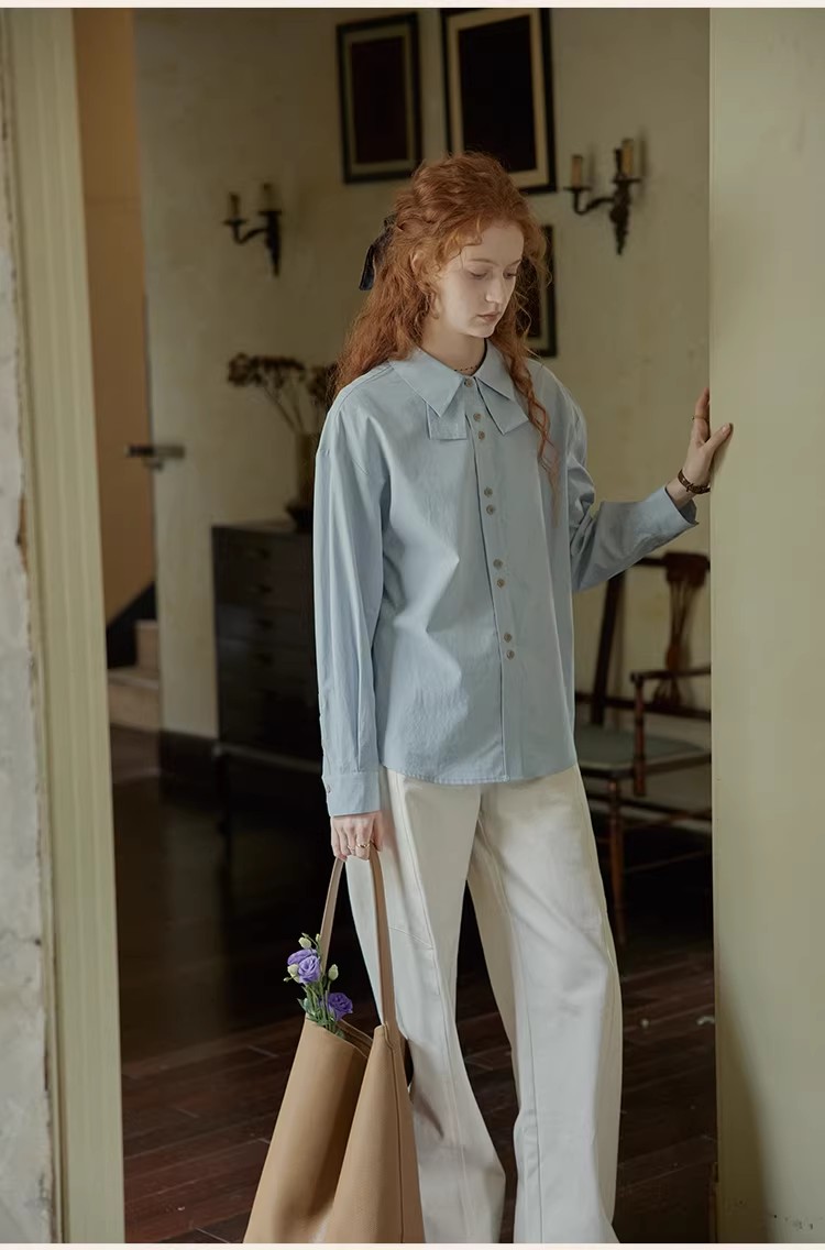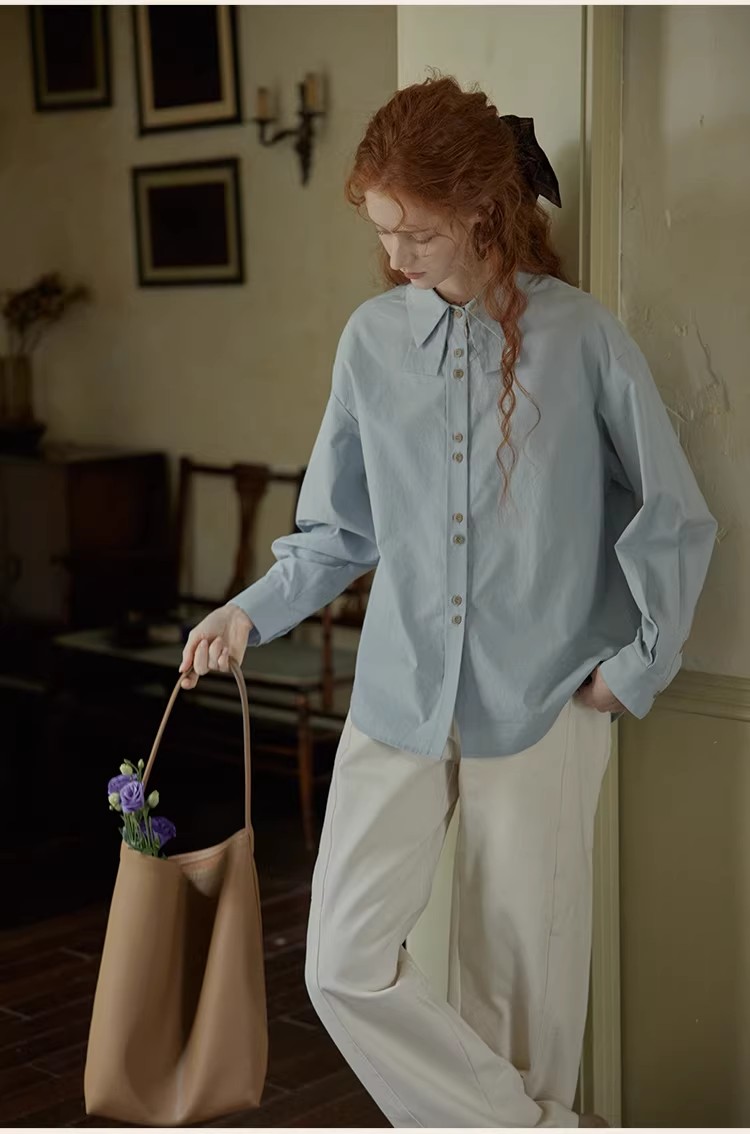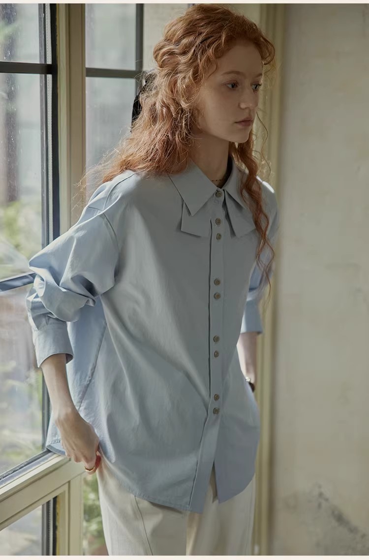 아니요 실사 프랑스식 레트로 디자인 센스 여성 셔츠