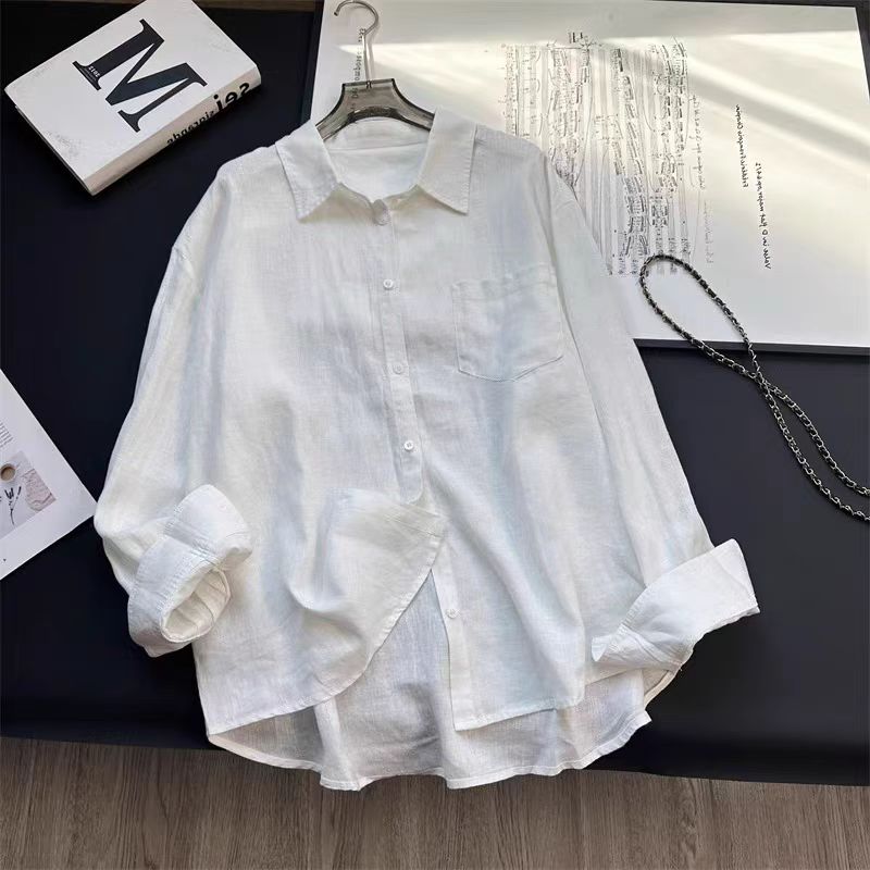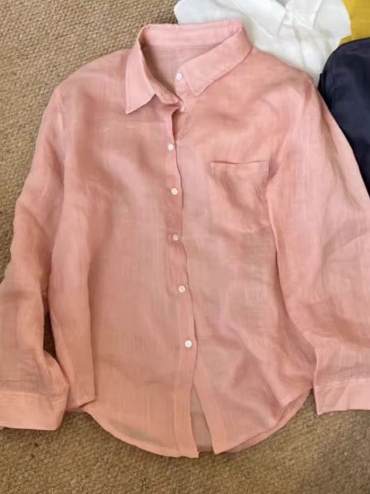 오래된 돈 바람 아마 주간 실크 여성 셔츠 2026 봄 루즈핏 캐주얼 오픈 가디건 품격 느슨함 센스 긴팔 셔츠