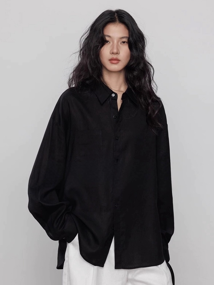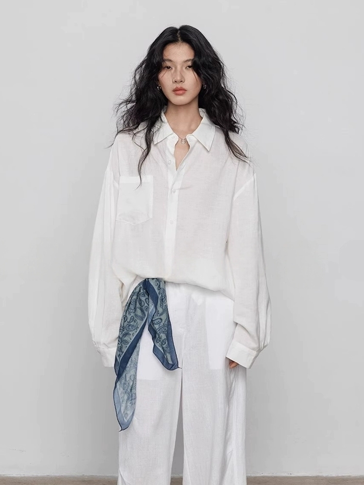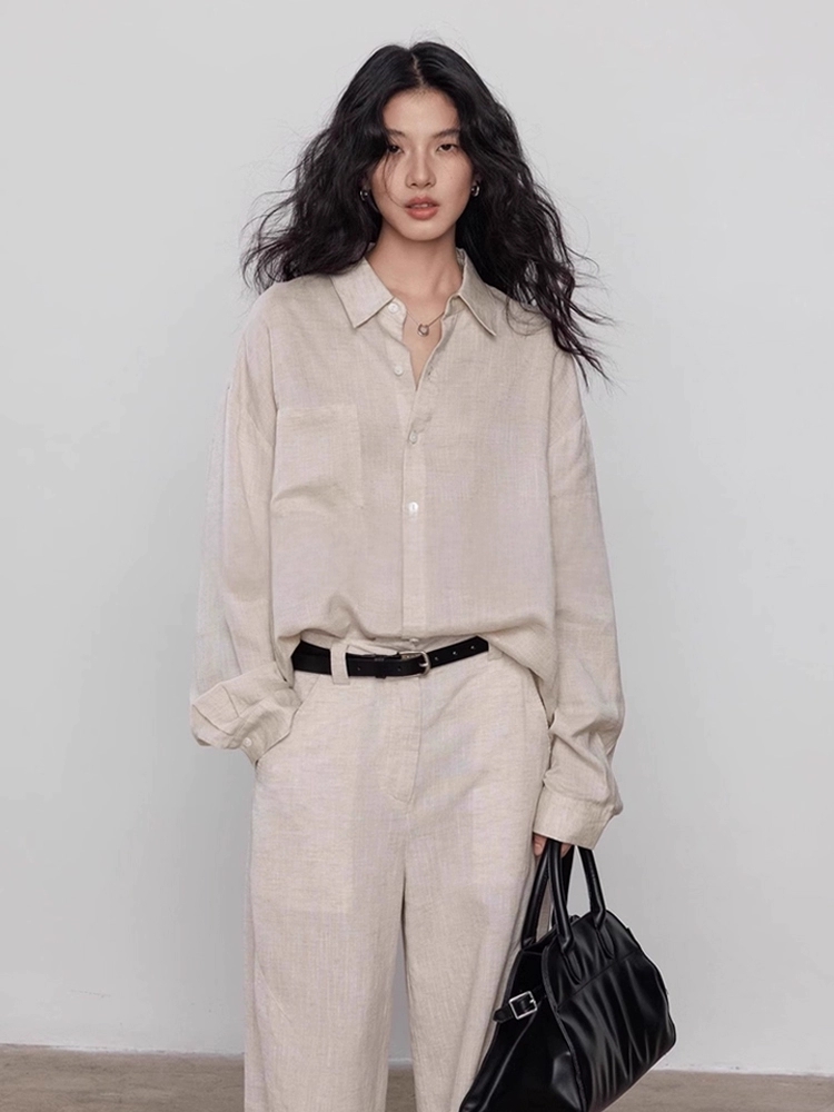 오래된 돈 바람 아마 주간 실크 여성 셔츠 2026 봄 루즈핏 캐주얼 오픈 가디건 품격 느슨함 센스 긴팔 셔츠