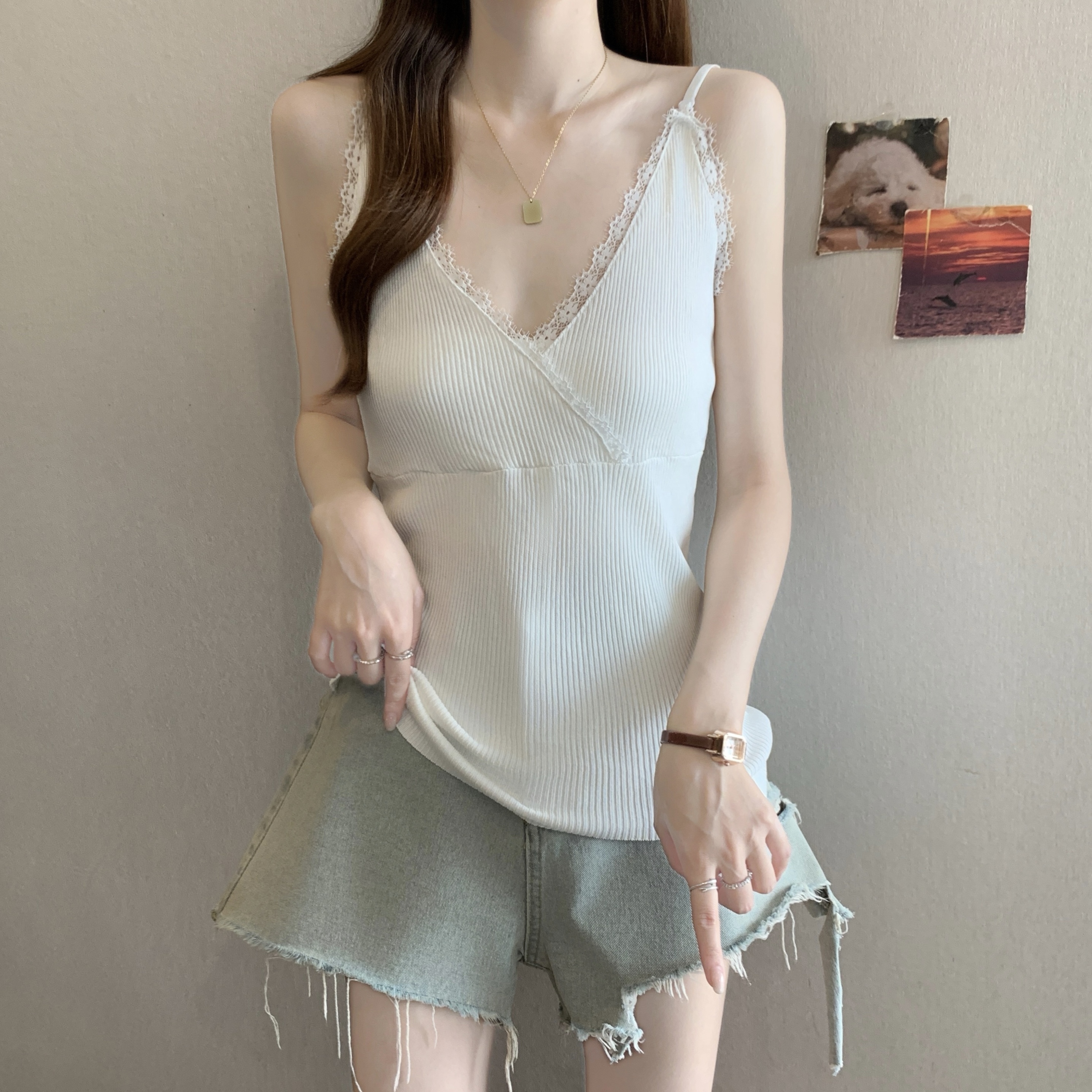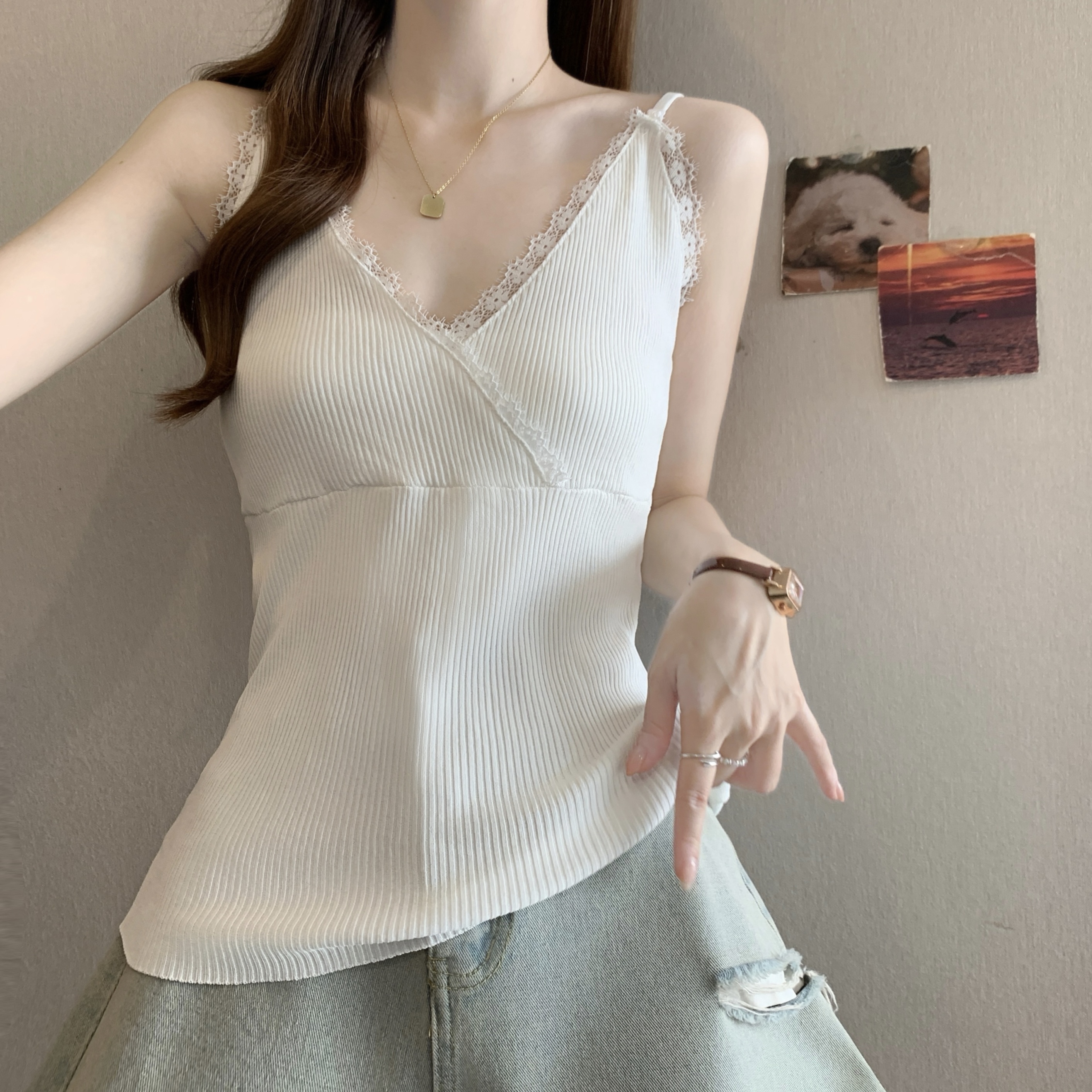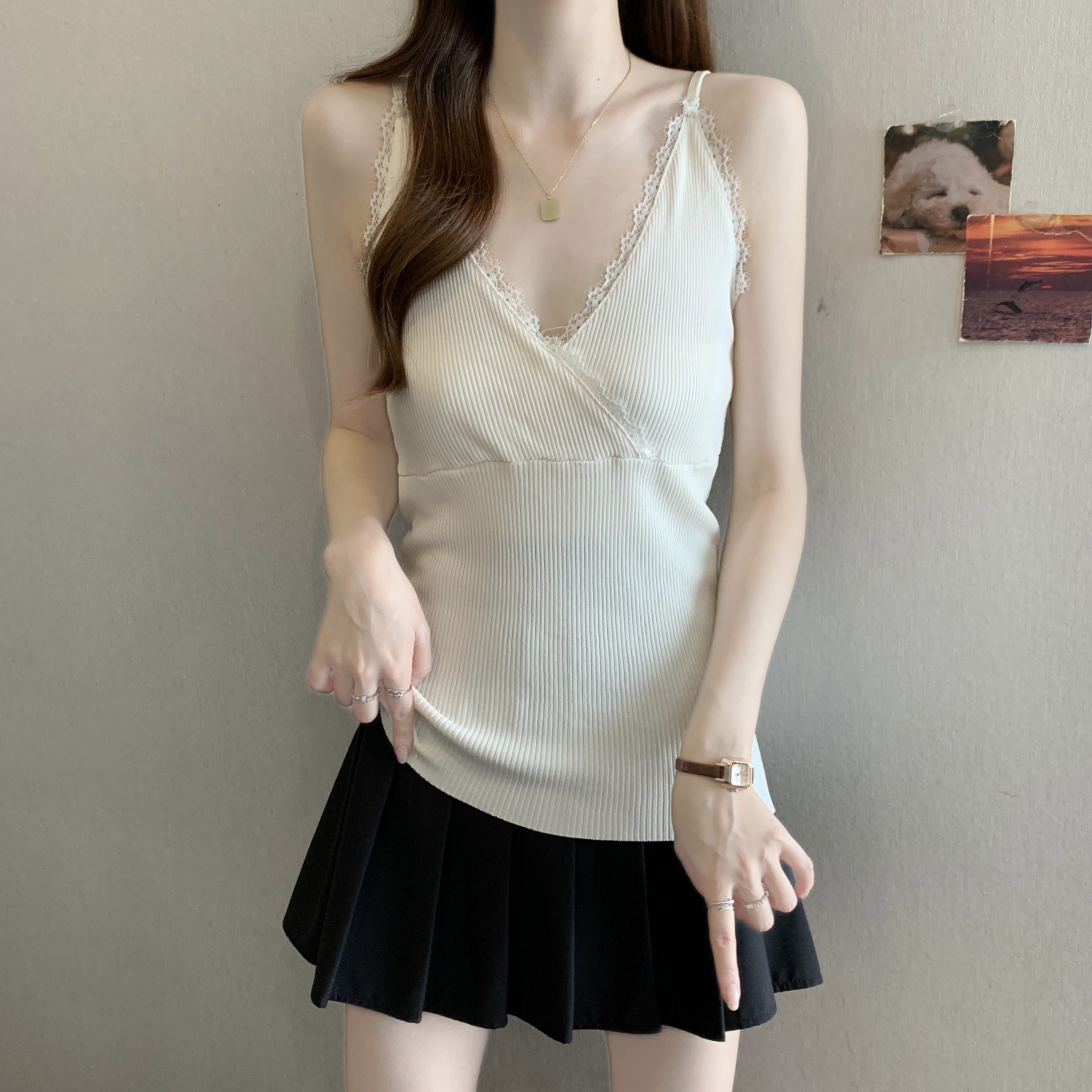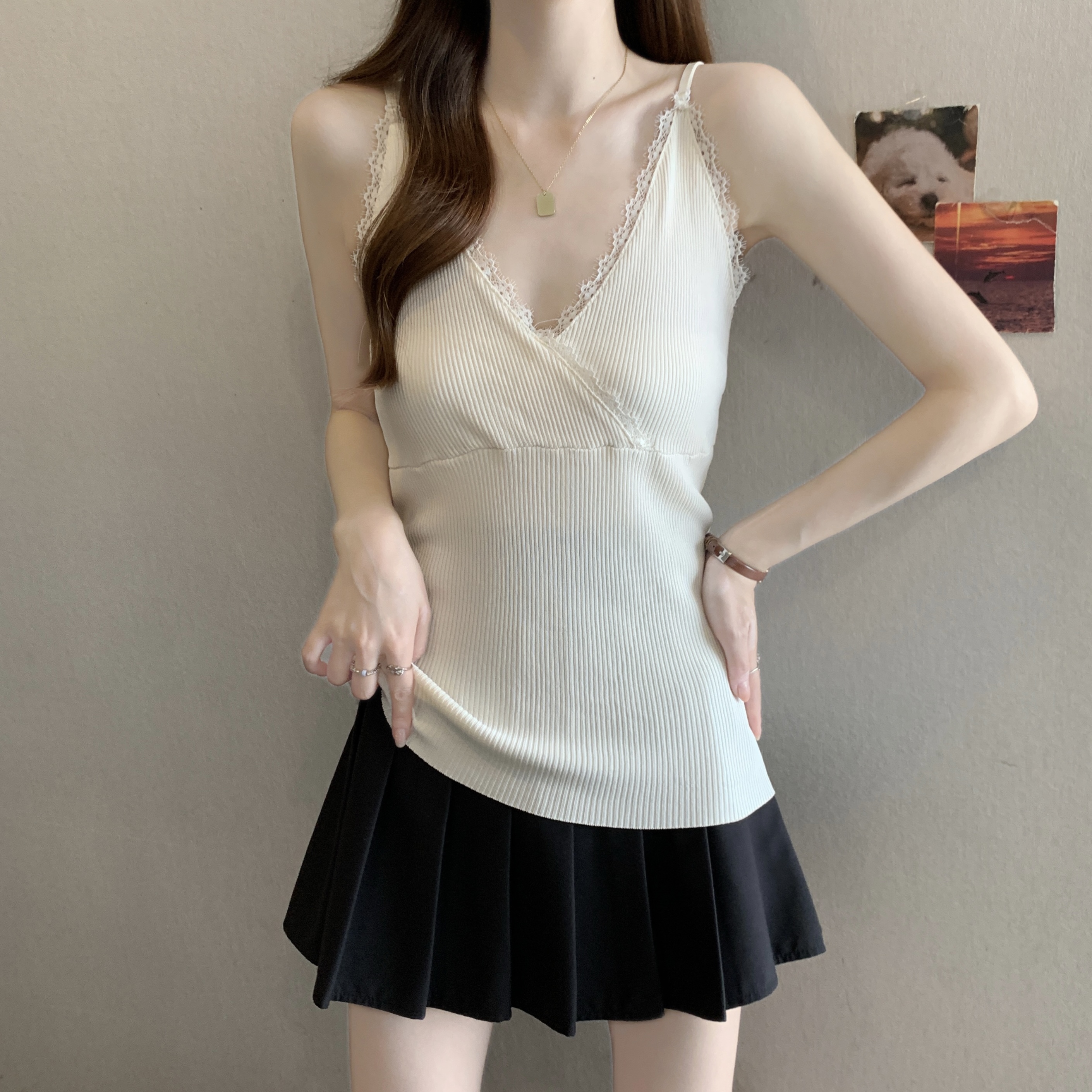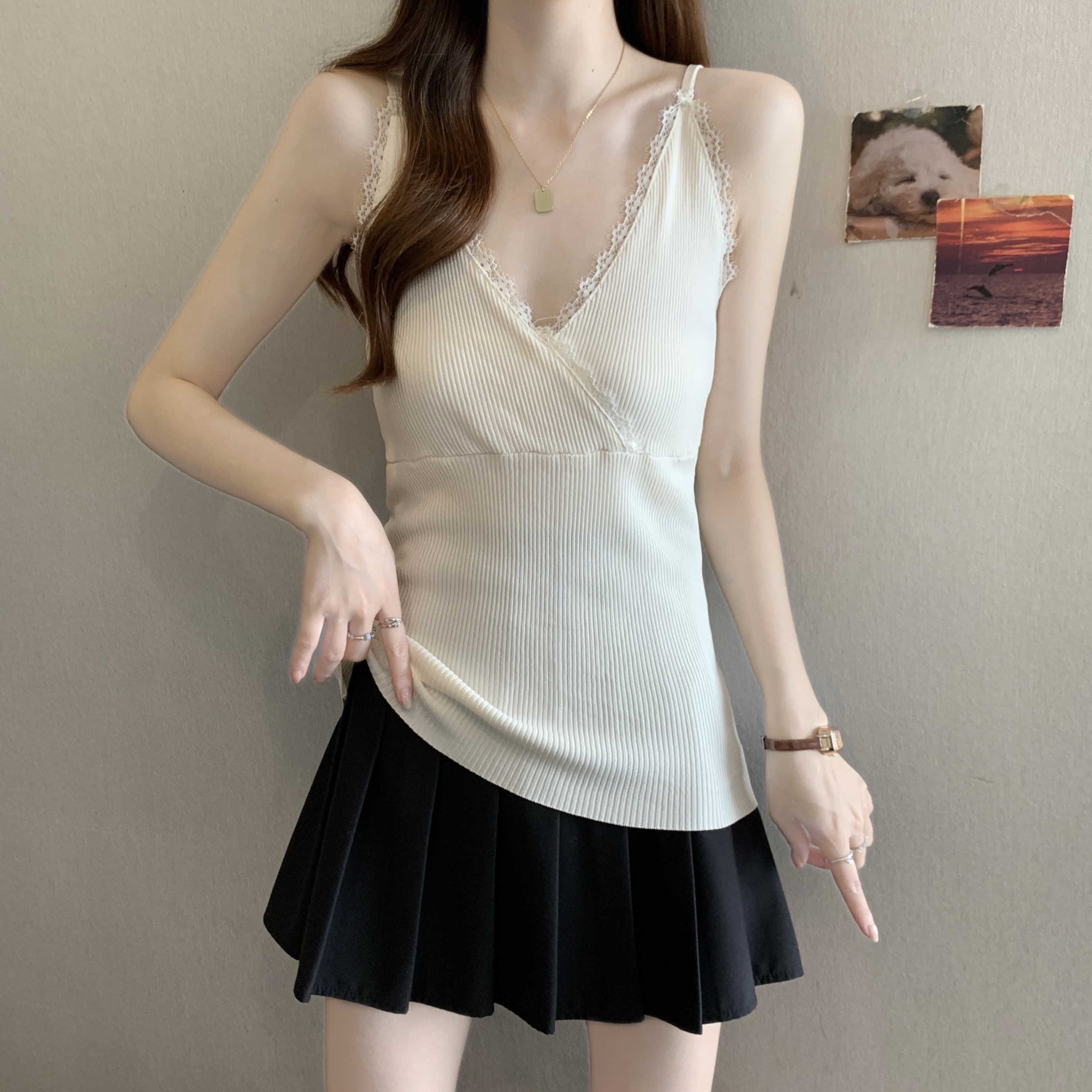 실사 빅 사이즈 지방 mm 새로운 디자인 센스 달콤한 스타일 미니멀리즘 노출 방지 조끼 슬립 슬림해 보이는 표지 고기 맨위