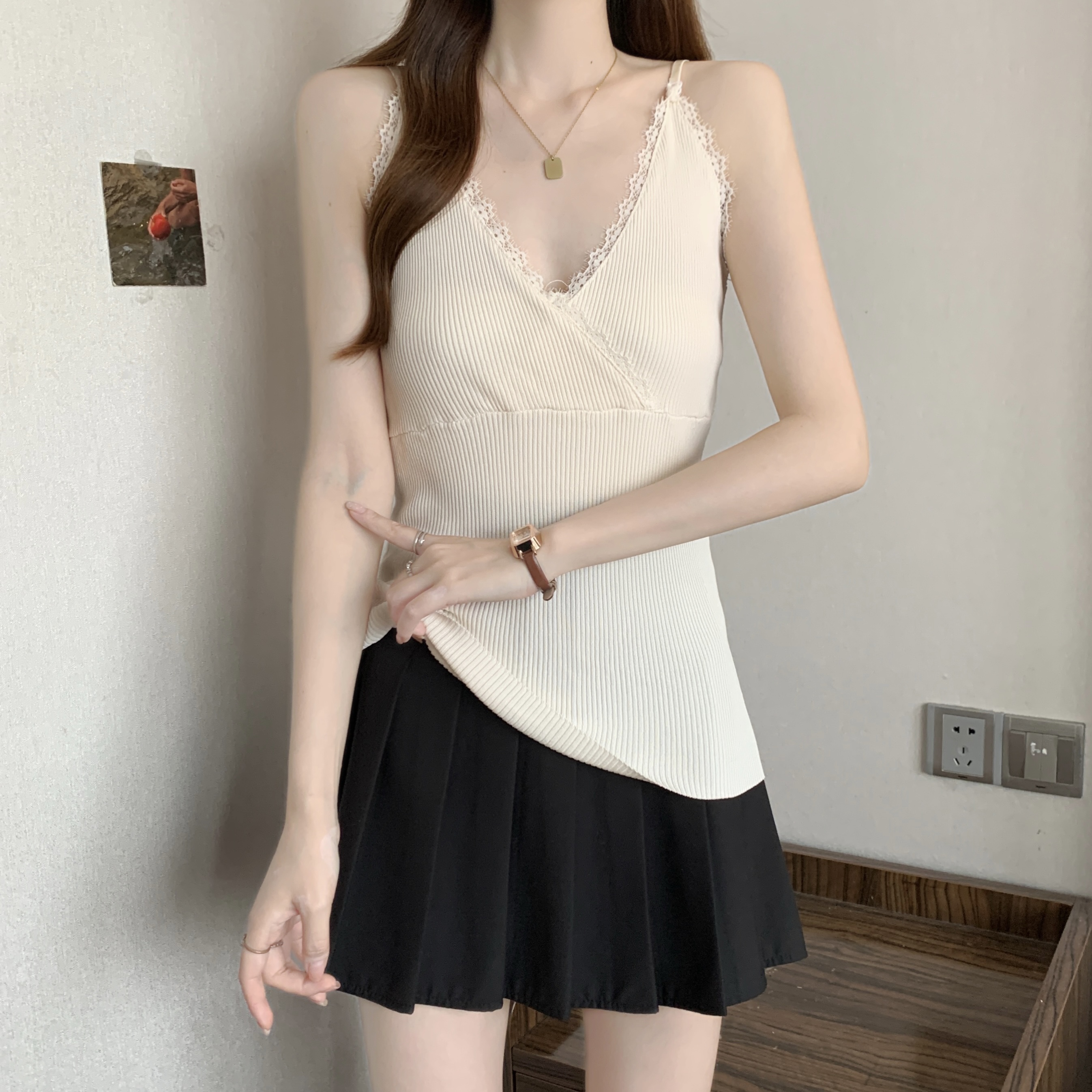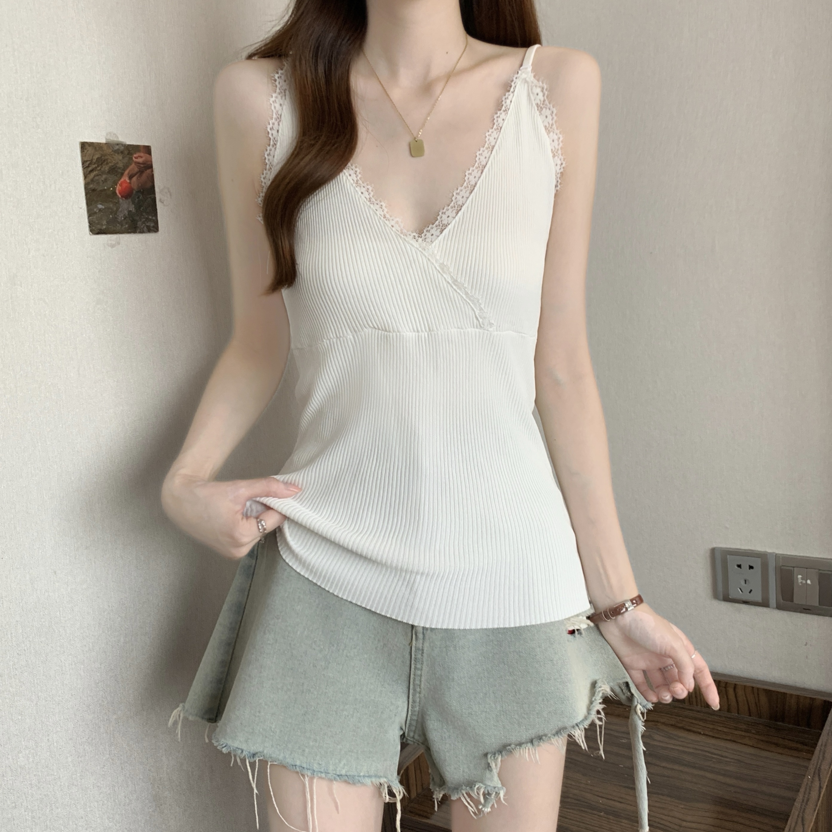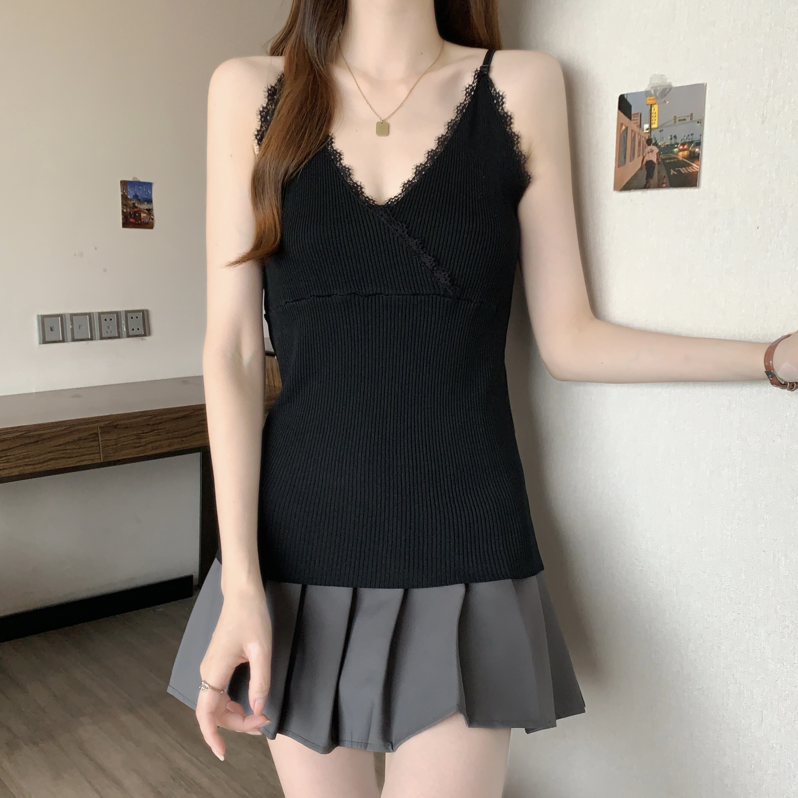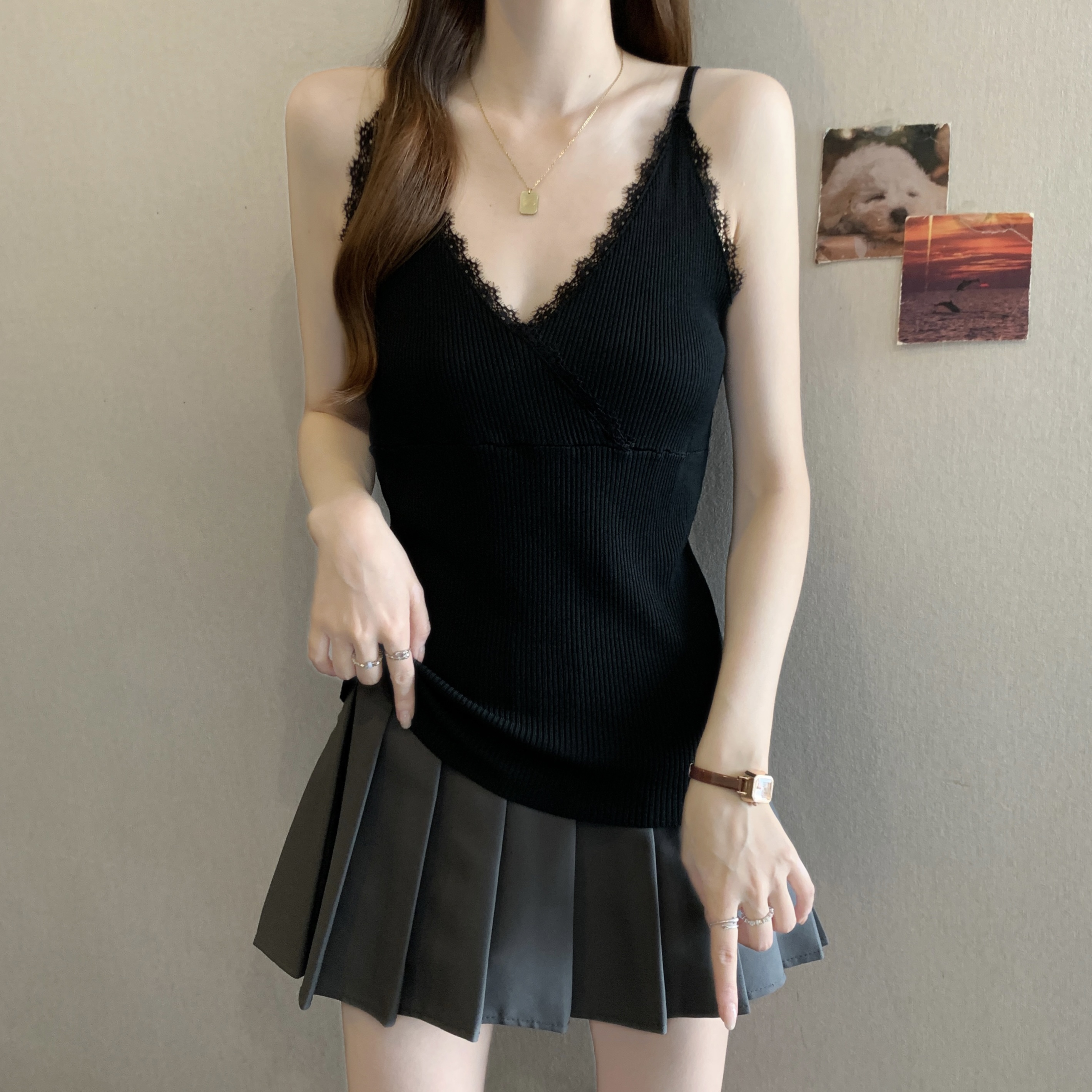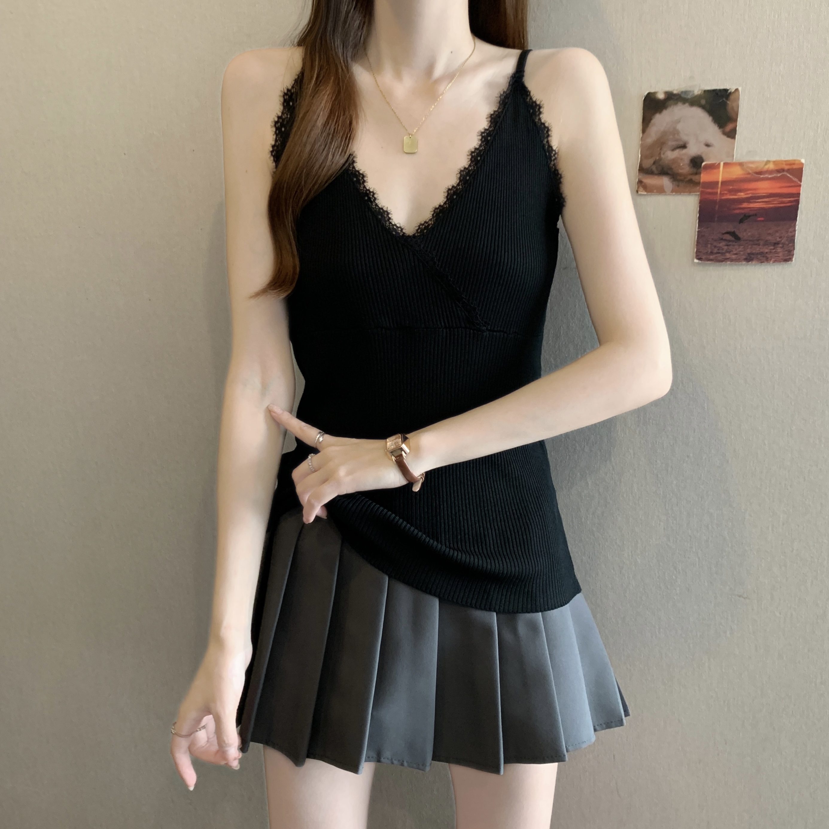실사 빅 사이즈 지방 mm 새로운 디자인 센스 달콤한 스타일 미니멀리즘 노출 방지 조끼 슬립 슬림해 보이는 표지 고기 맨위