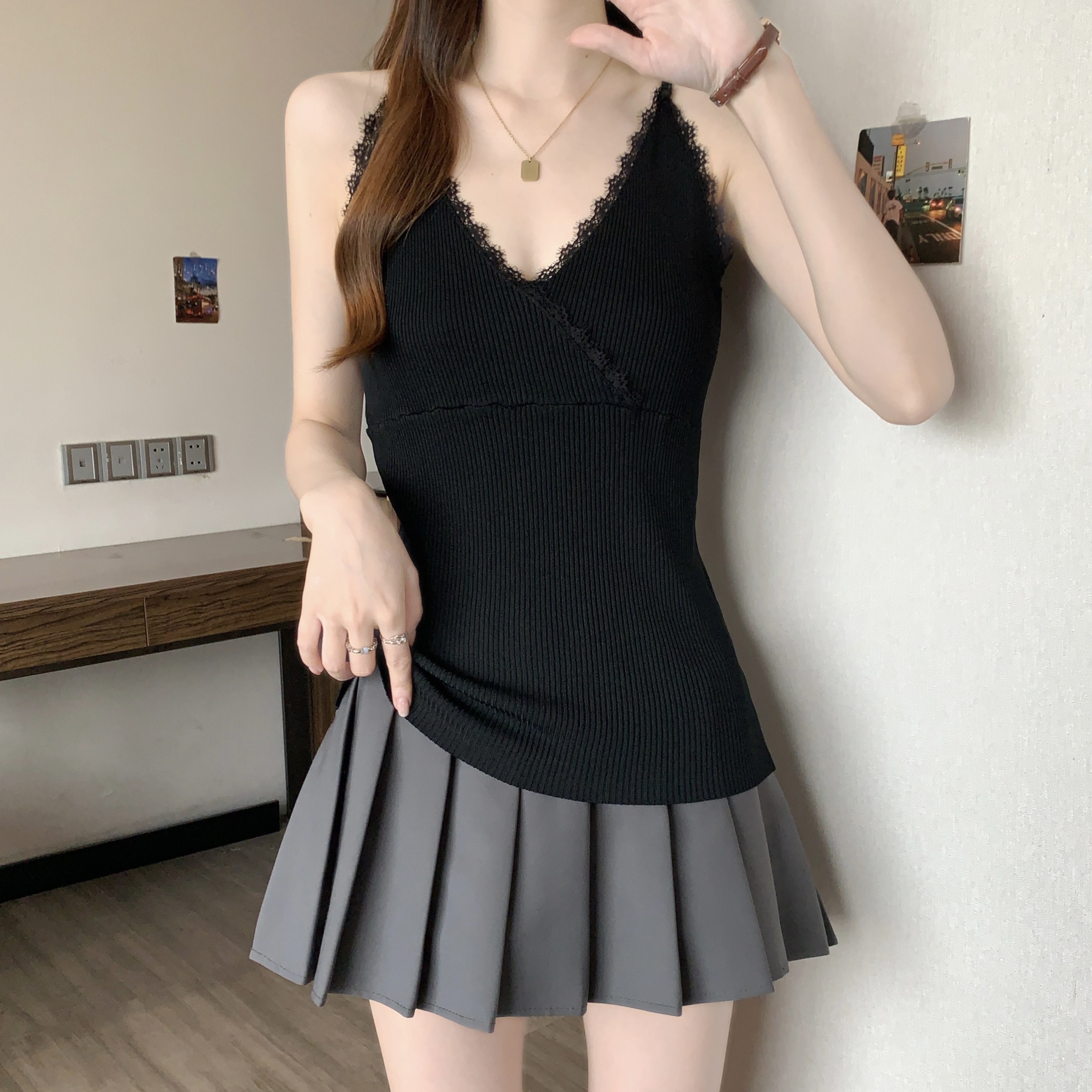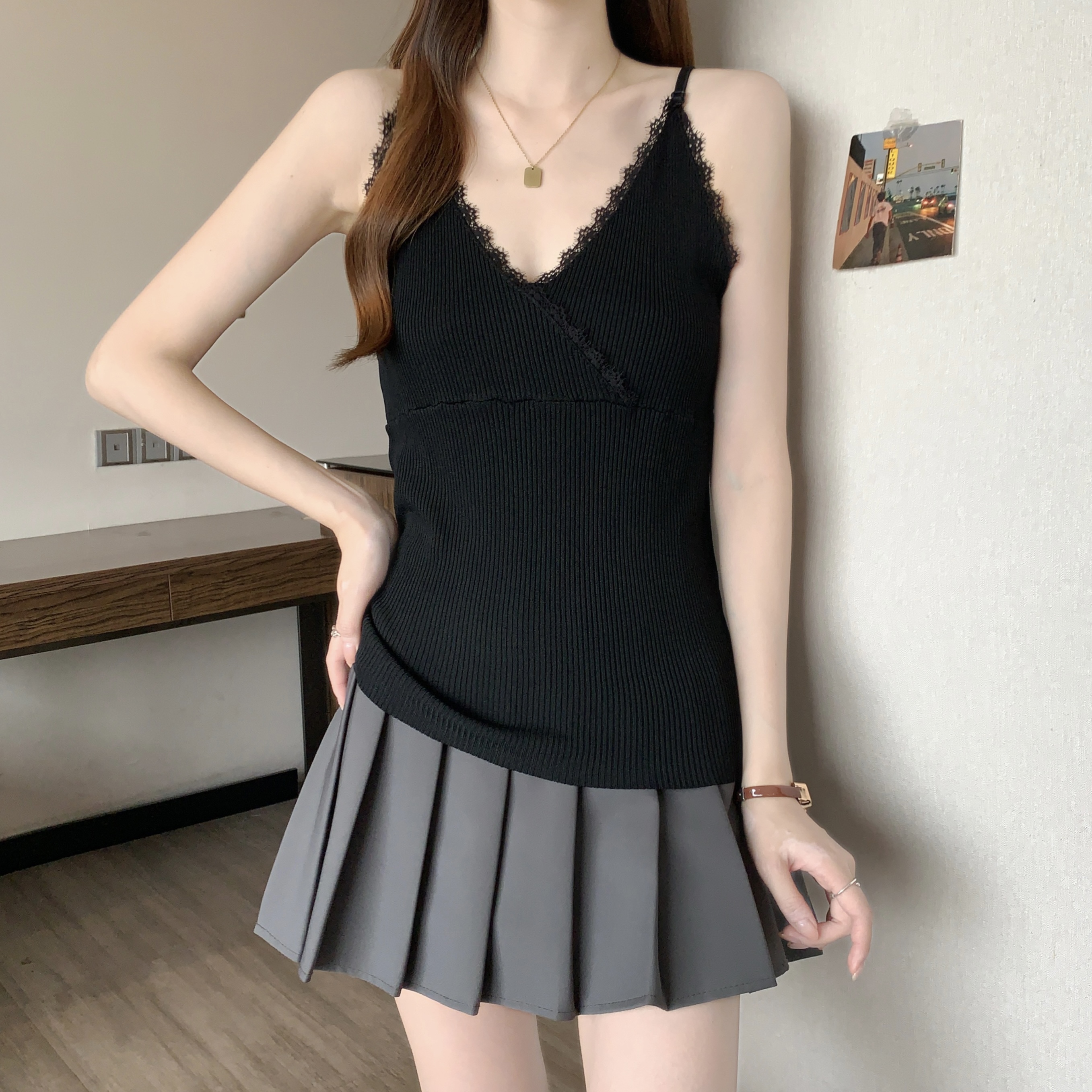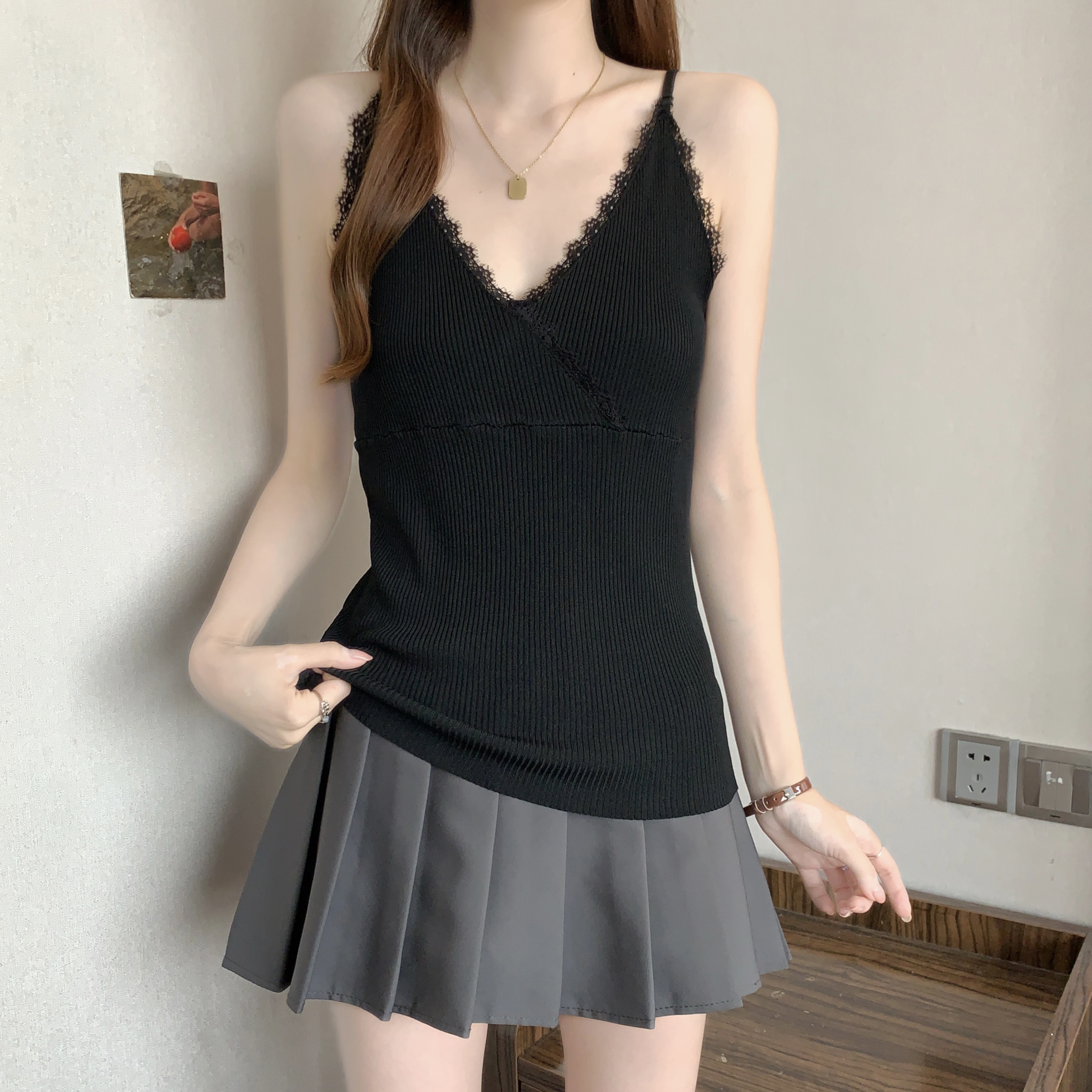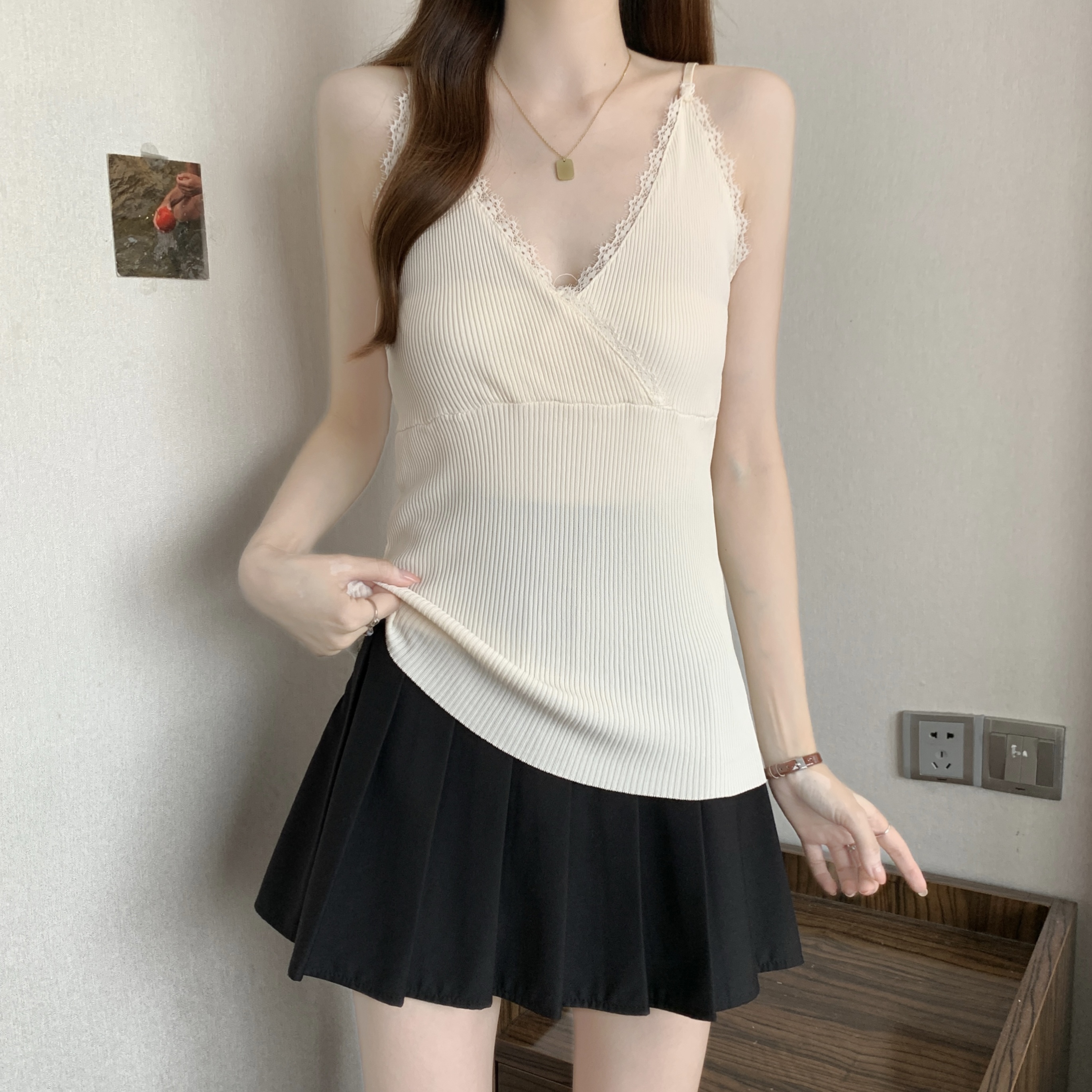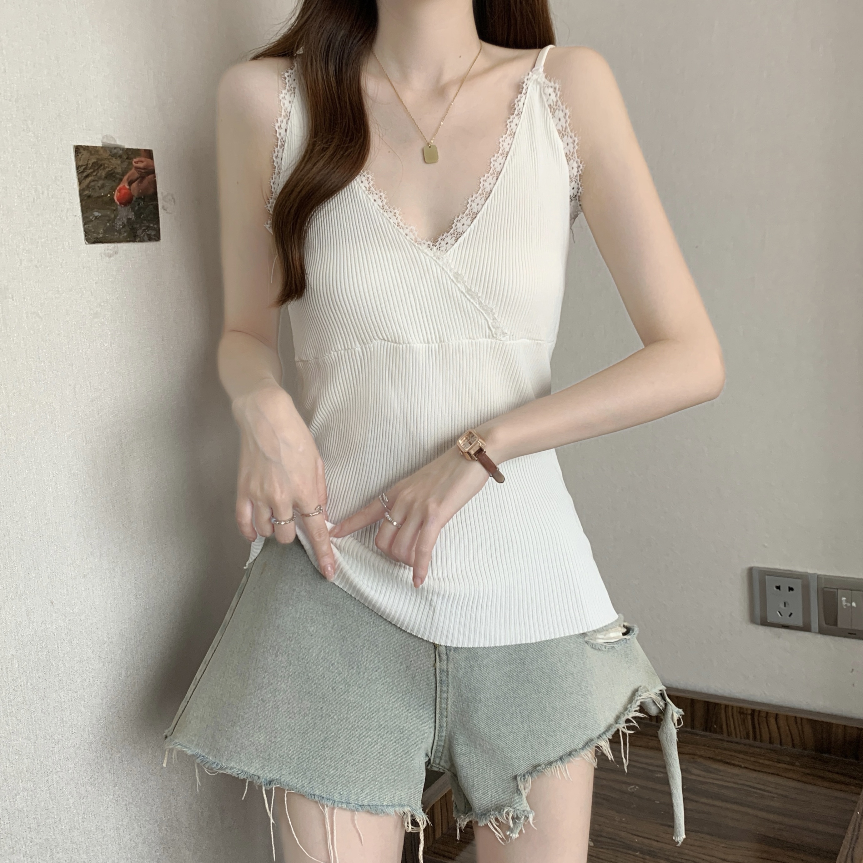 실사 빅 사이즈 지방 mm 새로운 디자인 센스 달콤한 스타일 미니멀리즘 노출 방지 조끼 슬립 슬림해 보이는 표지 고기 맨위