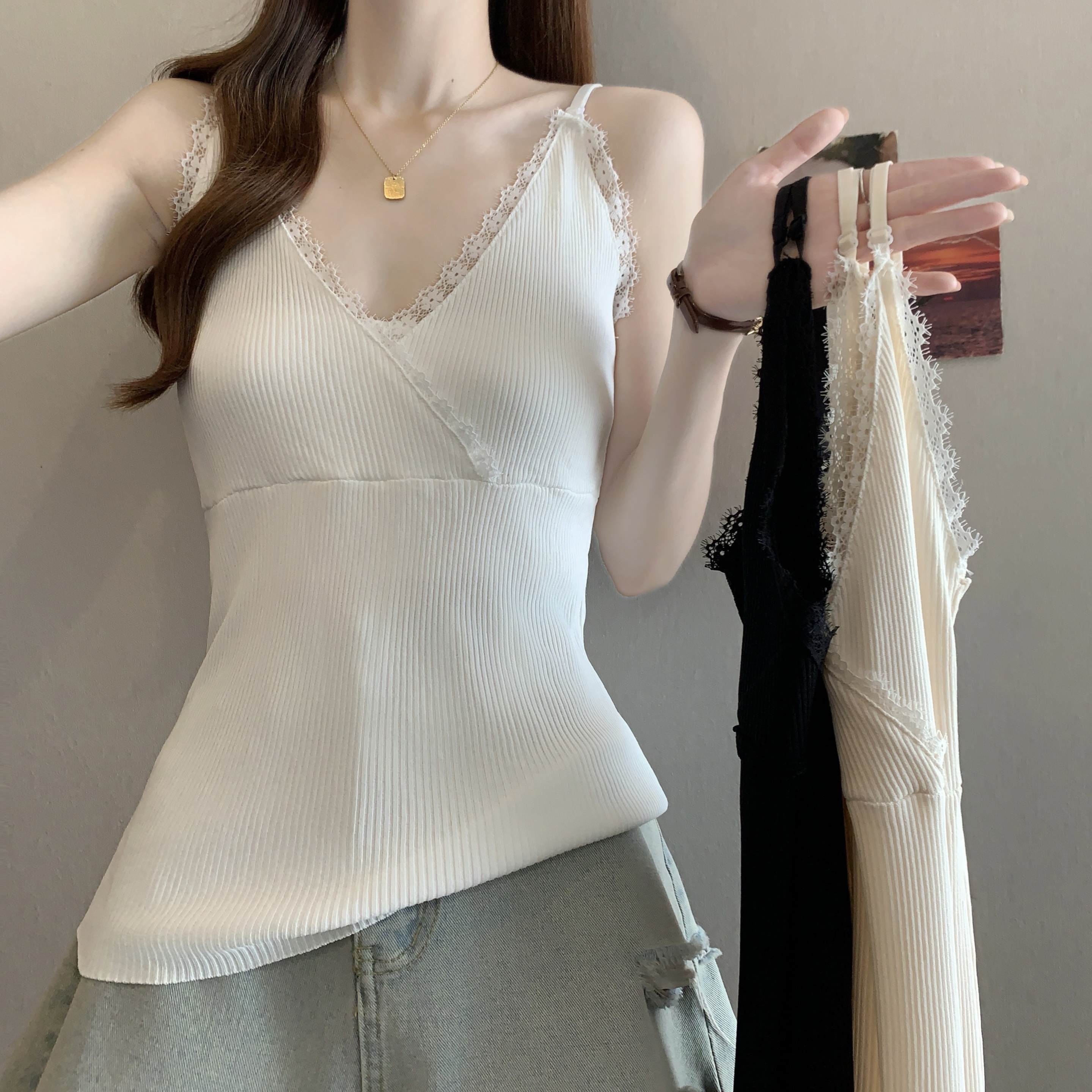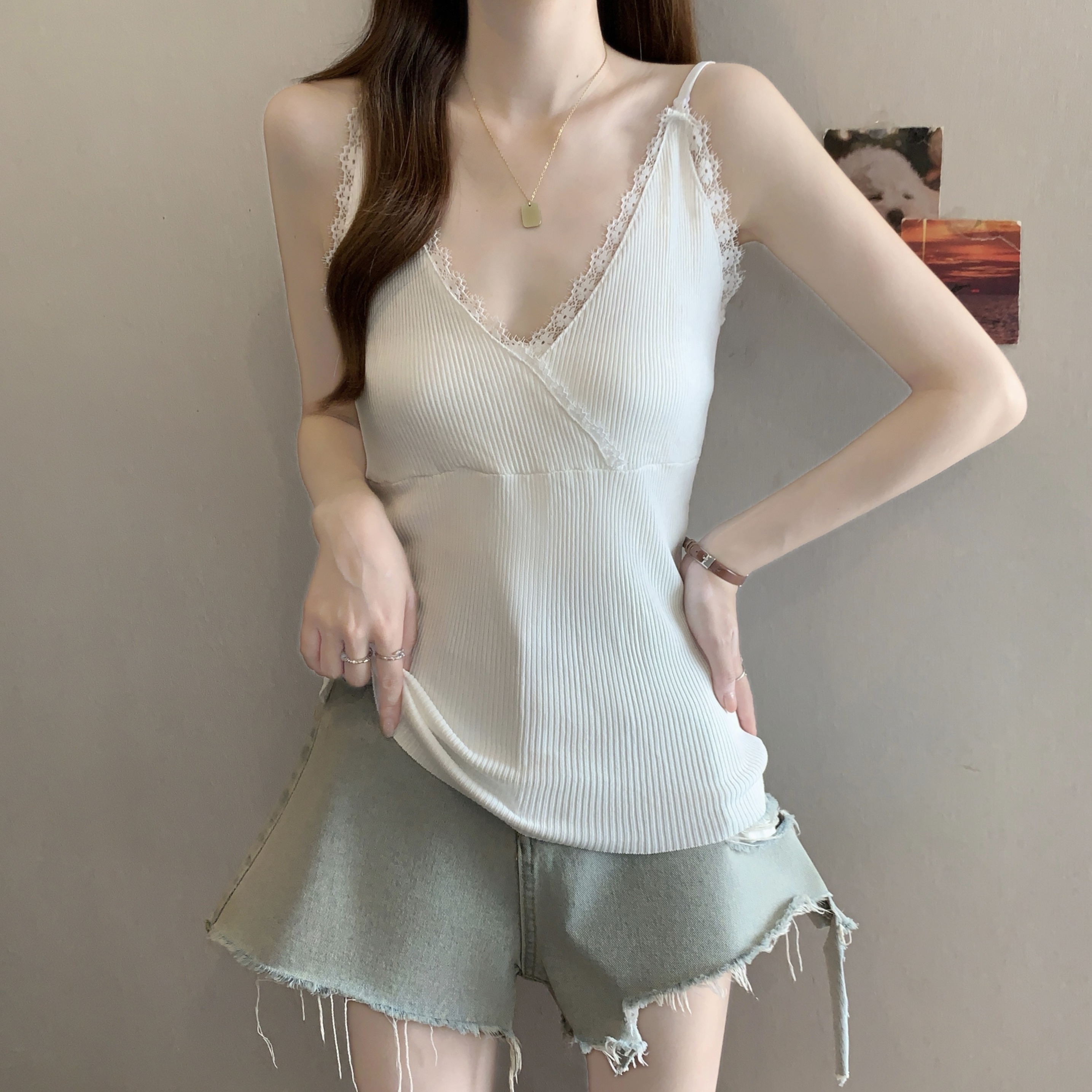 실사 빅 사이즈 새로운 디자인 센스 지방 mm 달콤한 스타일 핫픽스 인사이드 가져 가라. 조끼 슬립 슬림해 보이는 표지 고기 맨위 여성