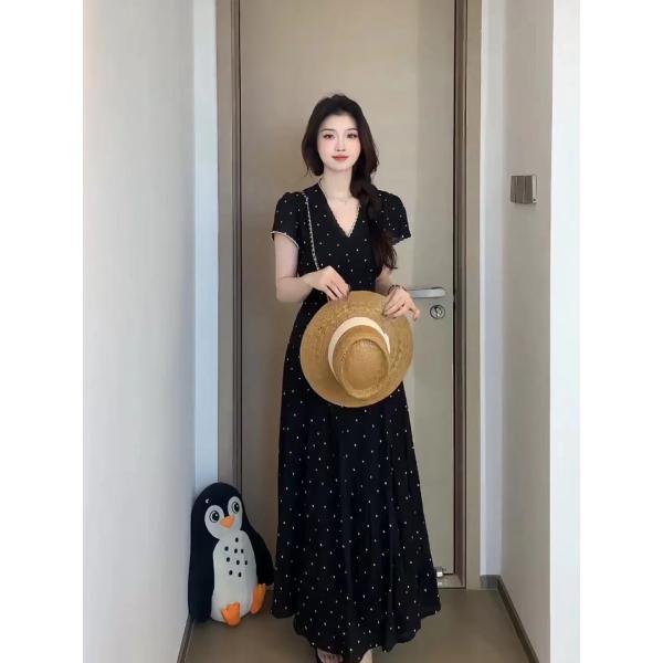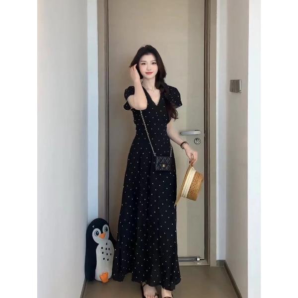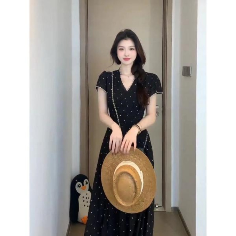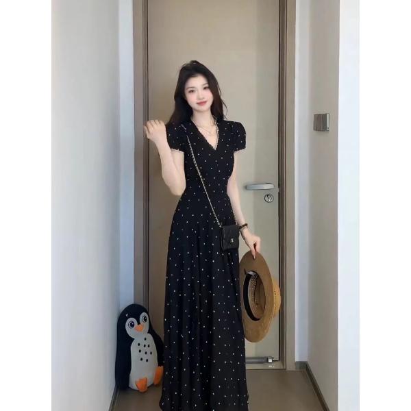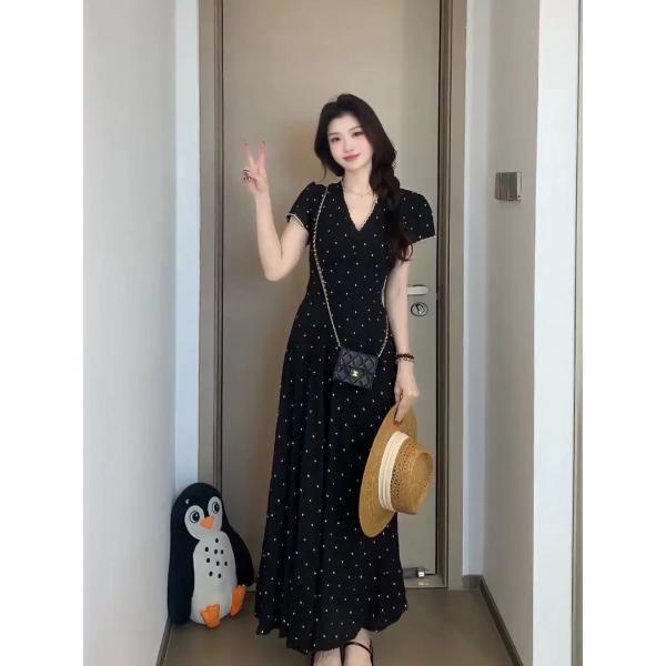 빅 사이즈 여름 프랑스식 잉크 포인트 스타 망 드레스 꽃무늬 일반 슬림해 보이는 작은 대중 검정색 롱 스커트