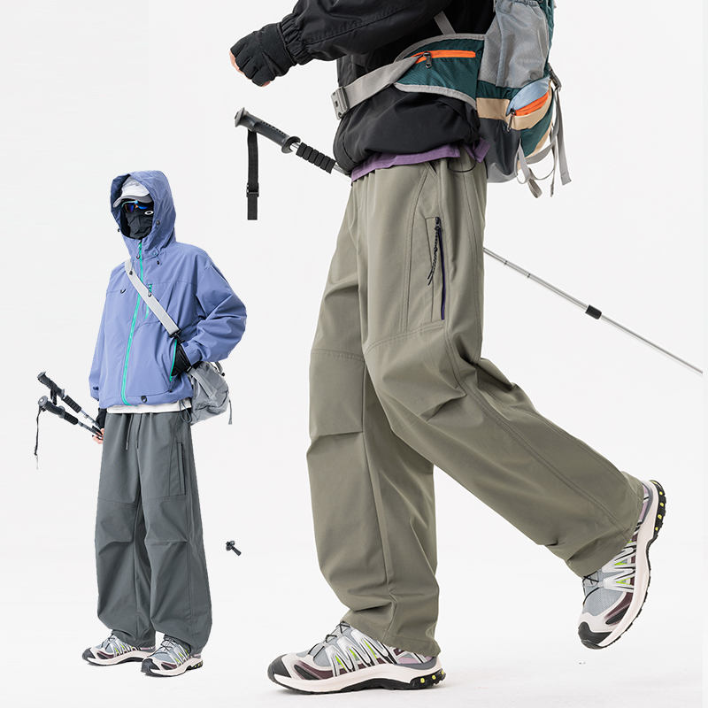 새로운 느슨함 바람 회색 루즈핏 스트레이트 웨이 바지 도루 센스 넓은 다리 캐주얼 긴 바지 다용도 도루 센스 운동 바지 웨이 바지