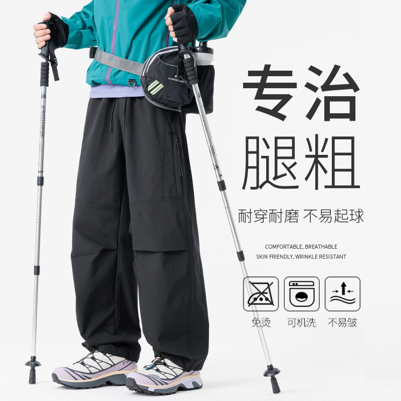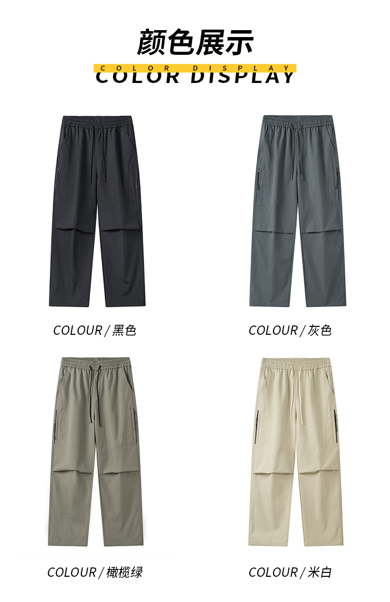 새로운 미니멀리즘 운동 바람 스트레이트 캐주얼 바지 남성 루즈핏 펌프 로프 긴 바지 저항 주름 도루 센스 다용도 긴 바지