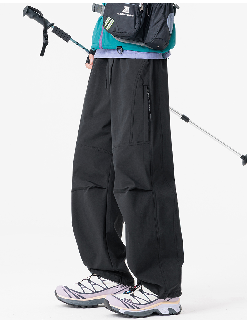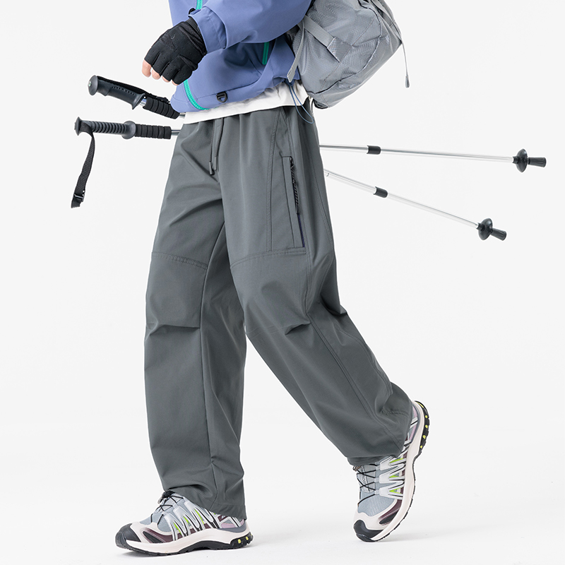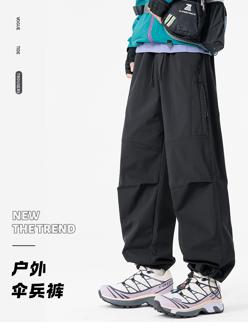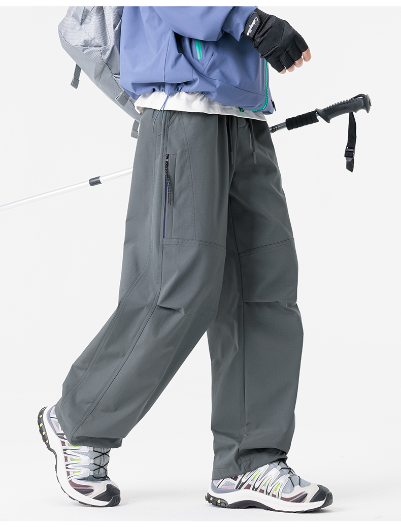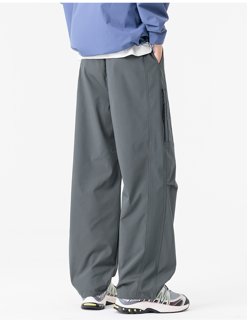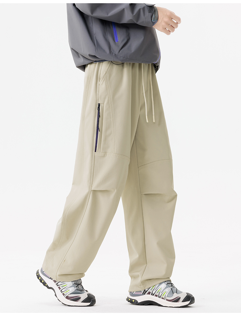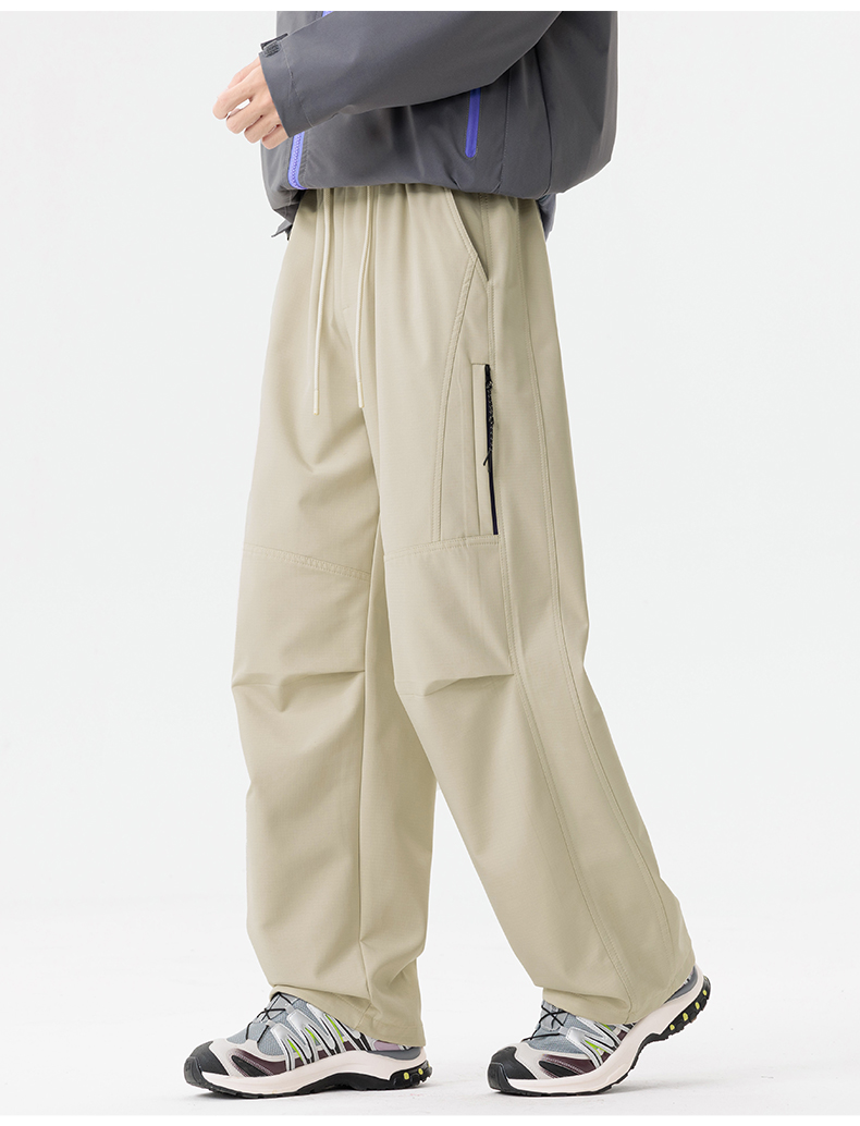 새로운 미니멀리즘 운동 바람 스트레이트 캐주얼 바지 남성 루즈핏 펌프 로프 긴 바지 저항 주름 도루 센스 다용도 남자 웨이 바지