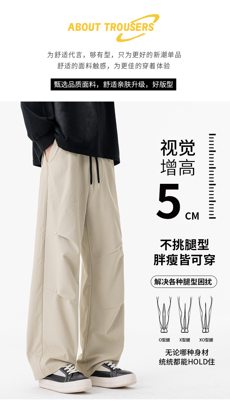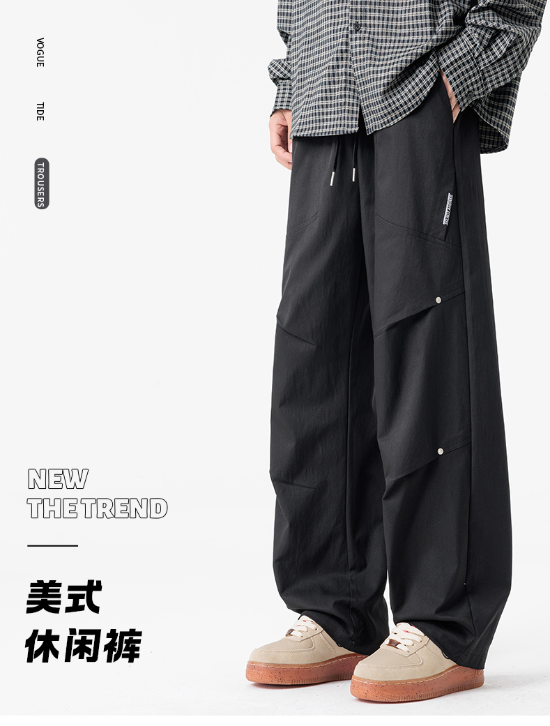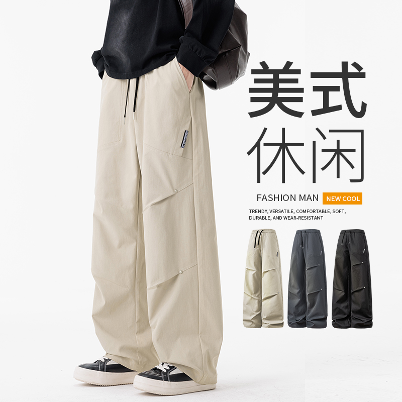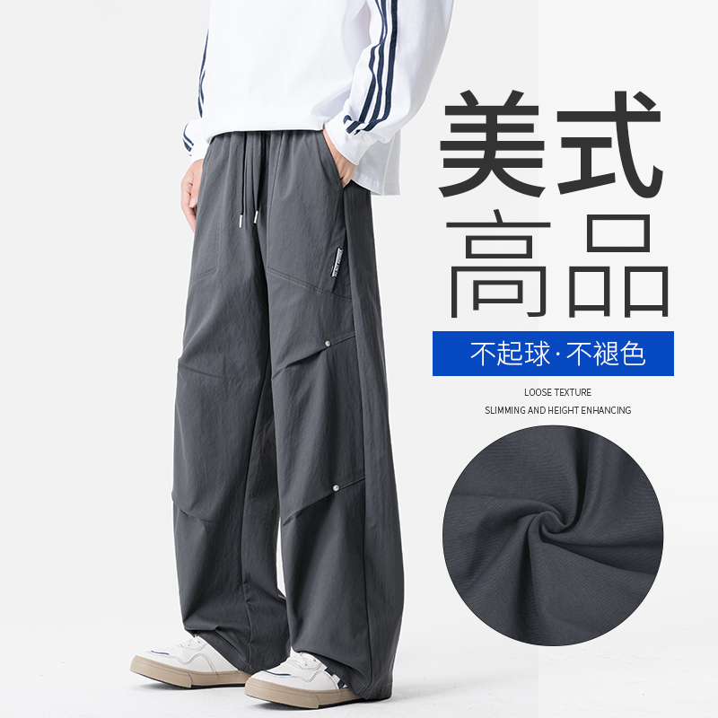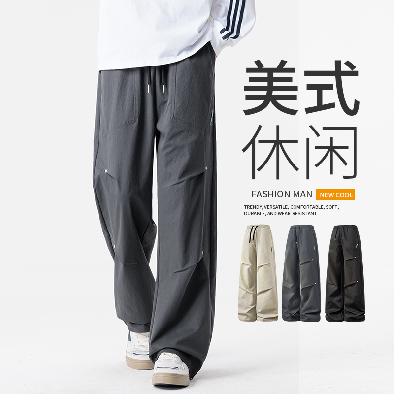 새로운 얇은 스타일 도루 센스 캐주얼 바지 남성 루즈핏 스트레이트 팬츠 남성 넓은 다리 운동 워크웨어 긴 바지