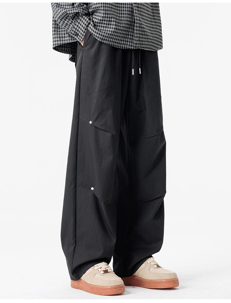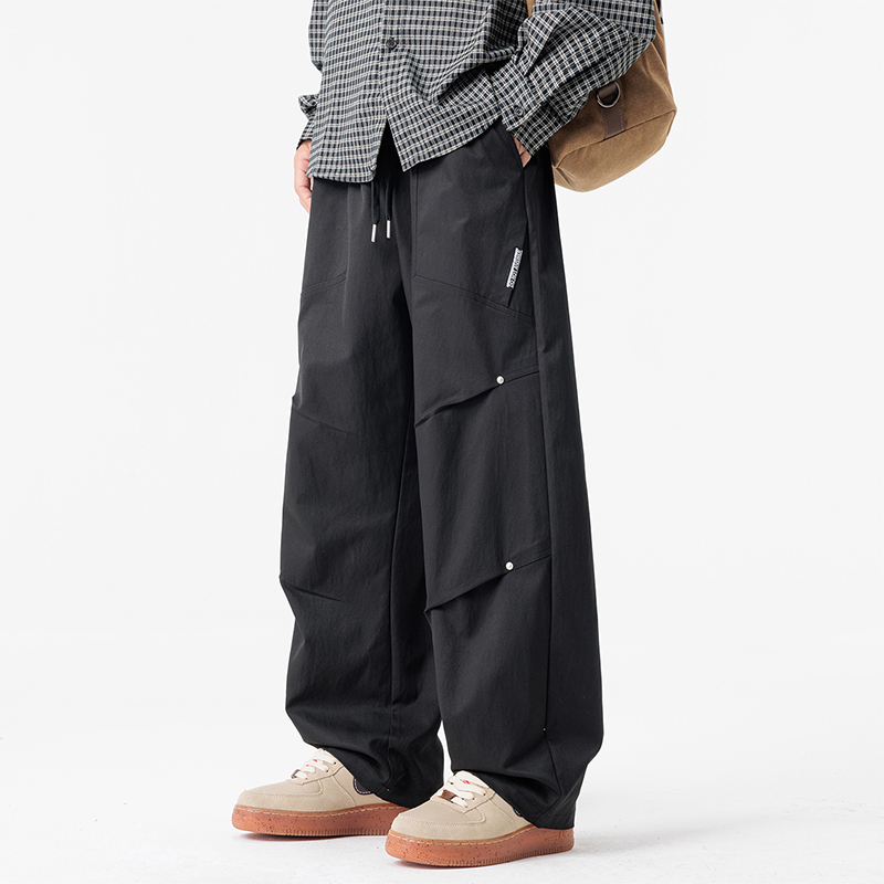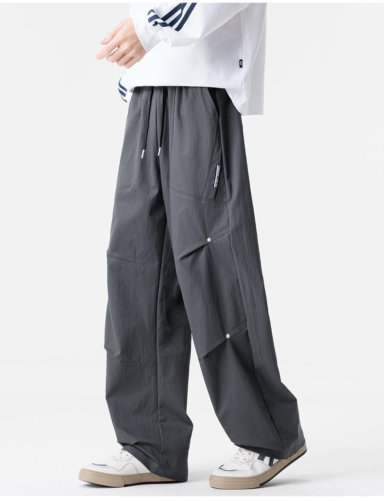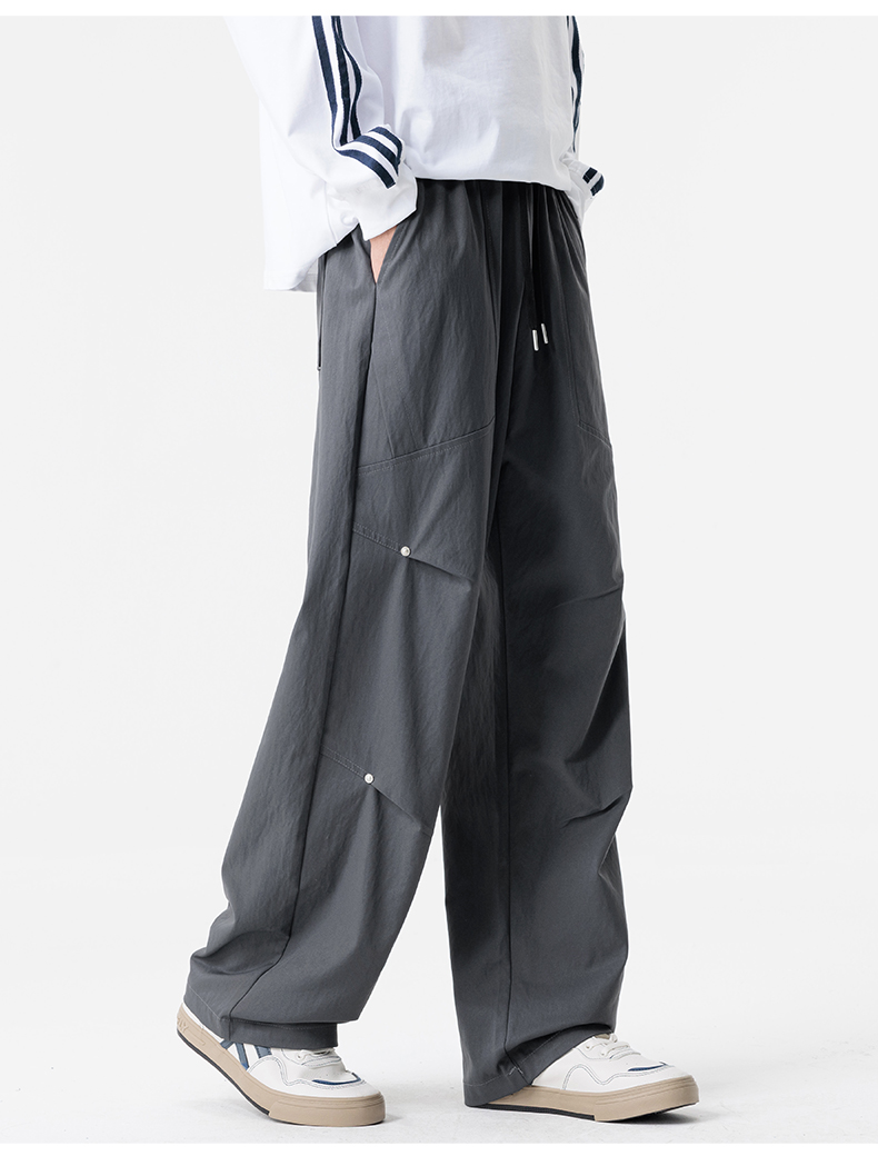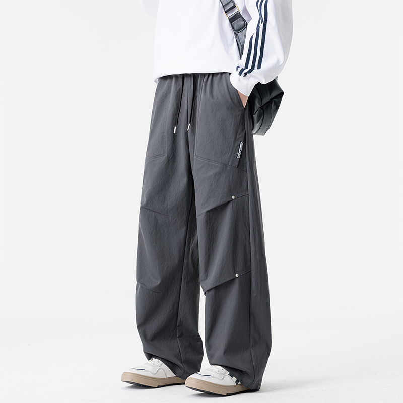새로운 미니멀리즘 운동 바람 스트레이트 캐주얼 바지 남성 루즈핏 펌프 로프 긴 바지 저항 주름 도루 센스 다용도 남자 웨이 바지