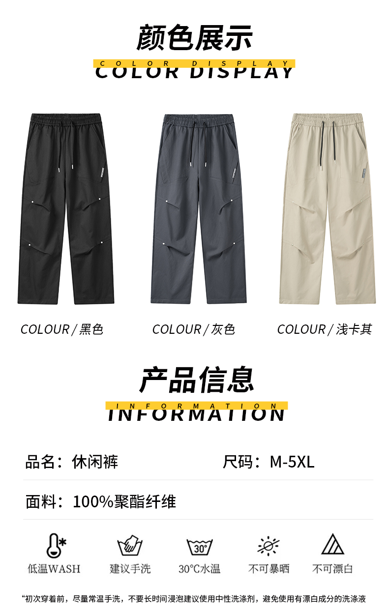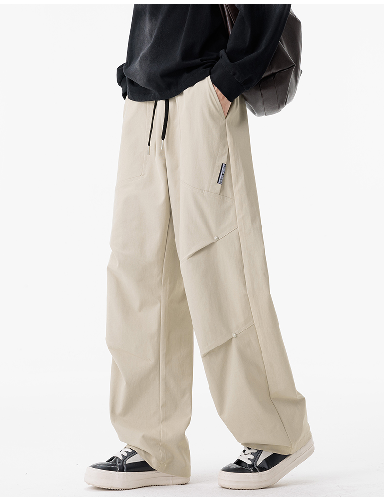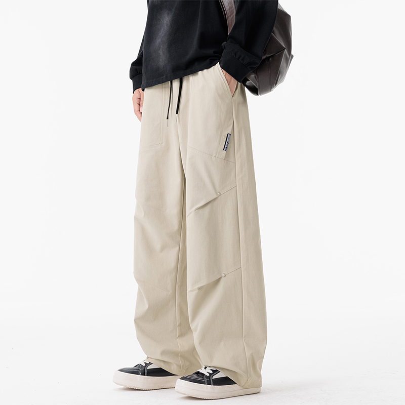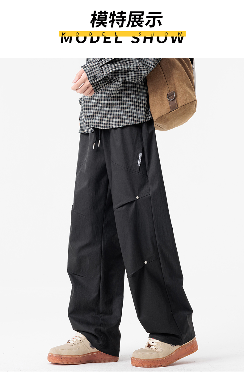 새로운 미니멀리즘 운동 바람 스트레이트 캐주얼 바지 남성 루즈핏 펌프 로프 긴 바지 저항 주름 도루 센스 다용도 남자 웨이 바지