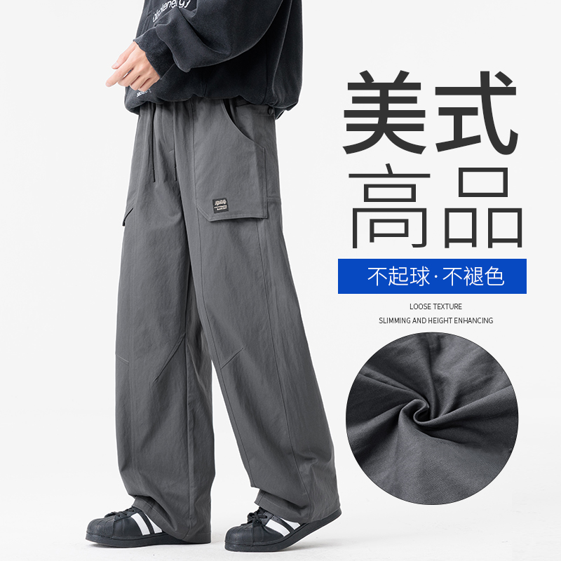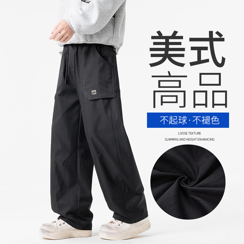 새로운 얇은 스타일 도루 센스 캐주얼 바지 남성 루즈핏 스트레이트 팬츠 남성 넓은 다리 운동 워크웨어 긴 바지